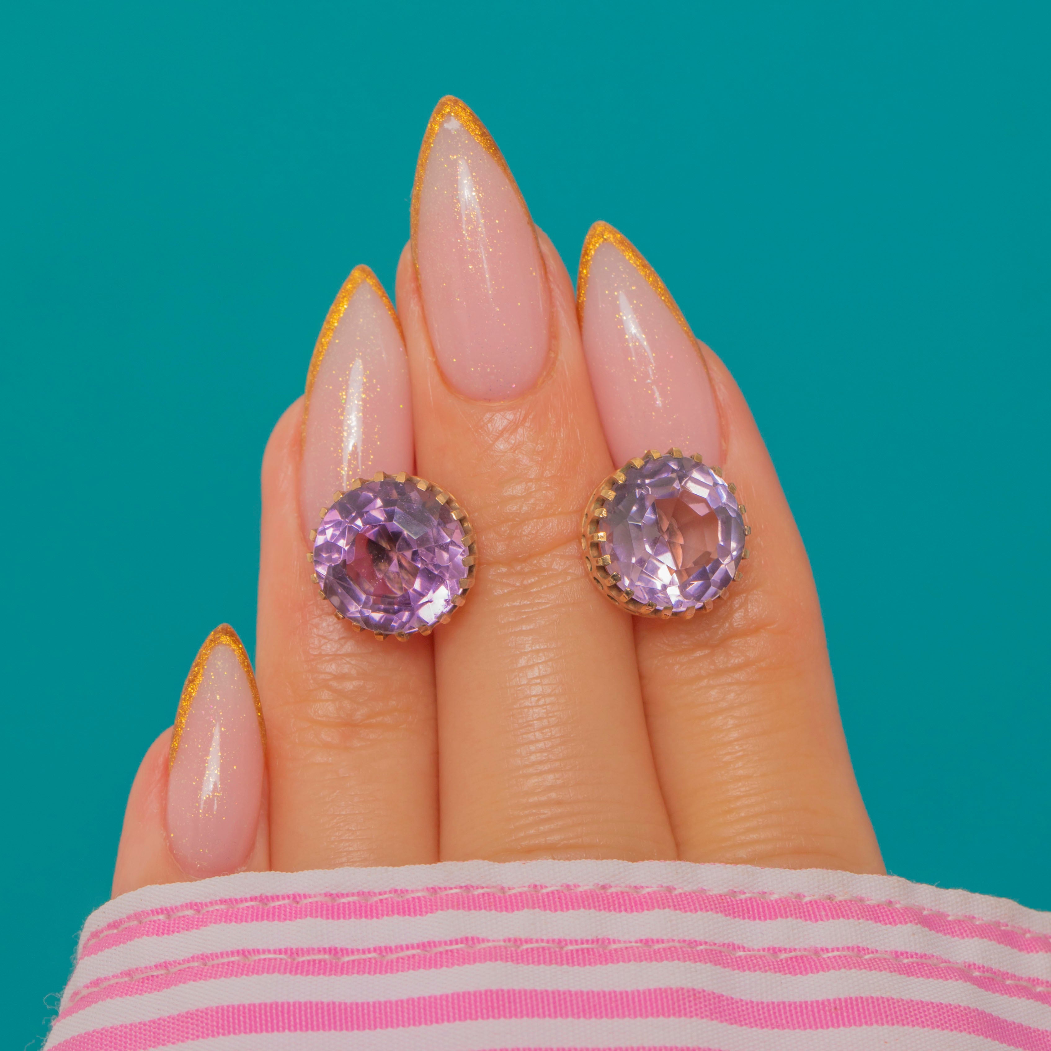 These stunning Victorian Amethyst studs combine antique beauty with everyday wearability. Each earring features a vibrant natural Amethyst with the prettiest violet hue, full of lively internal flashes and old-world sparkle. Together, they total approximately 5.60ct, offering a gorgeous pop of colour against the warm glow of 9ct Gold.