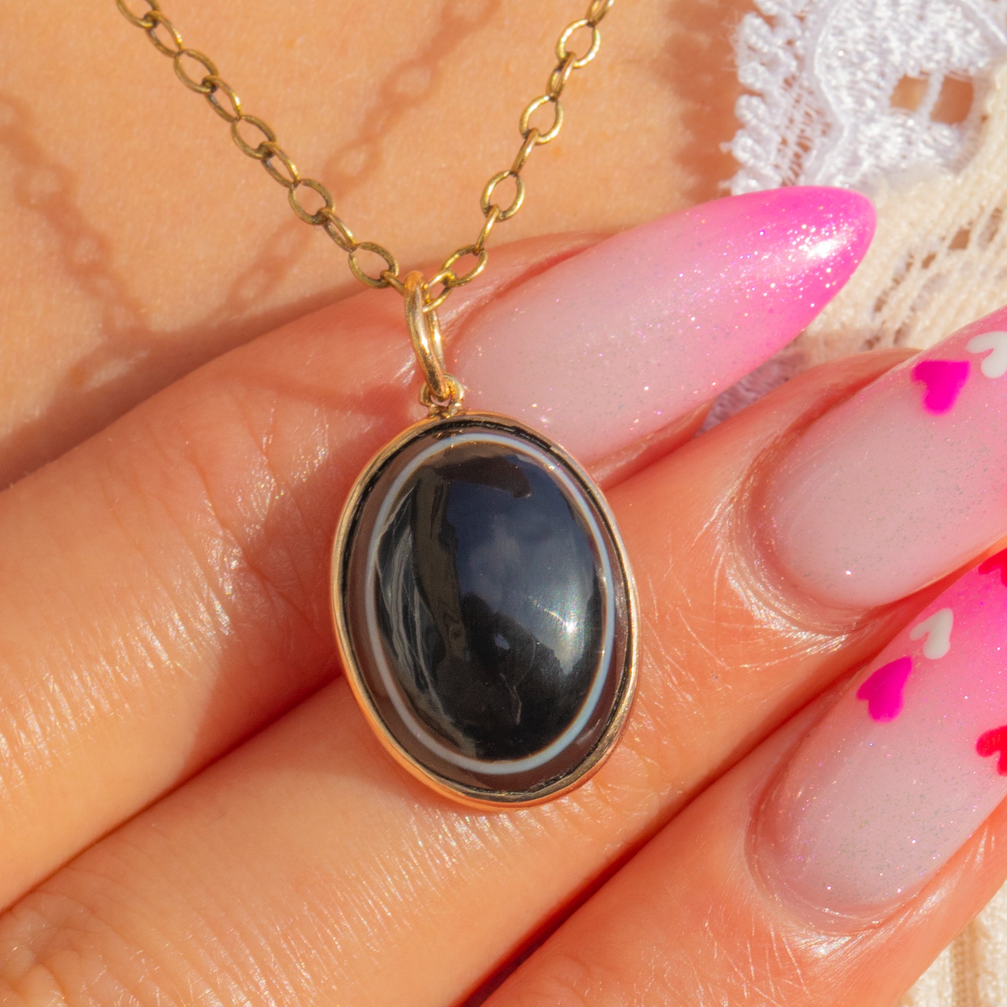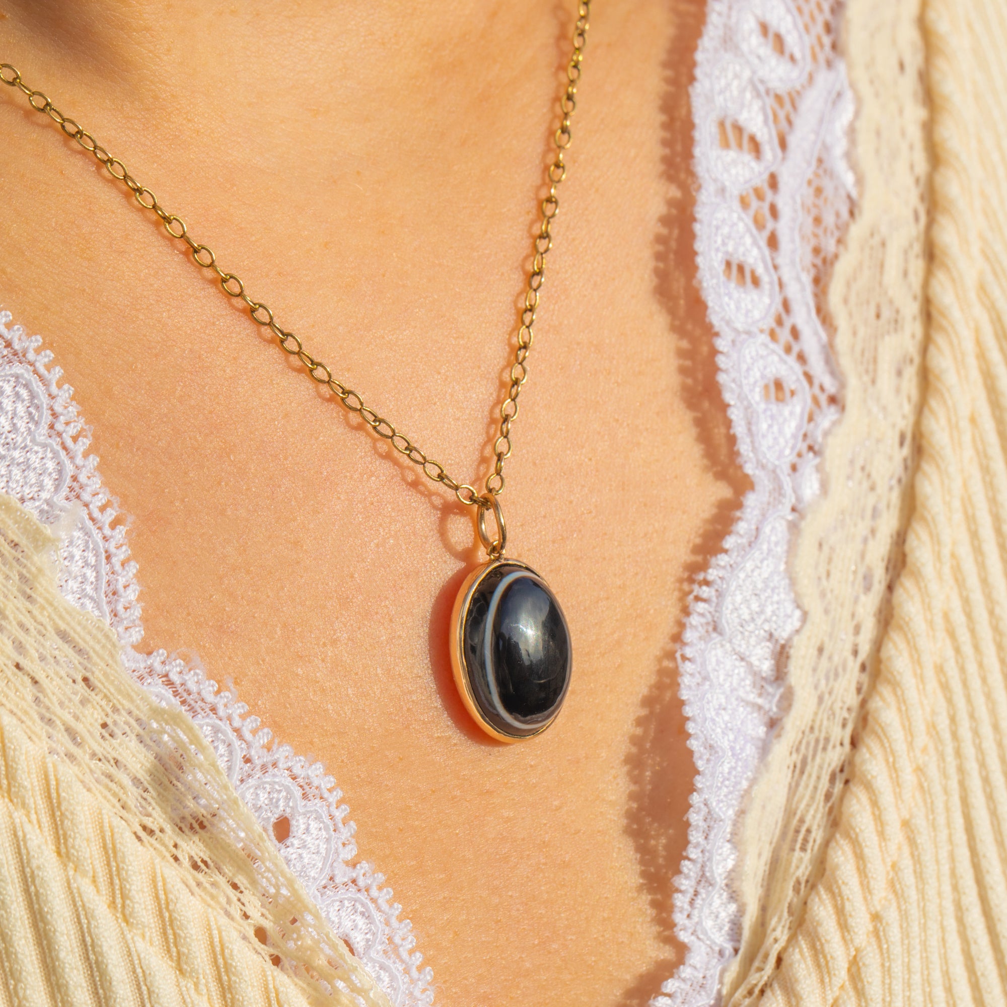 Wear it as a pendant or add to a charm bracelet for a touch of antique sophistication. The sleek lines and polished Gold let the natural beauty of the Agate take centre stage—classic, versatile, and forever chic.