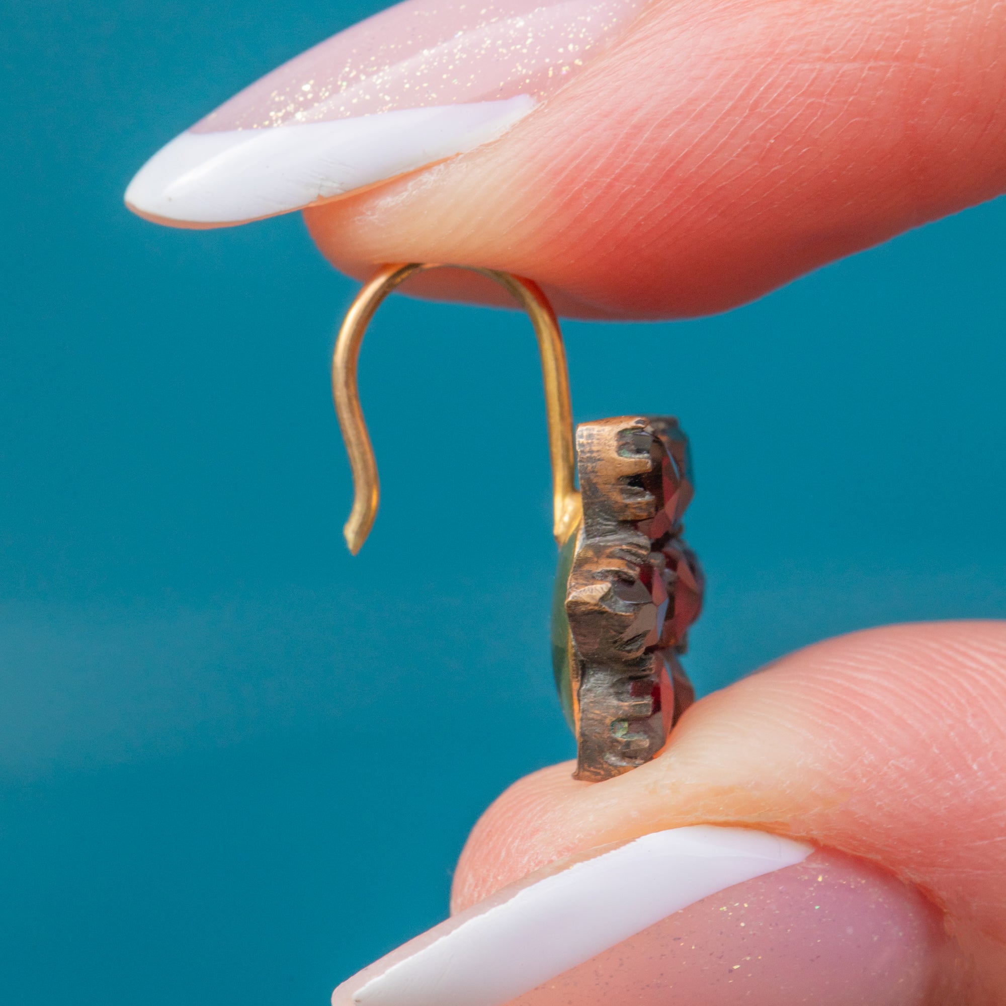 MATERIALS: Tests as 9ct Gold Hooks, Garnet Gold Settings, Bohemian Garnet (2.60ct).