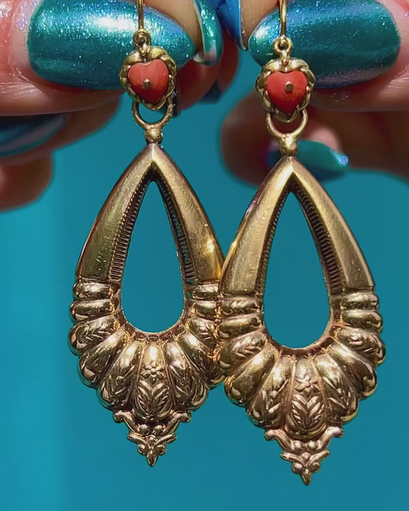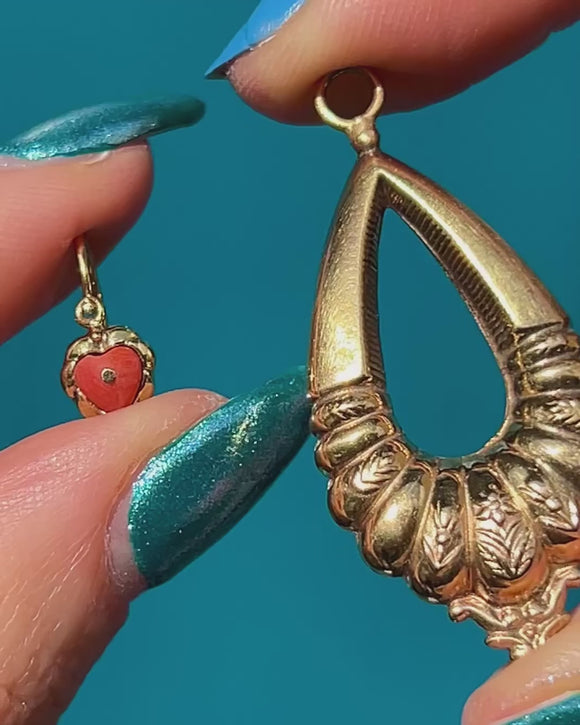 Victorian 9ct Gold Coral Heart Day & Night Earrings