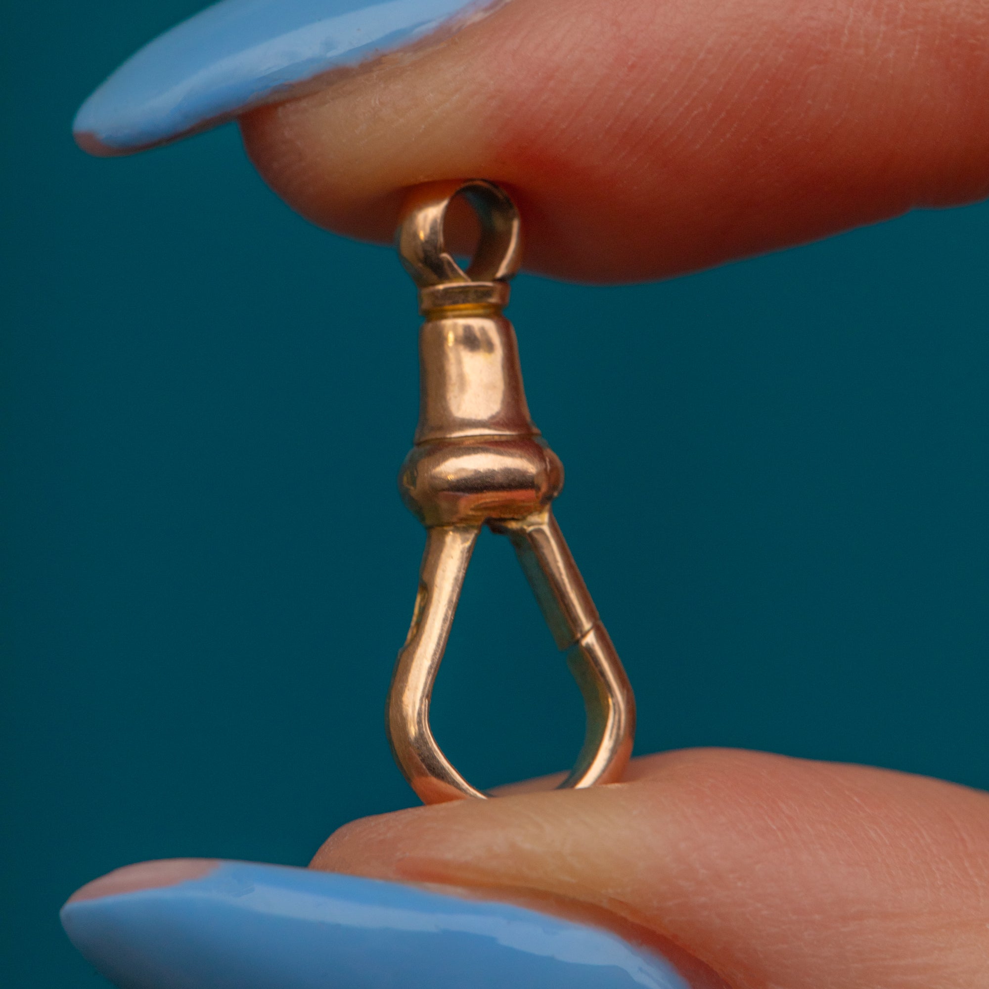 VERY GOOD. This Victorian 9ct Gold dog-clip is in very good condition. Her Gold has kept a rich buttery tone and the clip is in perfect working order, allowing you to use it with confidence and security. There are some minor signs of wear to this piece, commensurate with age, which is only noticeable when looking under scrutiny. Other than this, the dog-clip is in excellent condition.