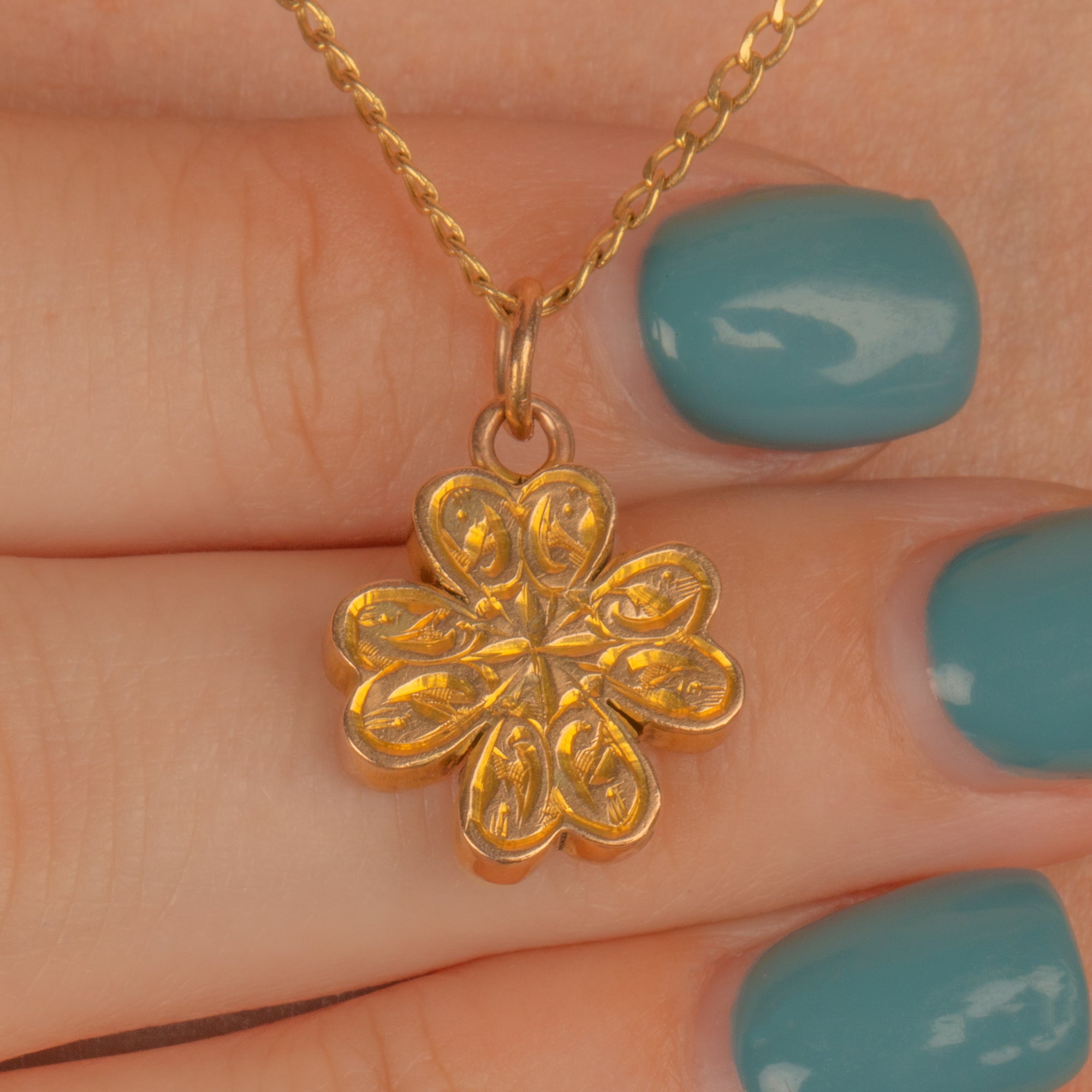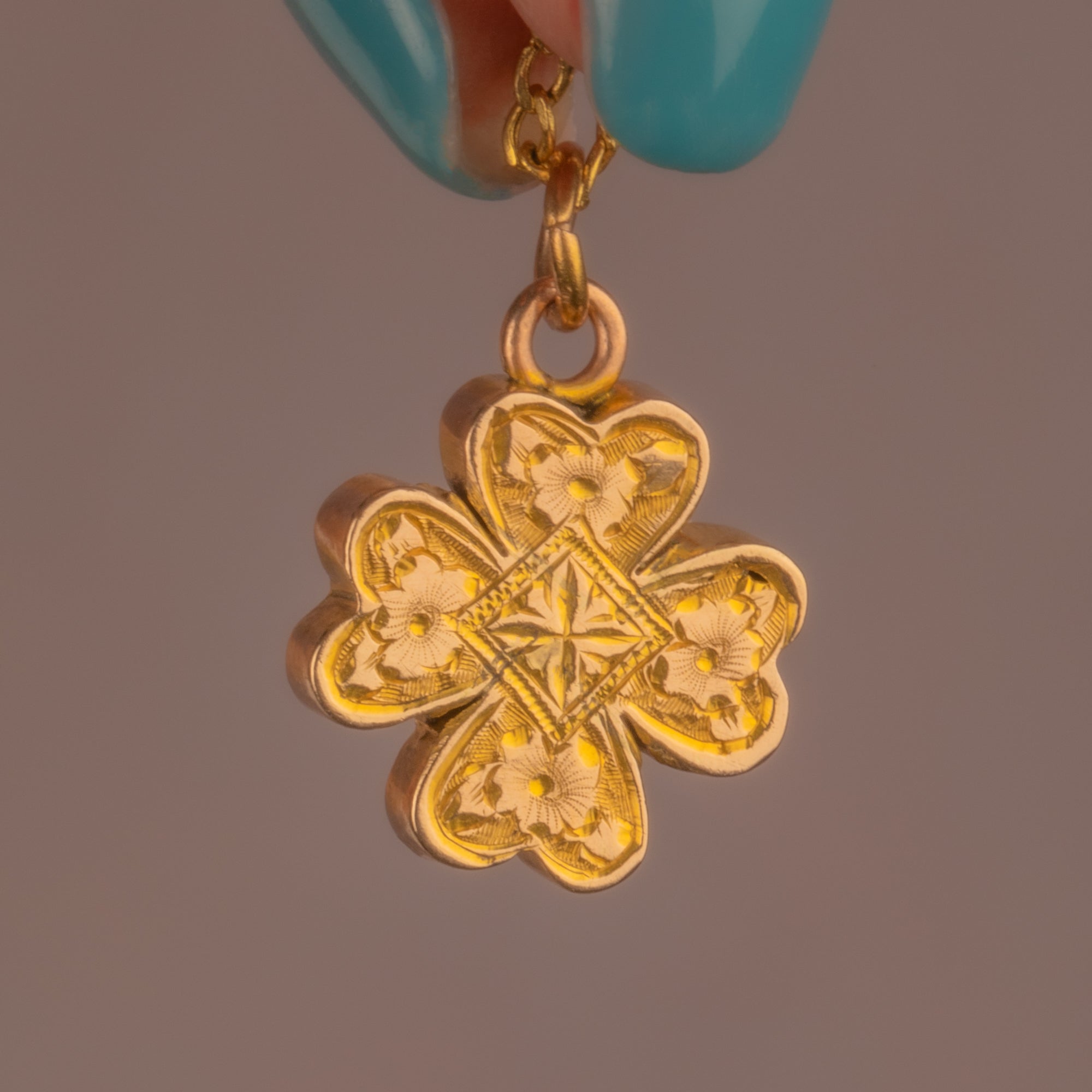Victorian 9ct Gold Engraved Four Leaf Clover Charm