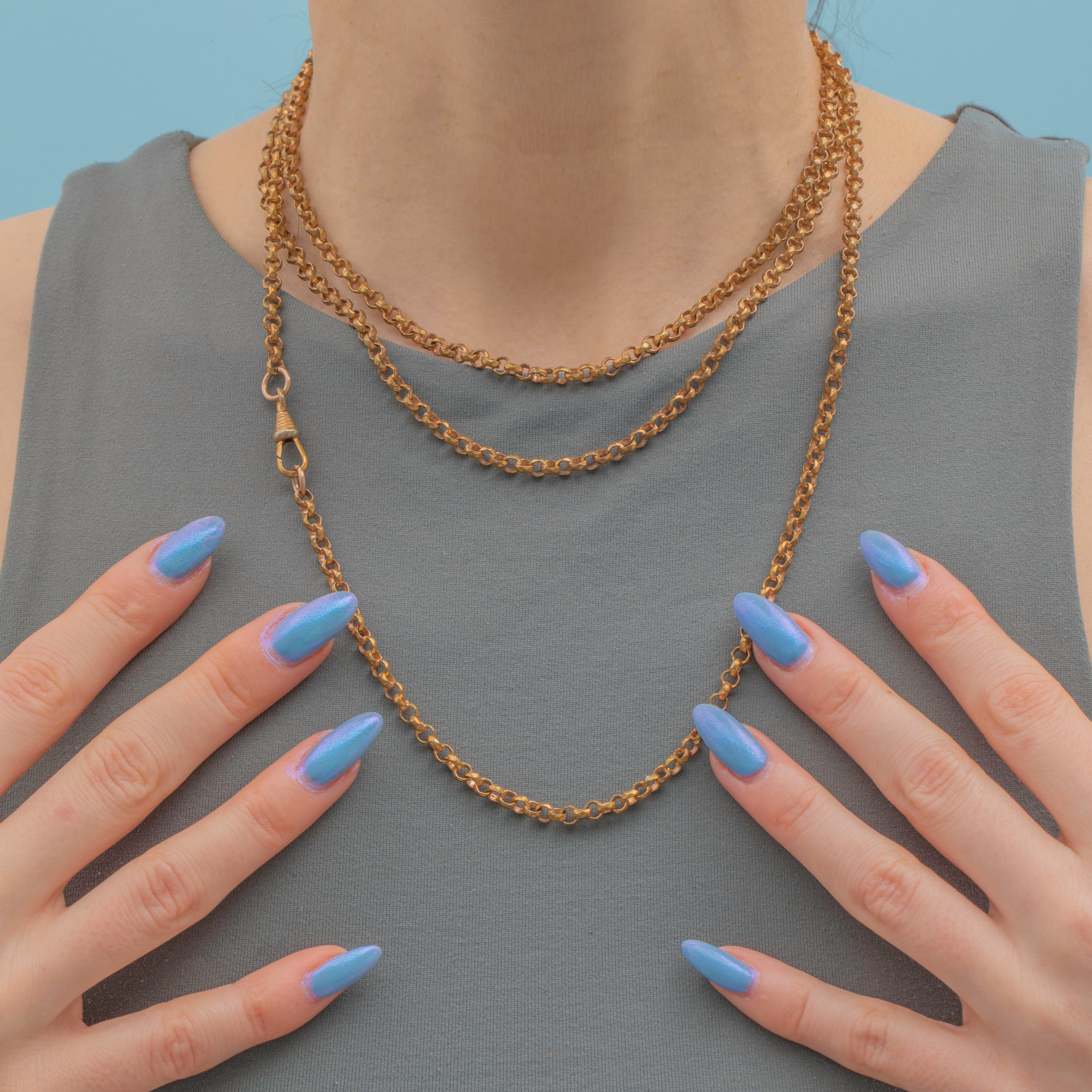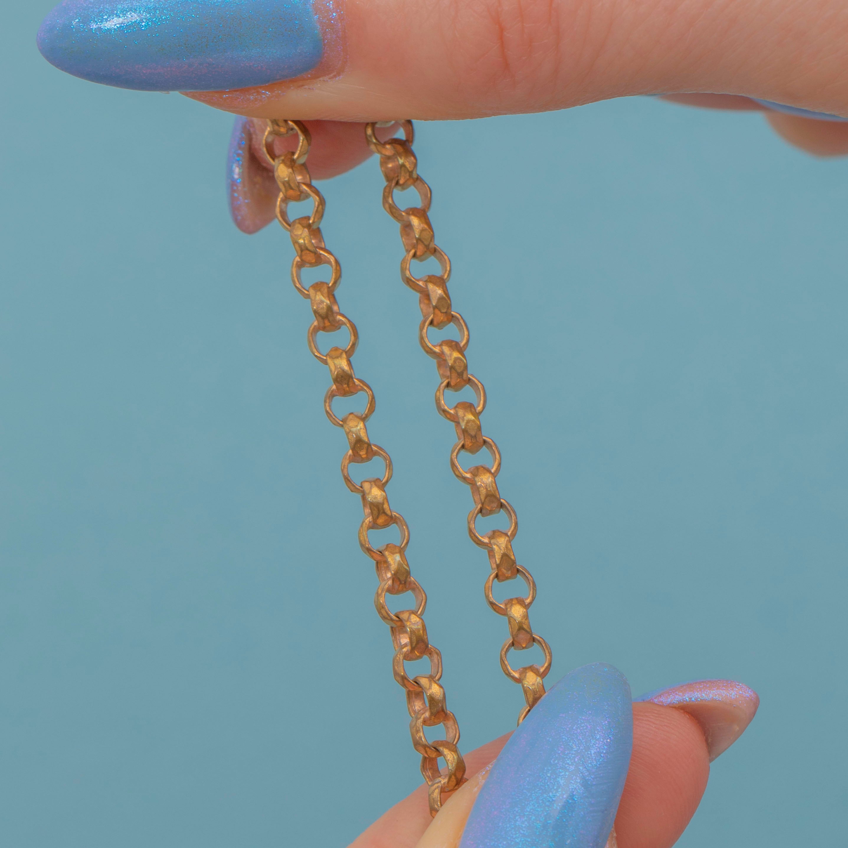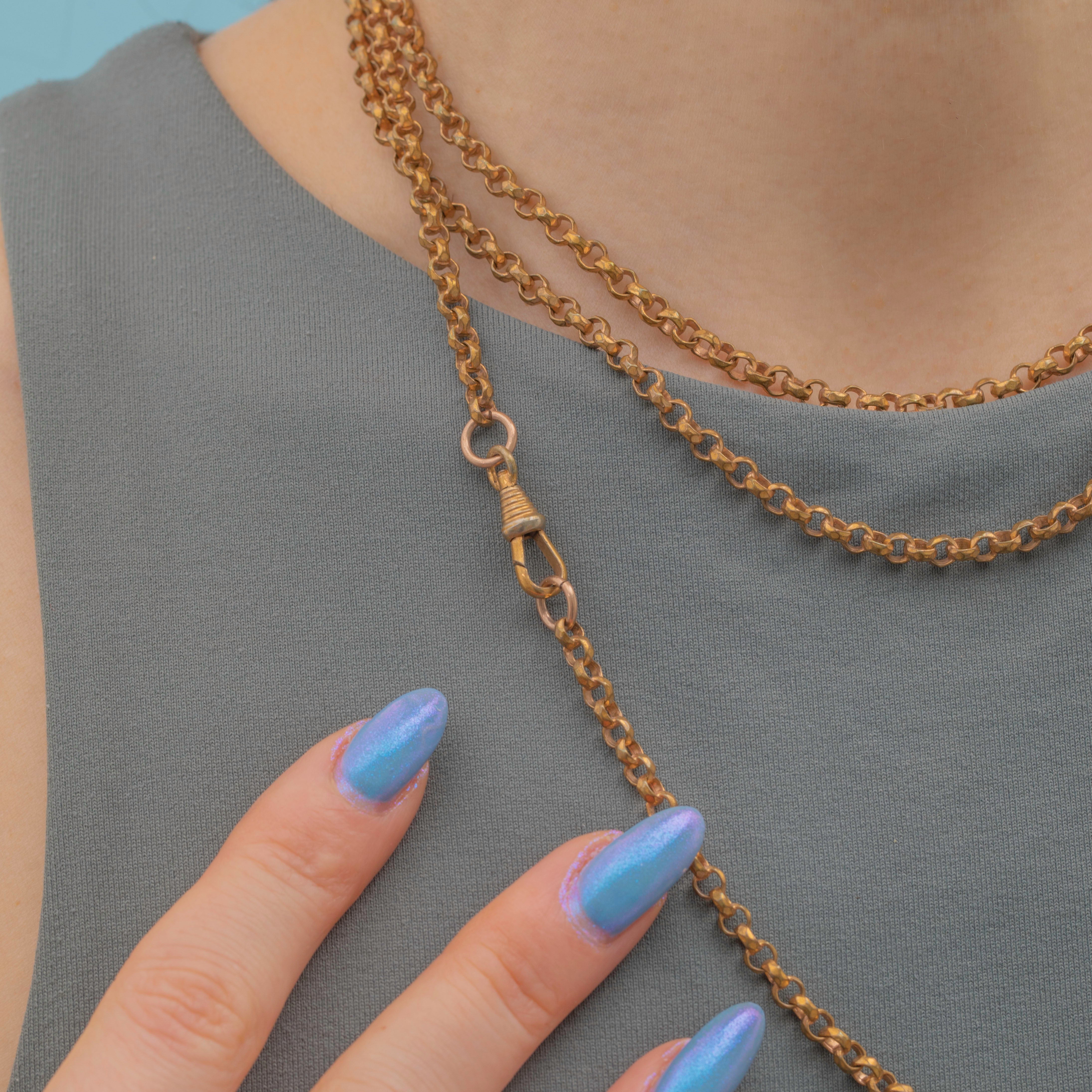 Measuring a generous 51" long, this treasure can be wrapped multiple times to create a chunky layered look. With a highly sought-after dog-clip to attach your treasured charms and pendants, she is the perfect affordable antique chain to add a flash of Gold to your collection.