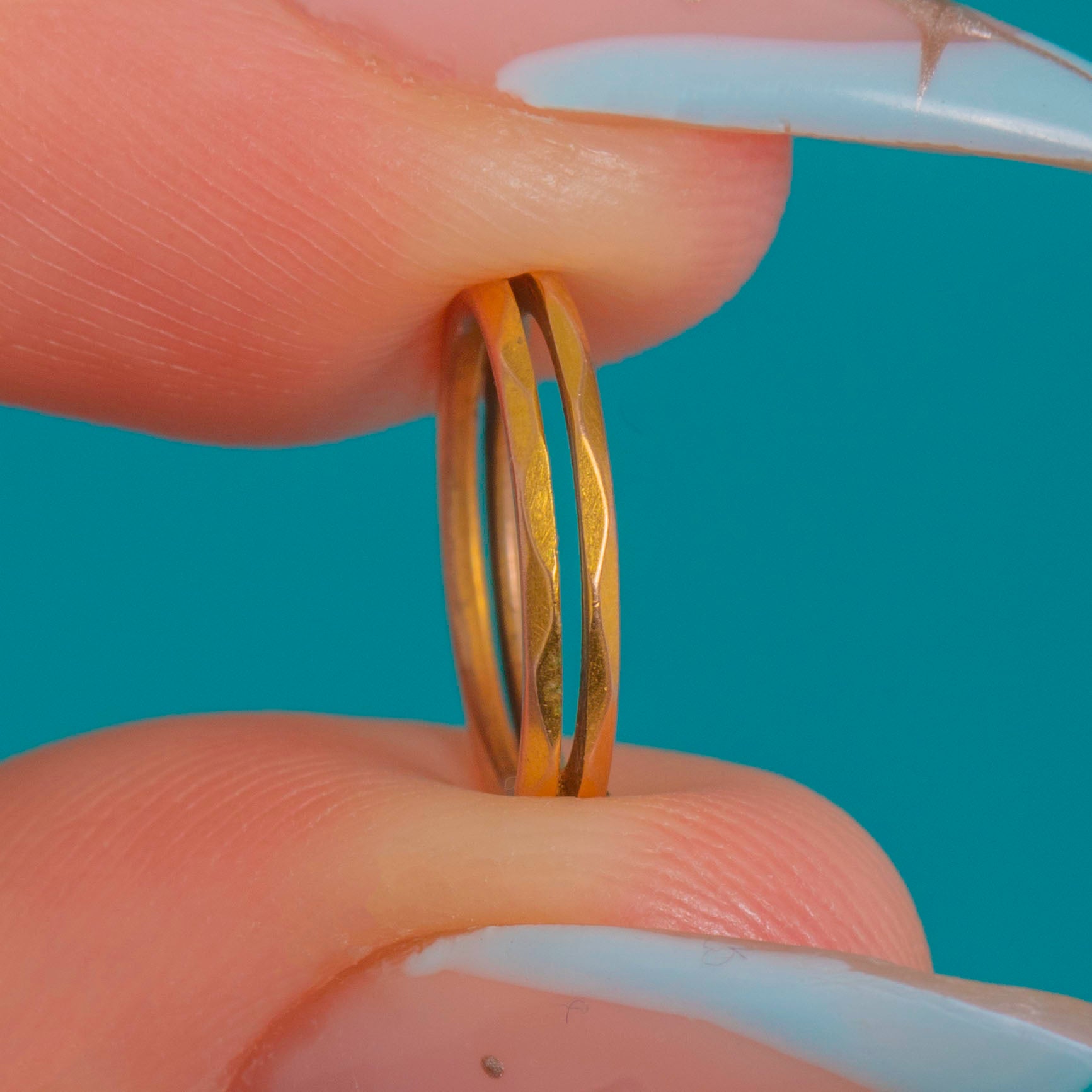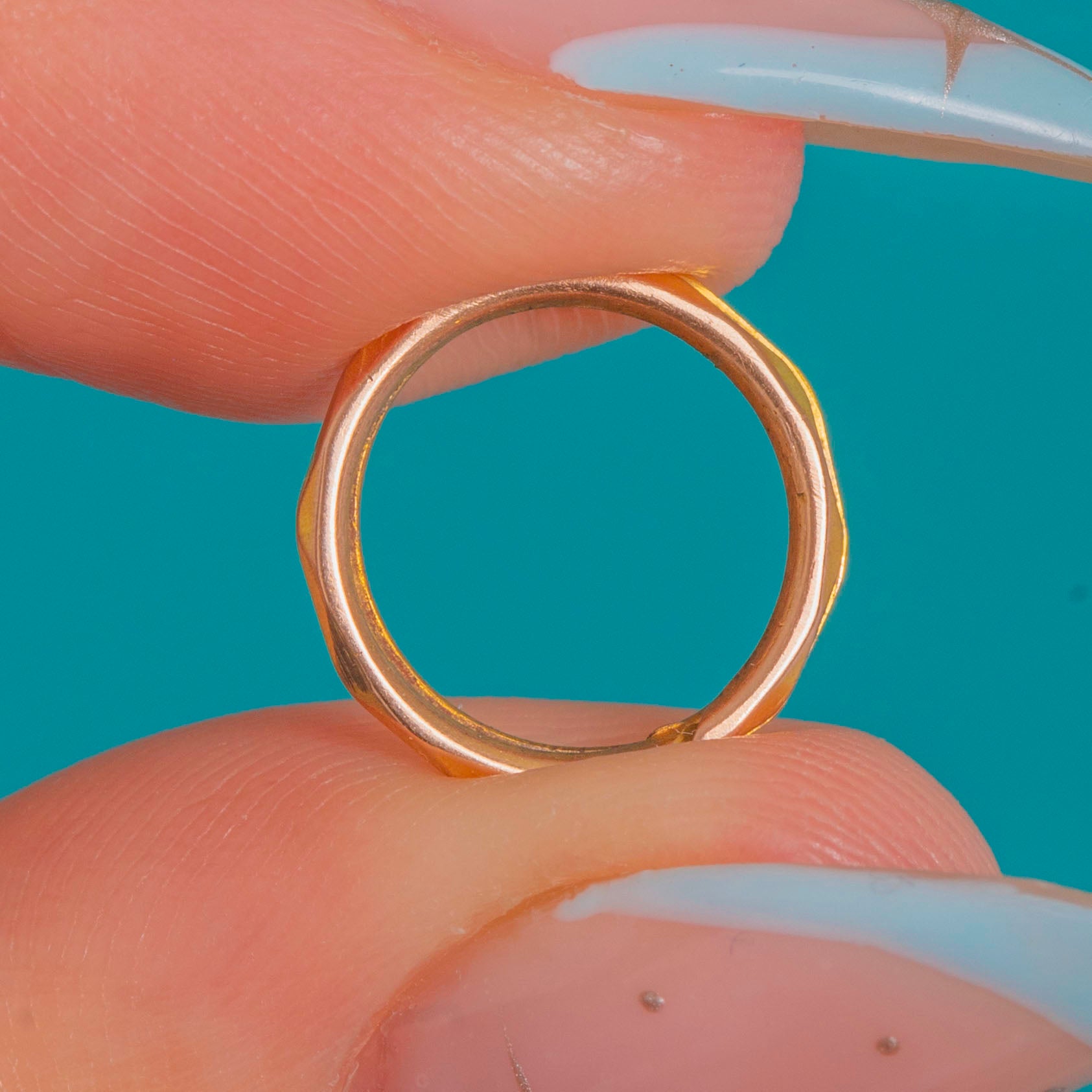 A petite treasure from the Victorian era, this antique faceted split ring is crafted in warm 9ct Gold. Its neatly faceted surface catches the light beautifully, bringing a refined glimmer to an elegant essential.
