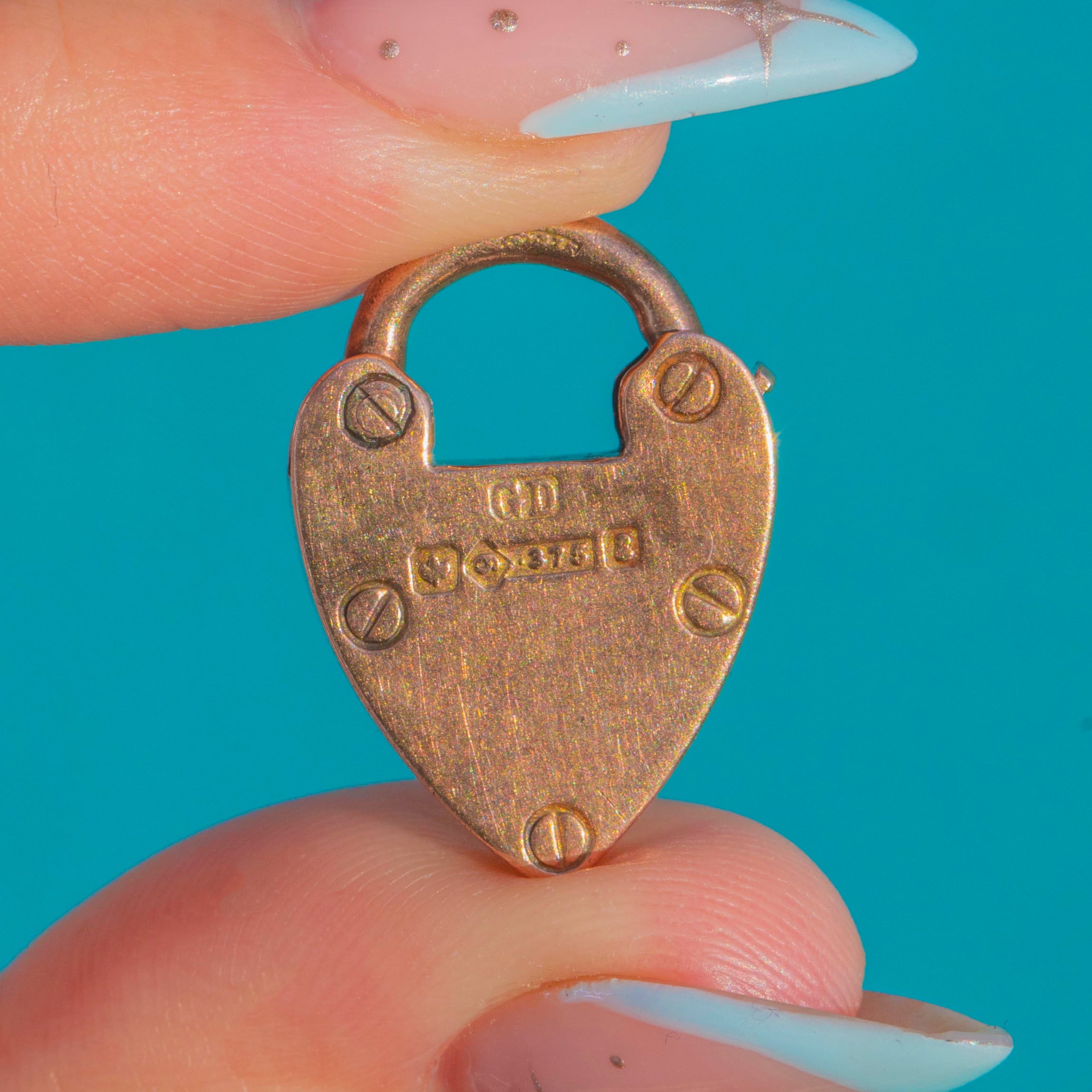 A classic Victorian love token in glowing 9ct Gold, this petite heart padlock pendant pairs romance with a subtle industrial edge. Its smooth heart face is detailed with a decorative keyhole and tiny slotted “screw” accents, all enhanced by a warm, rosy-yellow hue.