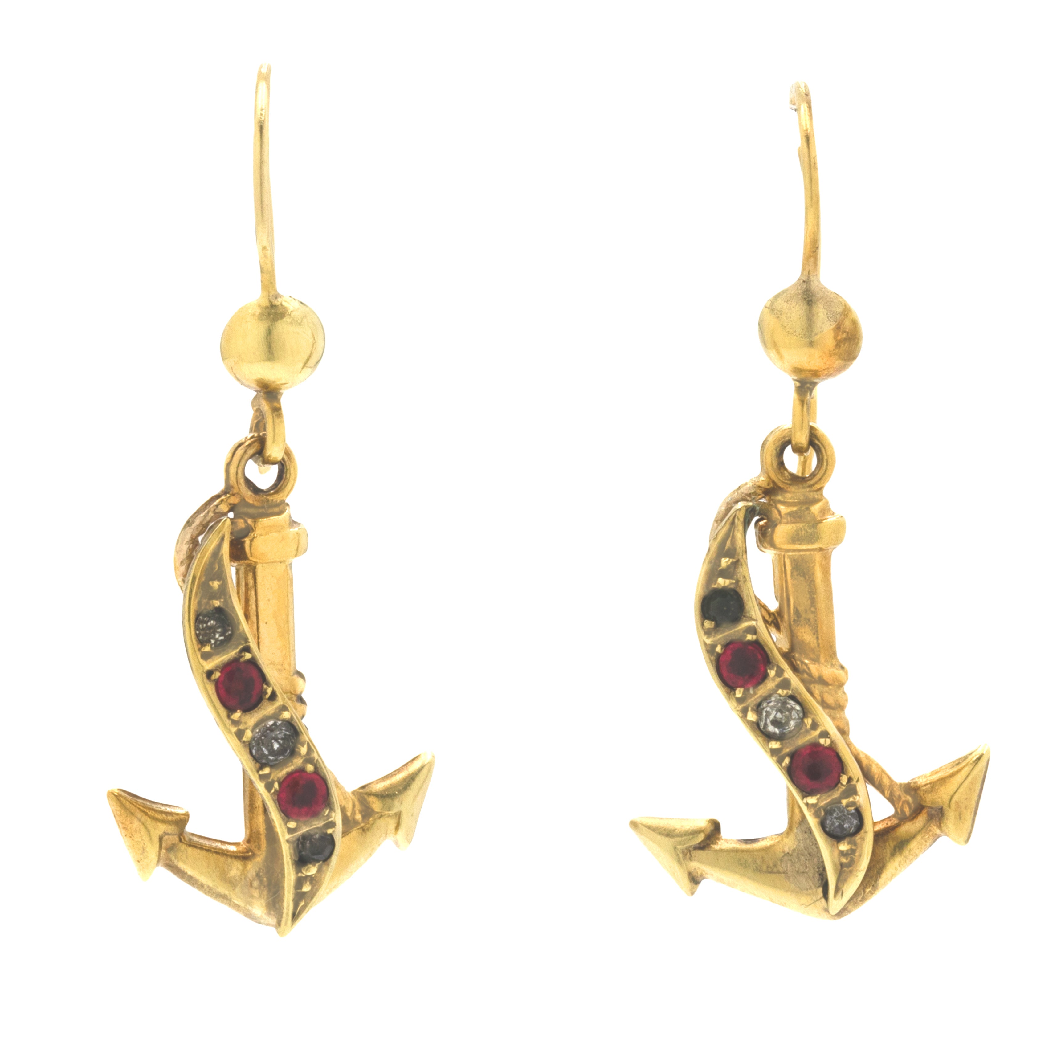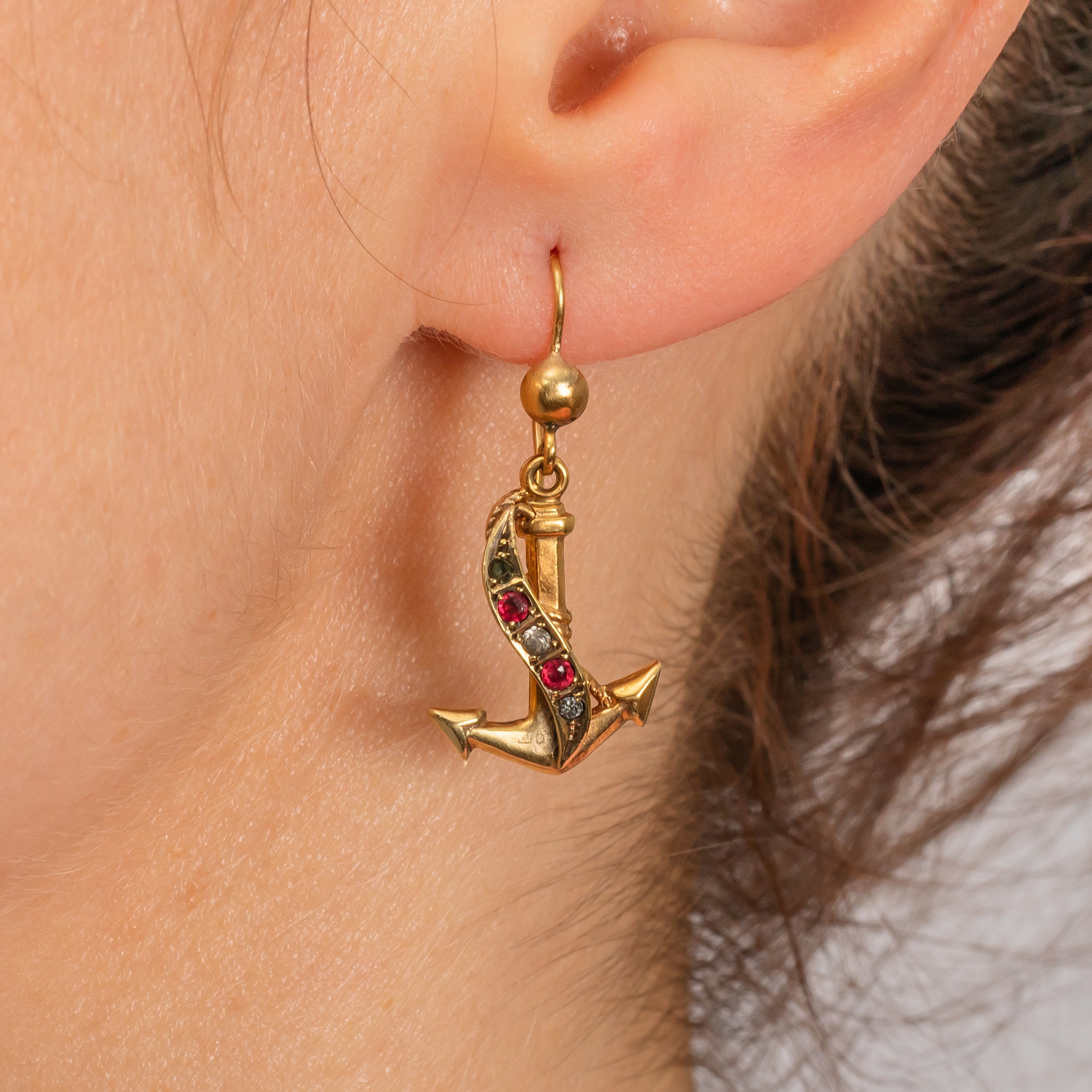 Boucles d'oreilles ancre en or 9 carats et pâte victoriennes