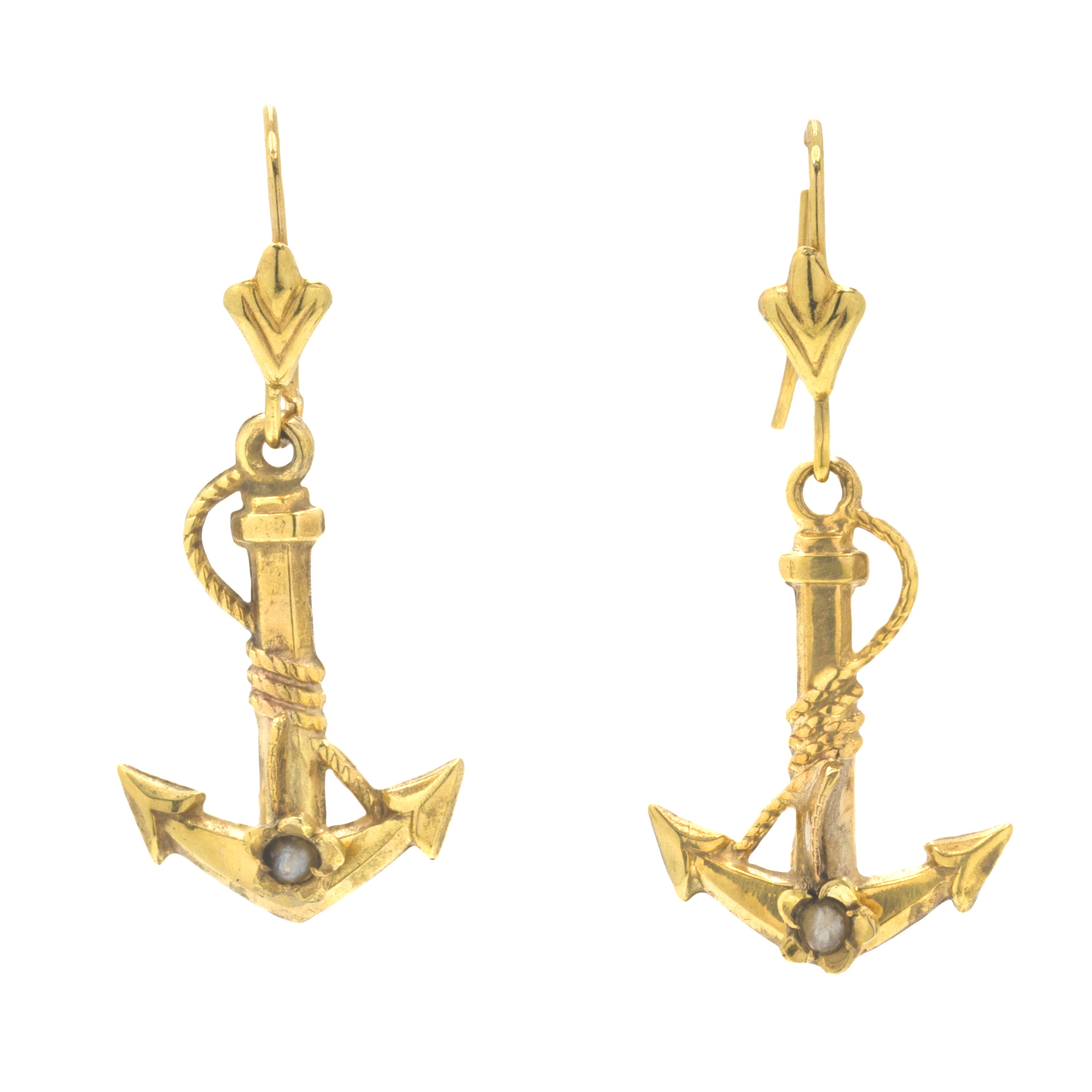 Boucles d'oreilles ancre en or 9 carats et perles victorien