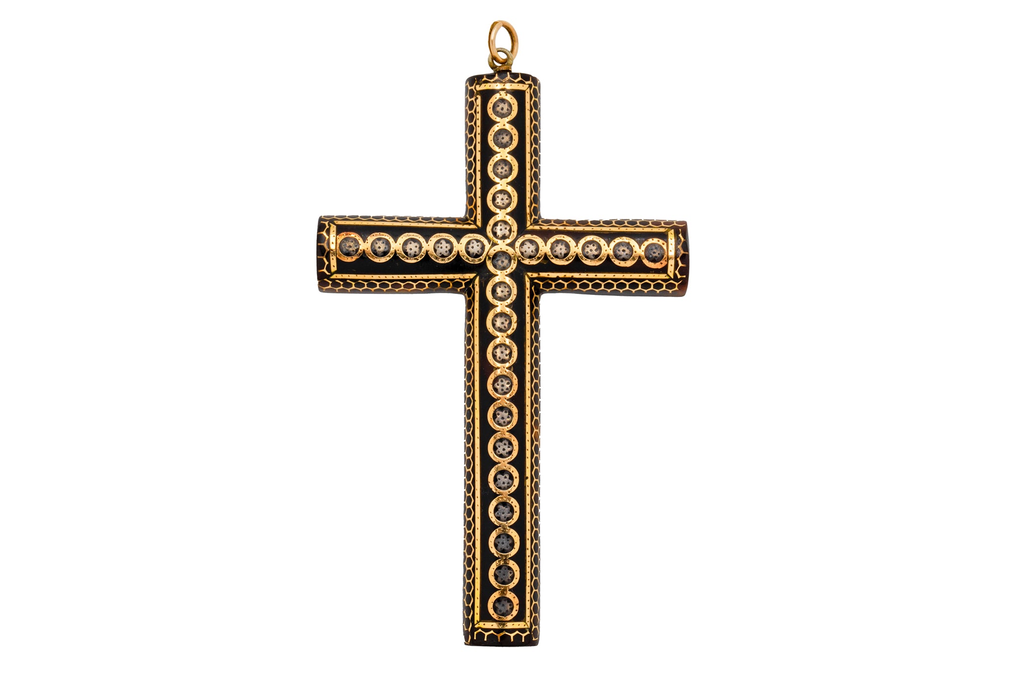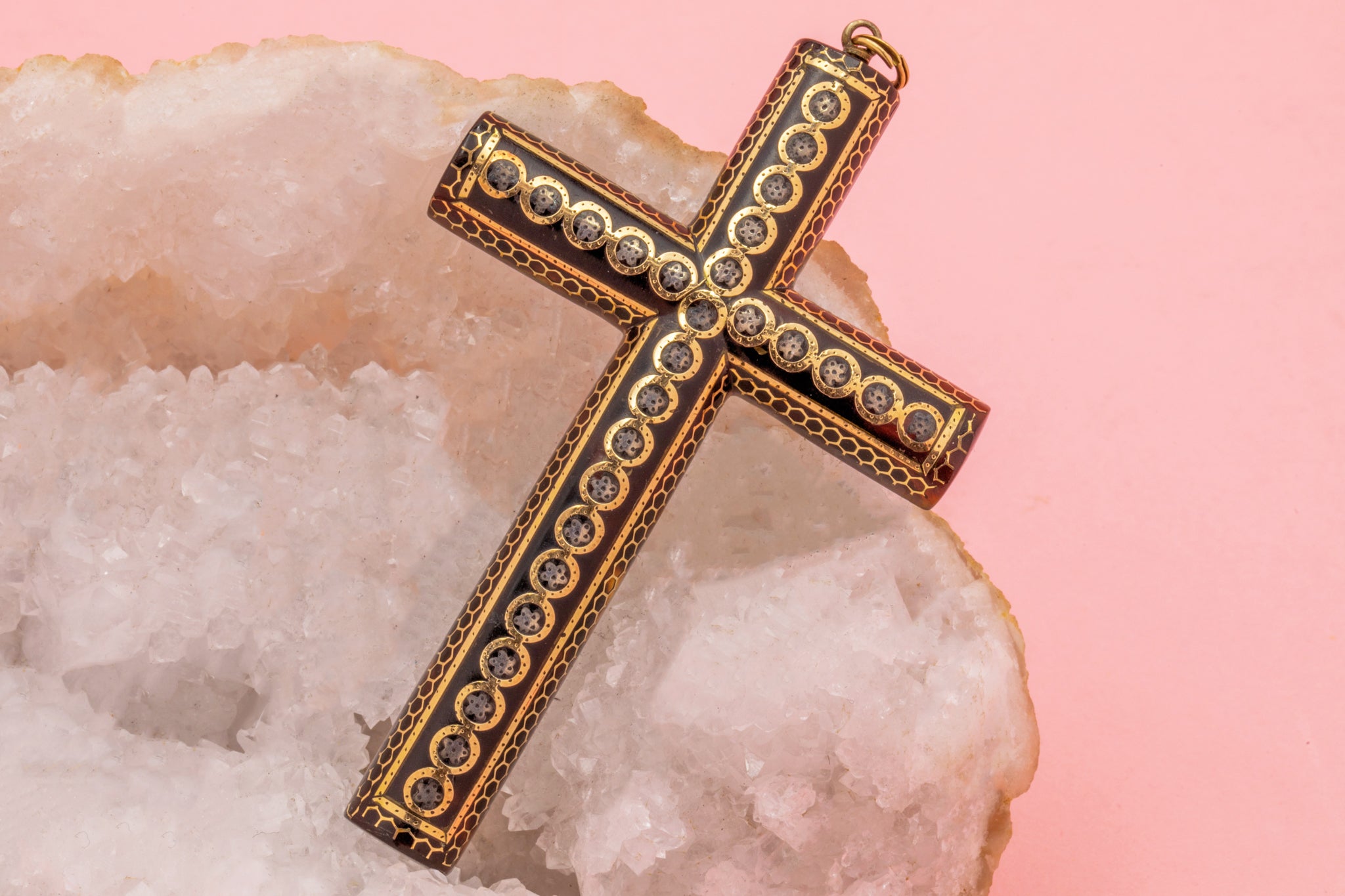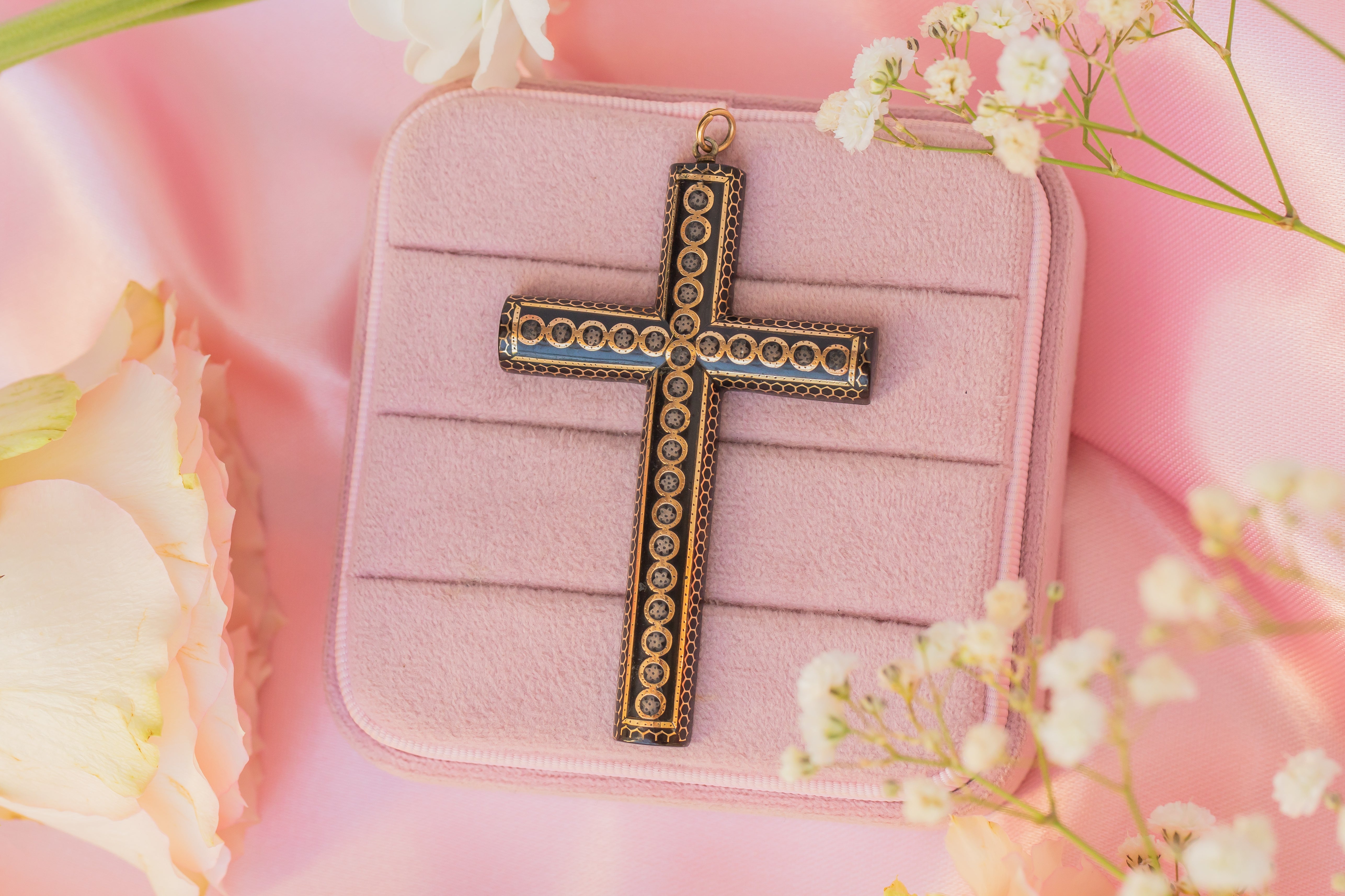 Pendentif Croix Pique en Or 9ct Victorien, Anneau Fendu en Or 18ct