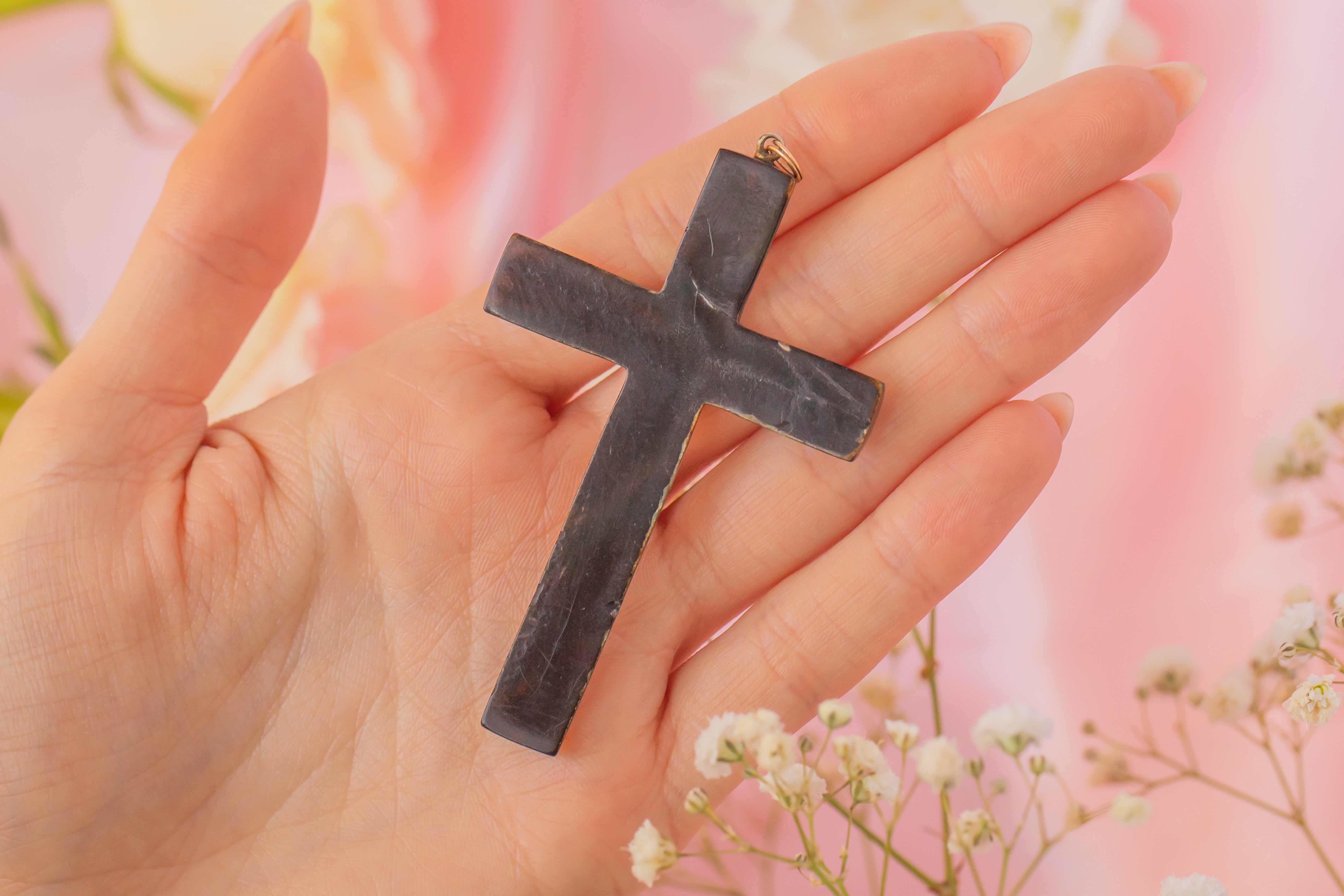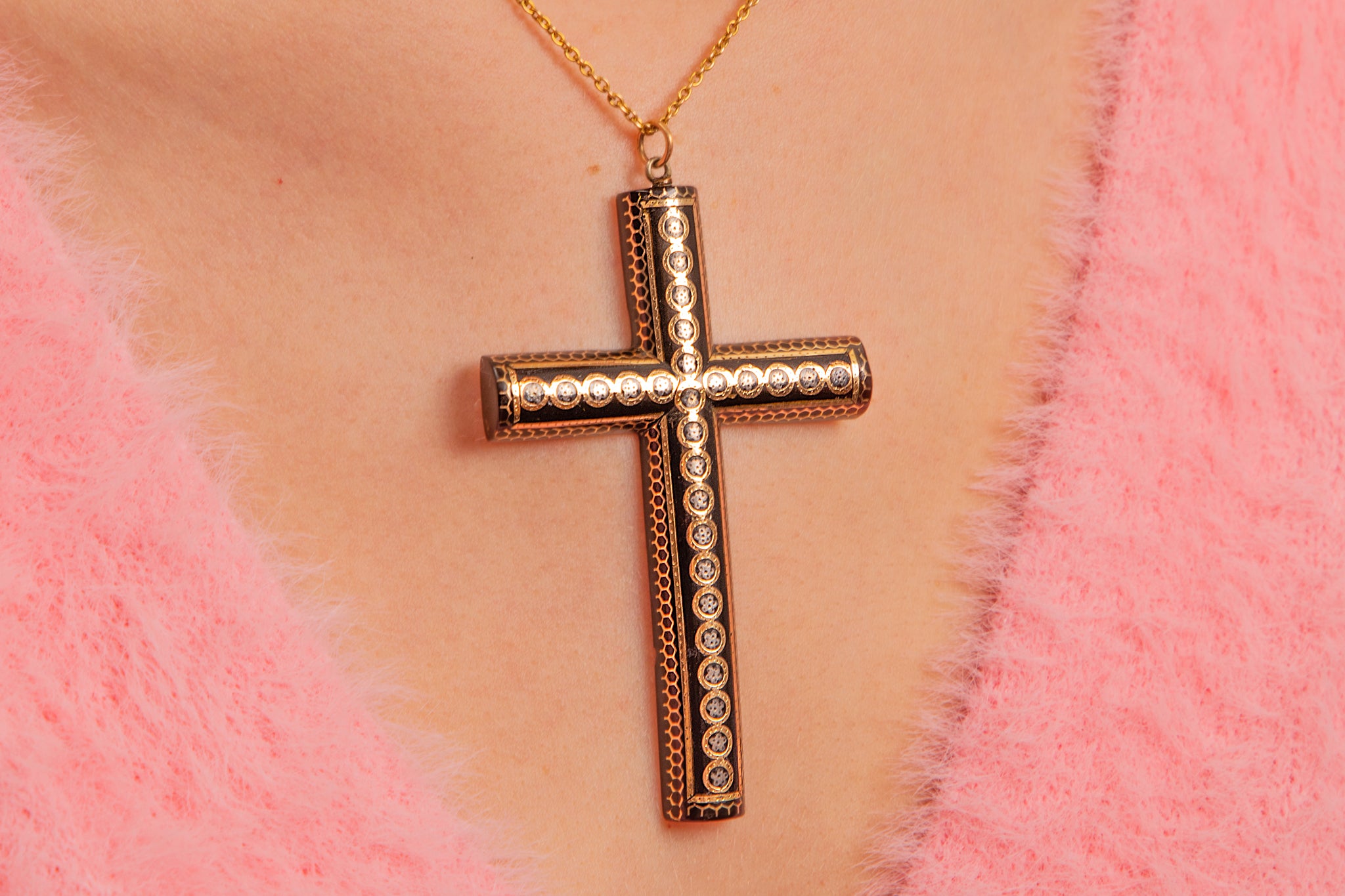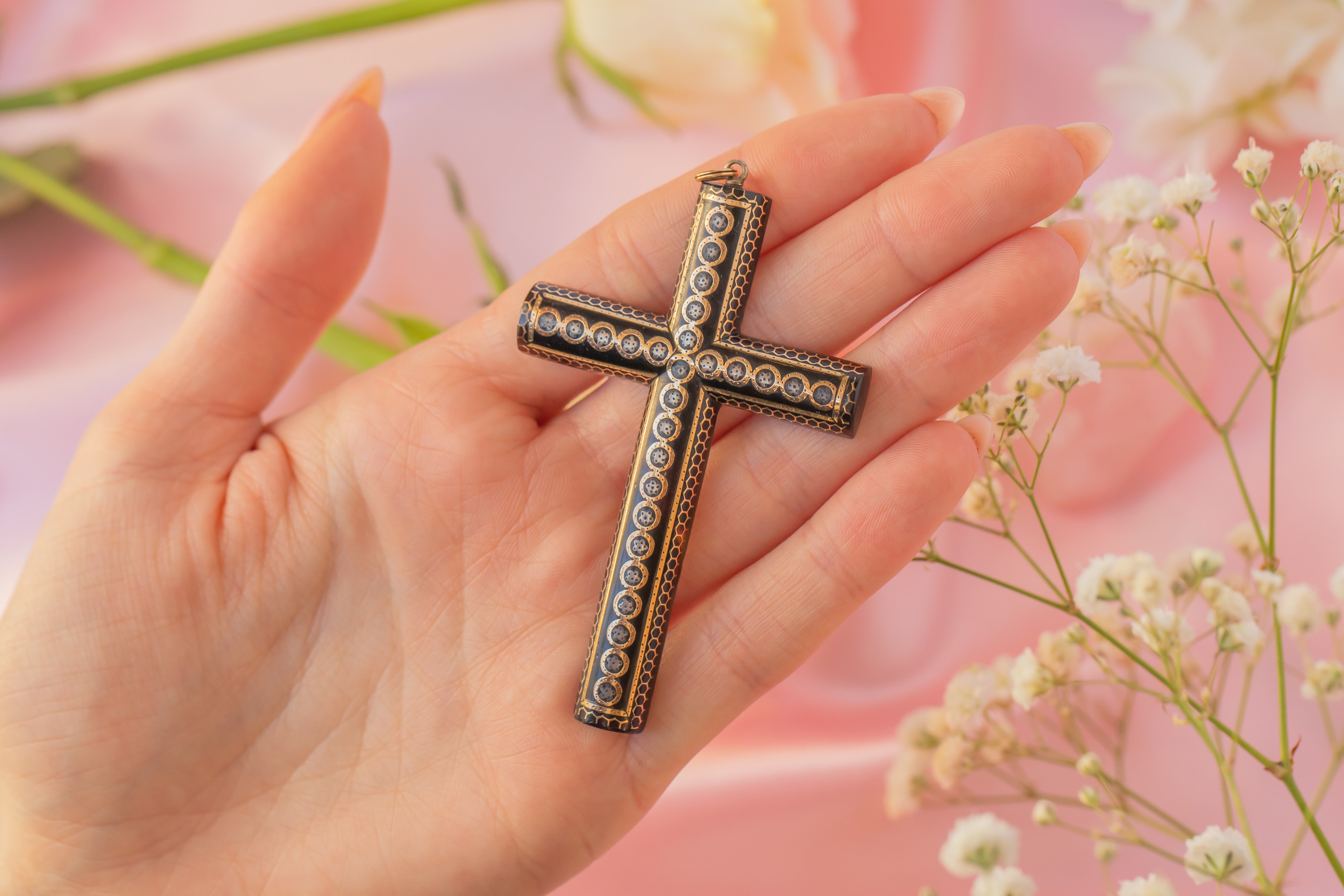 Pendentif Croix Pique en Or 9ct Victorien, Anneau Fendu en Or 18ct