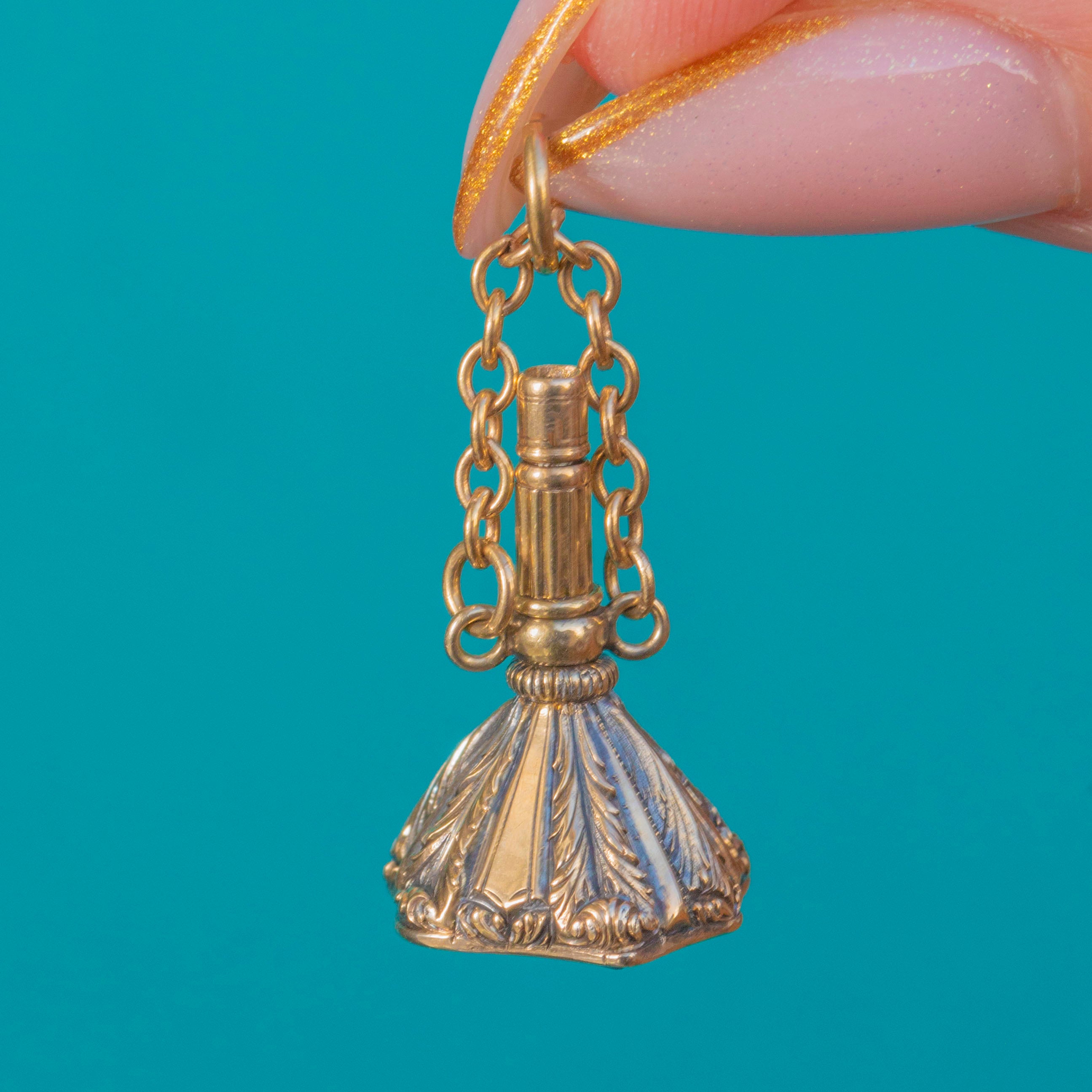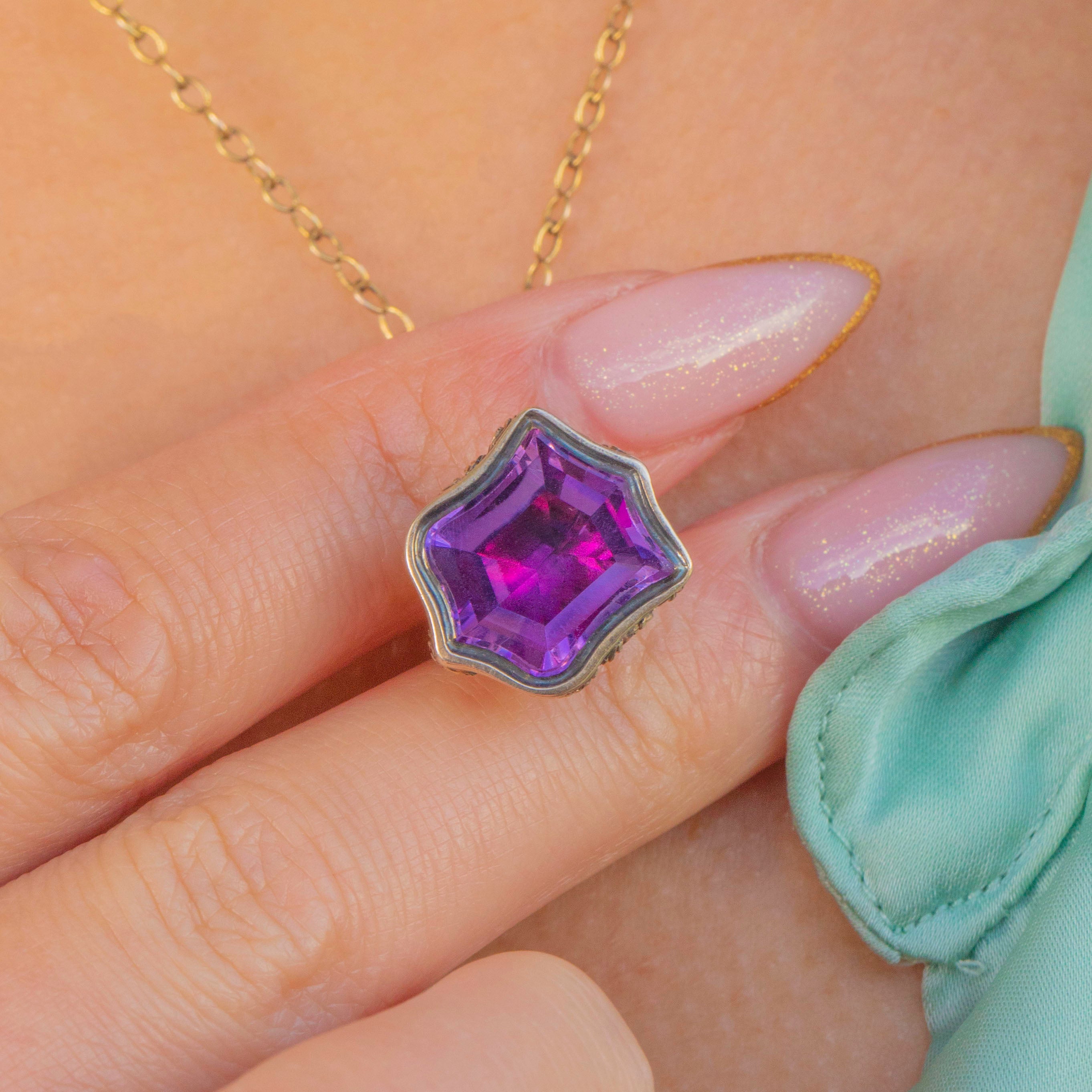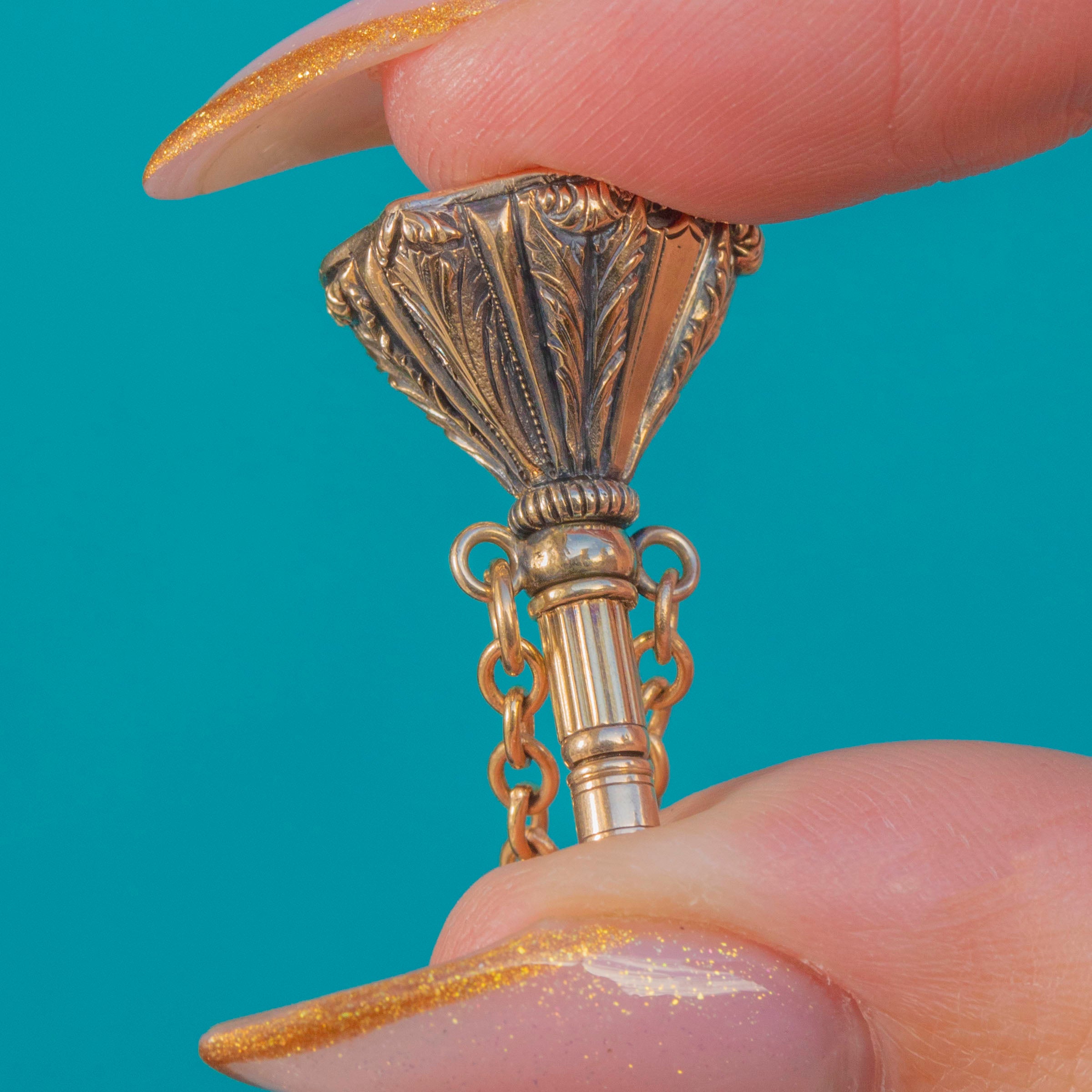 Victorian Charme de clé de montre en améthyste pourpre avec feuille en or 9ct