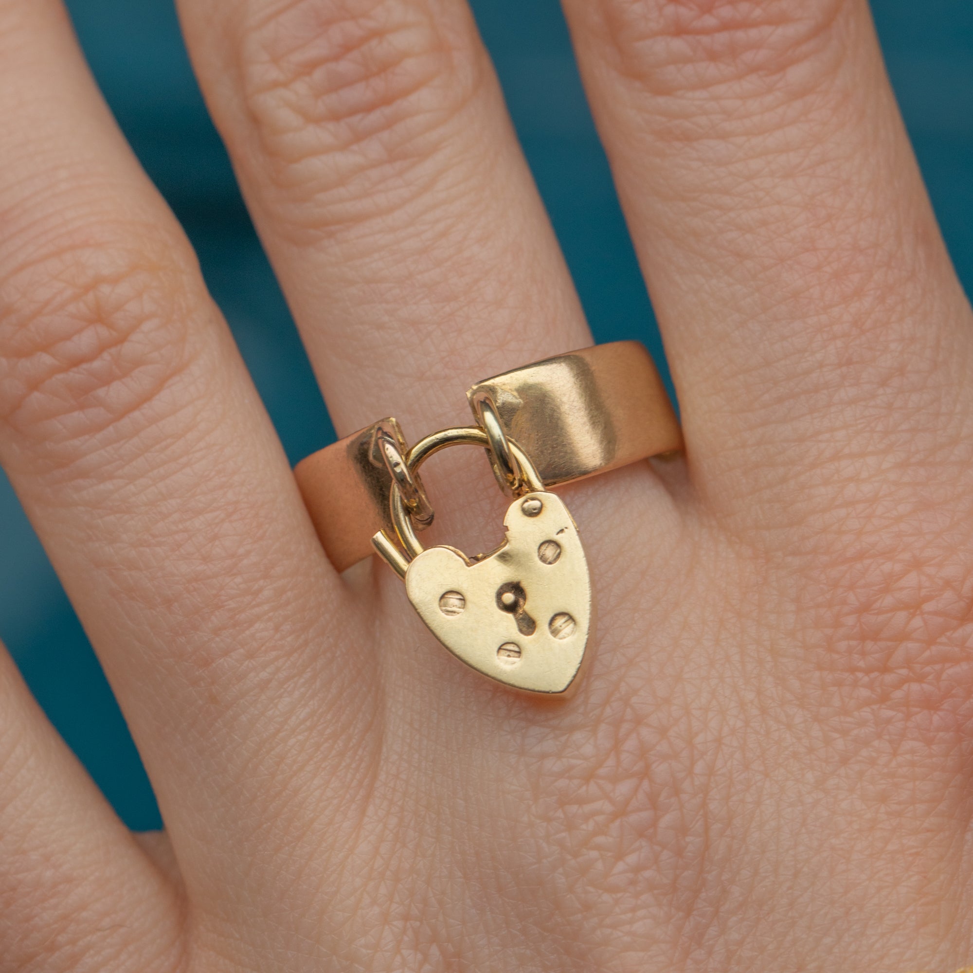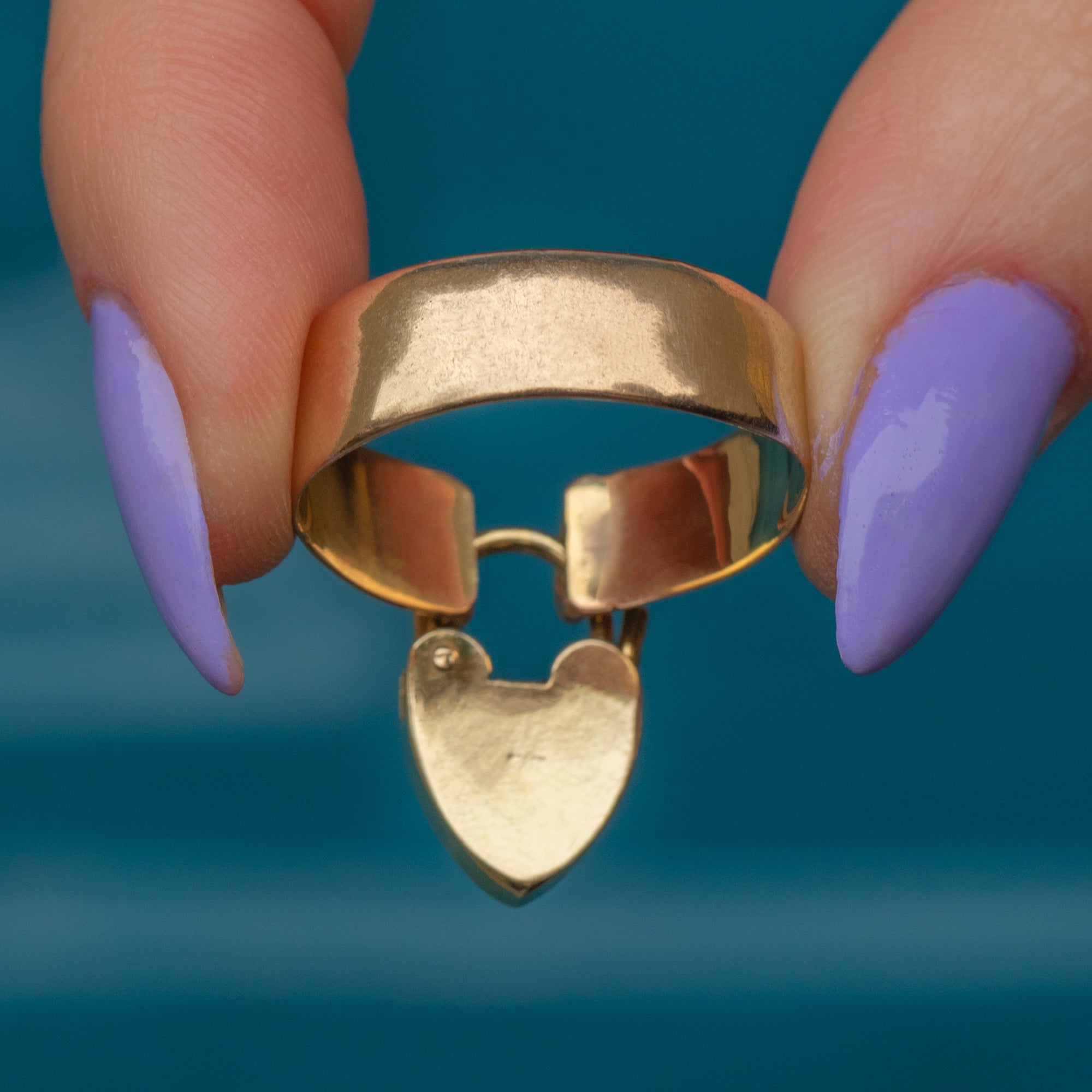 Victorian 9ct Gold Ring with Heart Padlock, c.1870