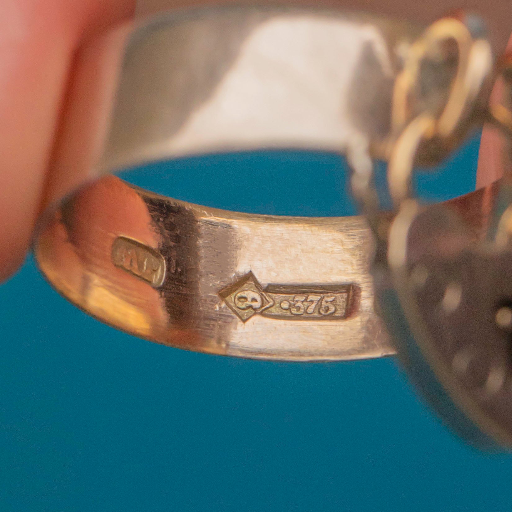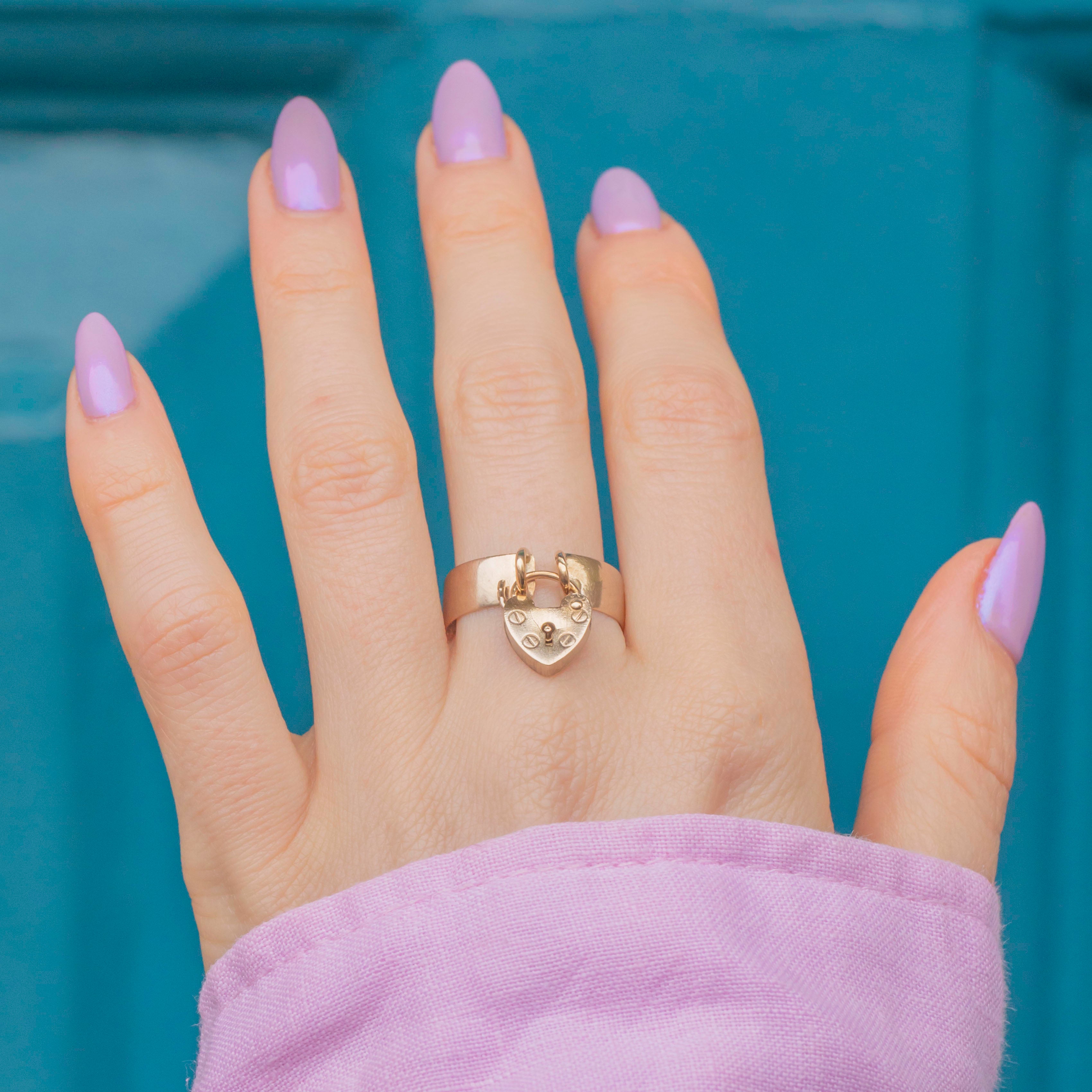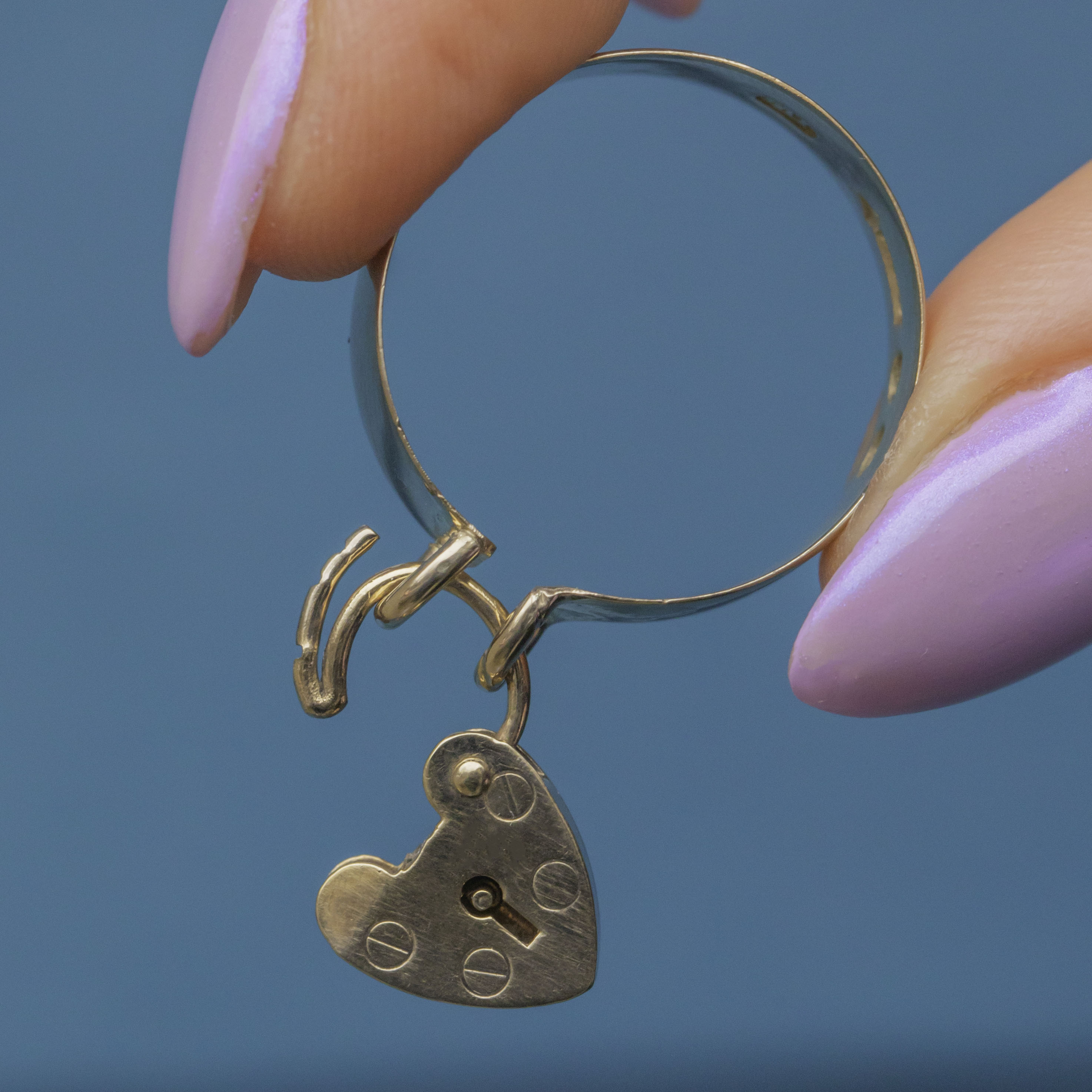 Victorian 9ct Gold Ring with Heart Padlock Charm