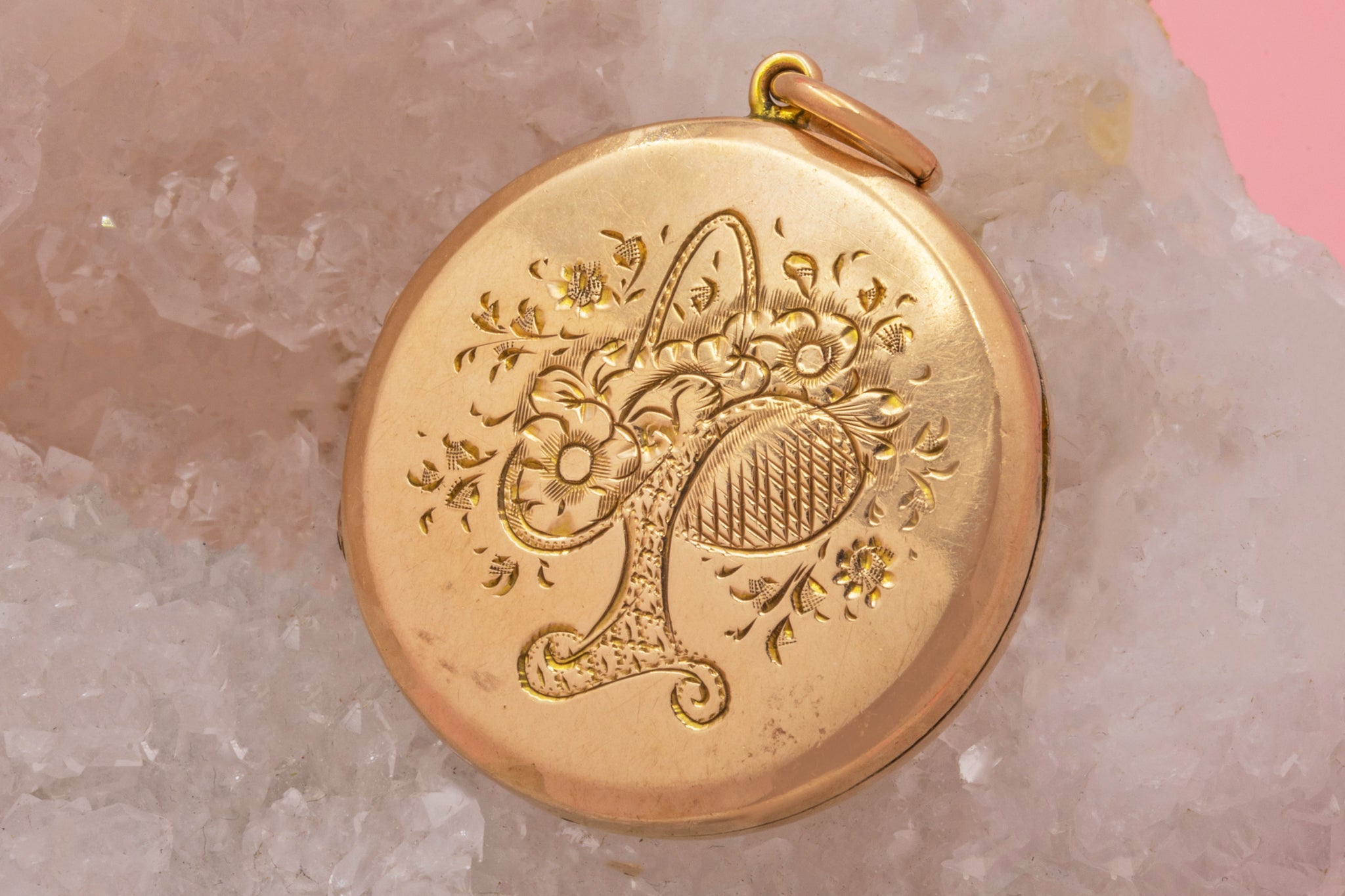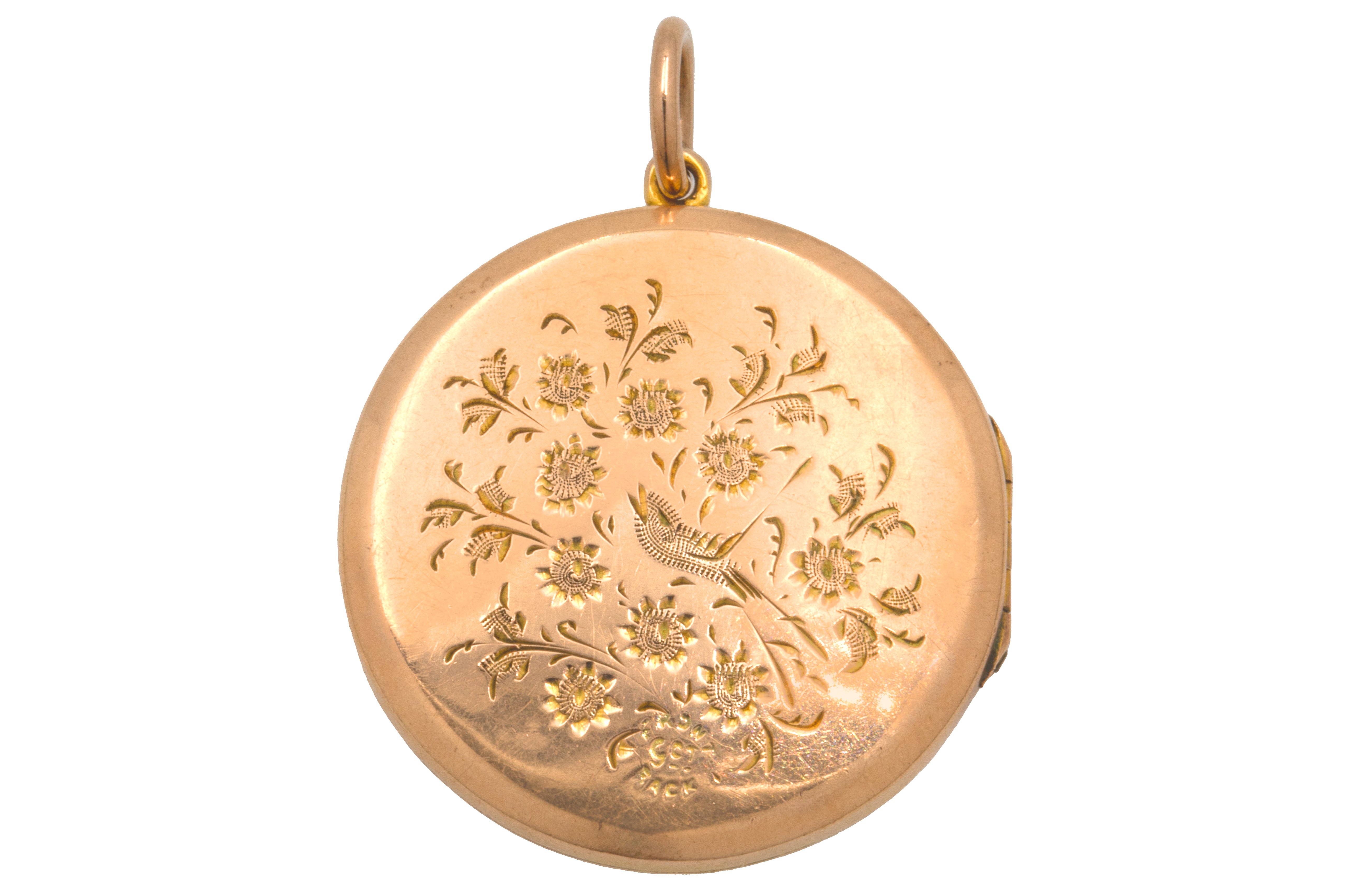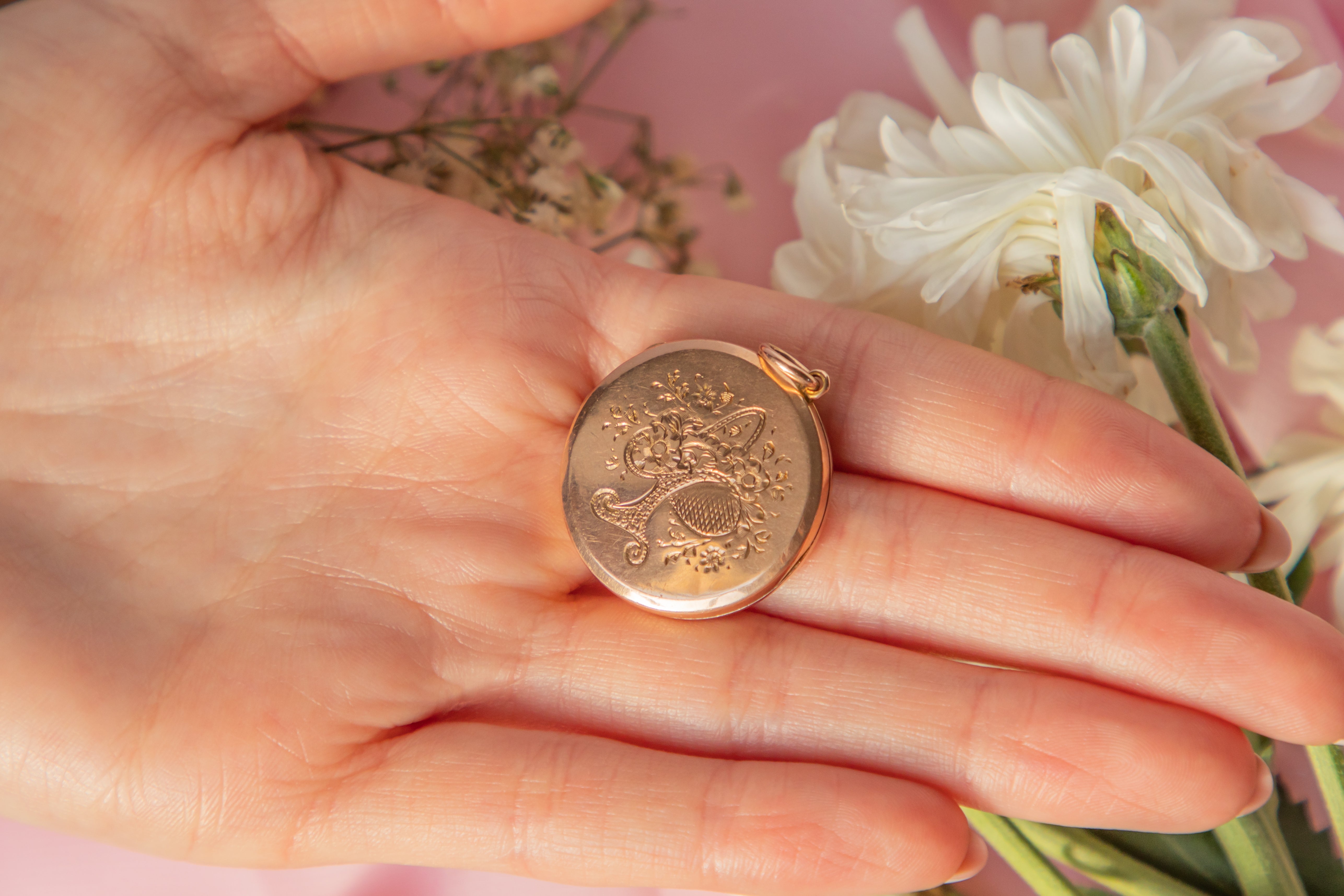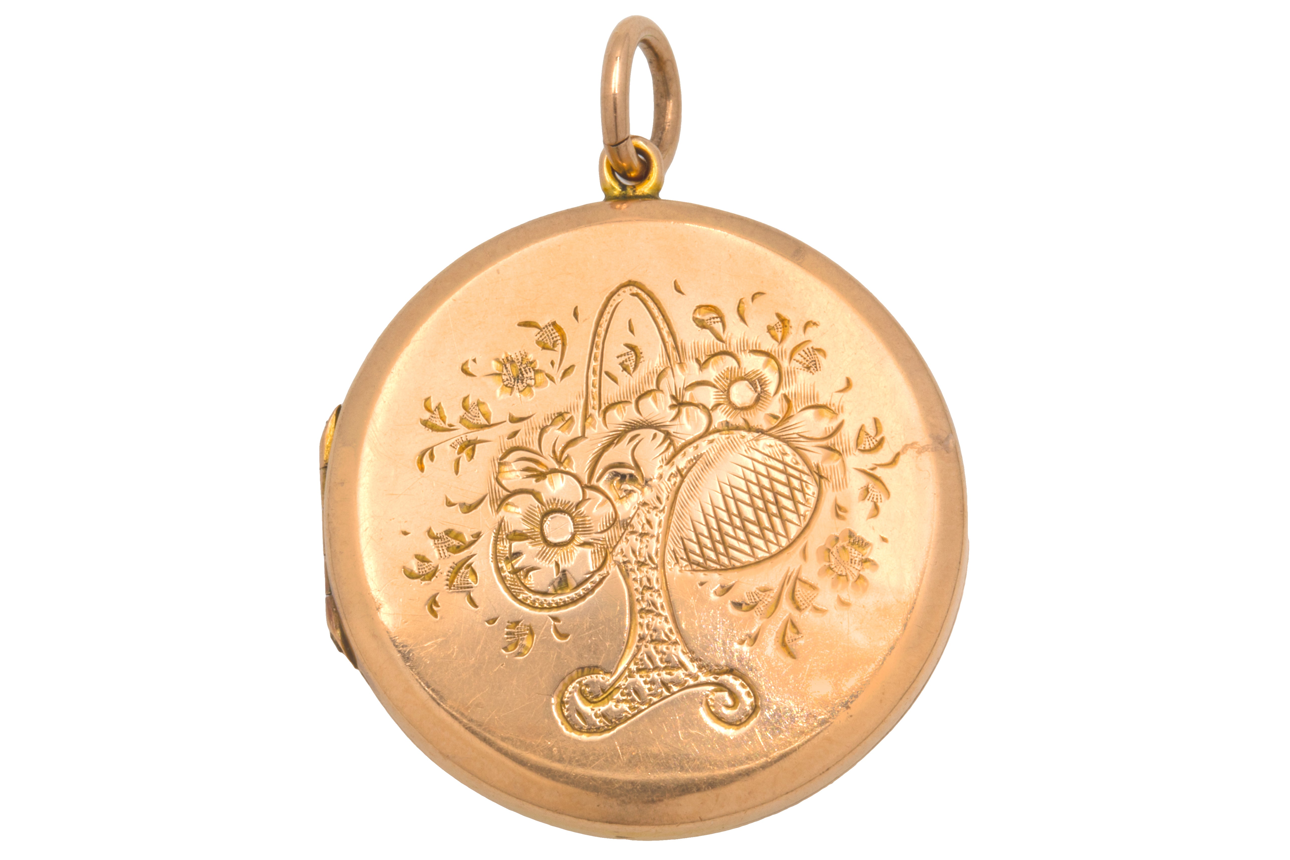 Médaillon rond « Bouquet de fleurs » en or 9 carats victorien
