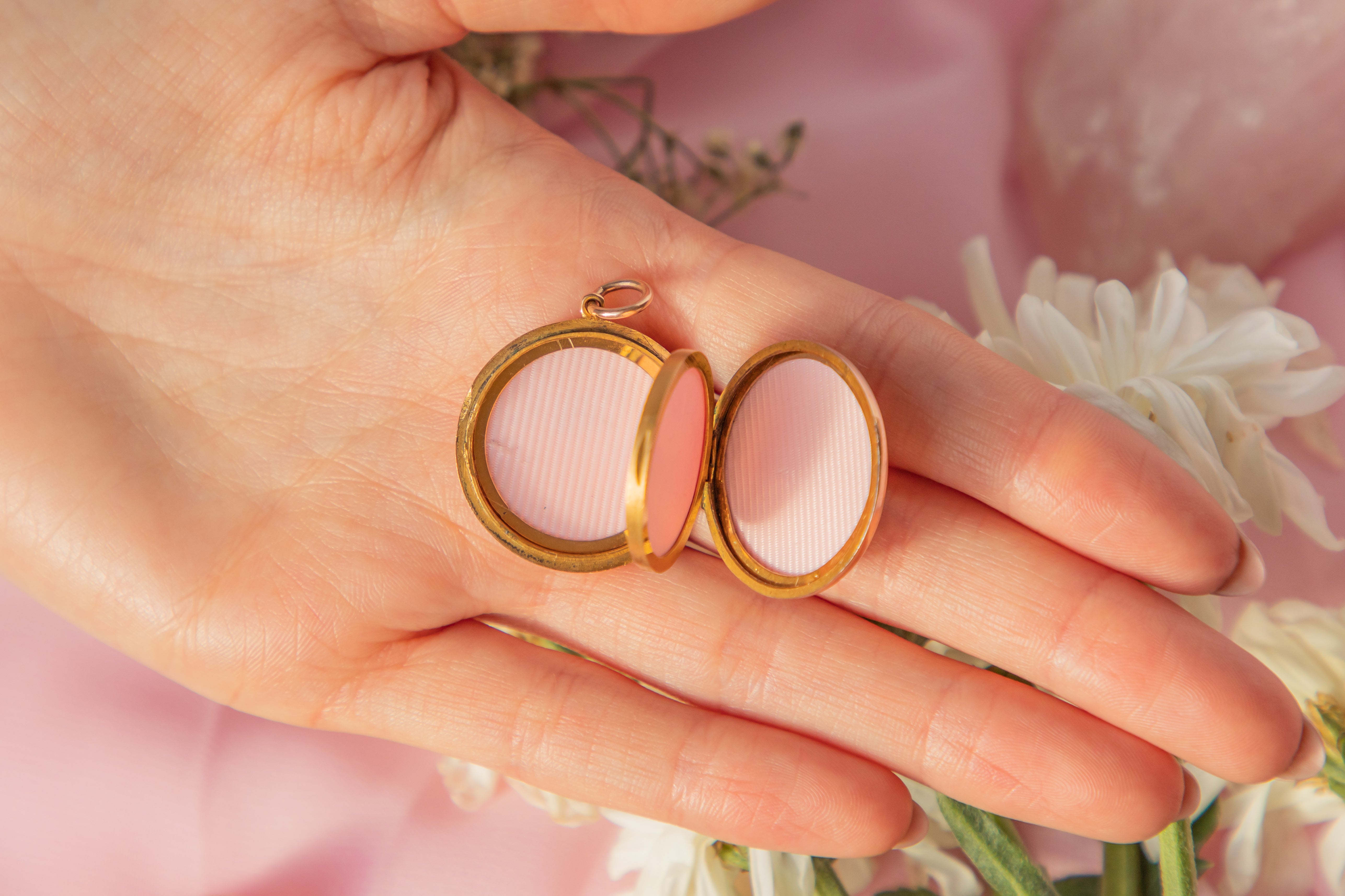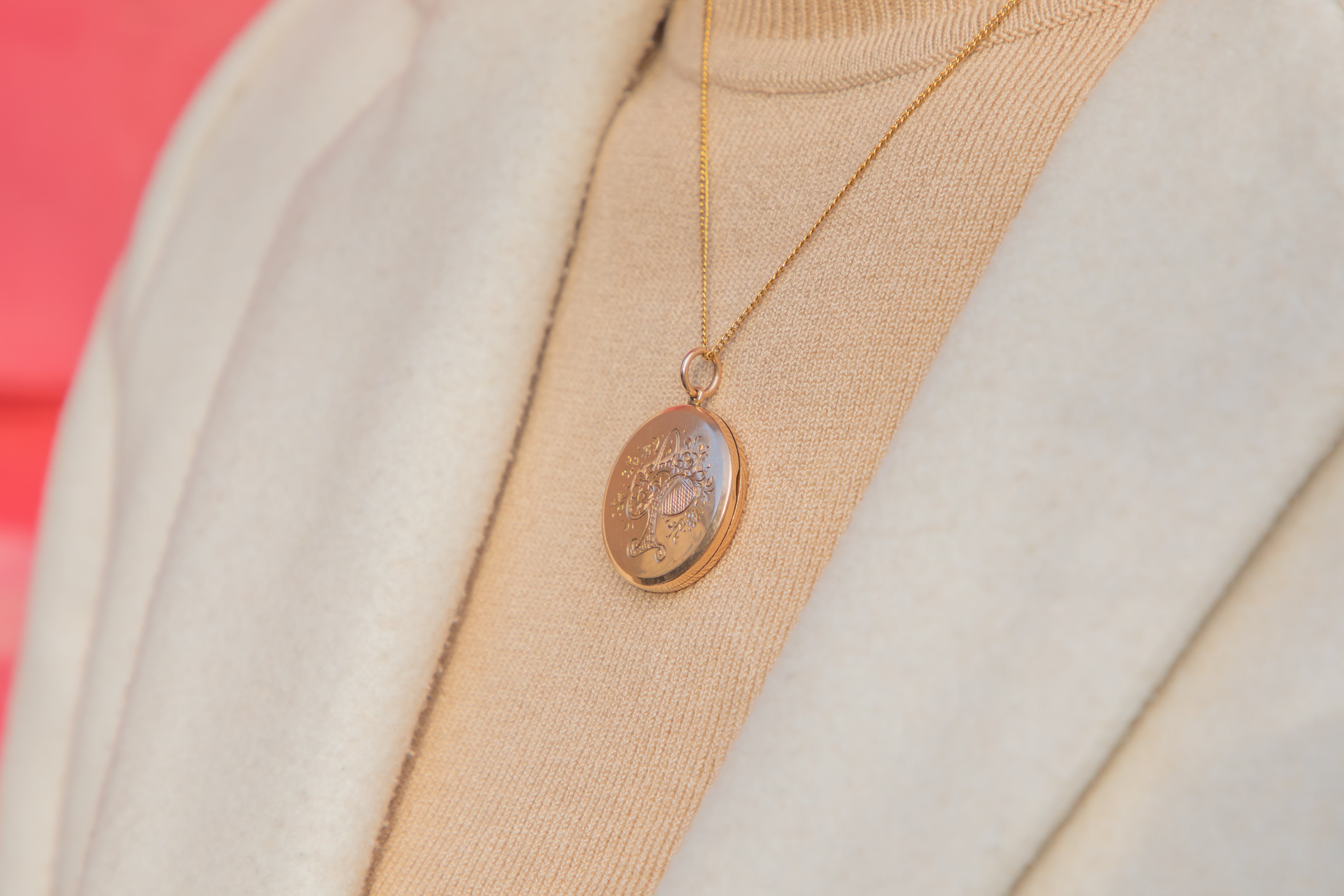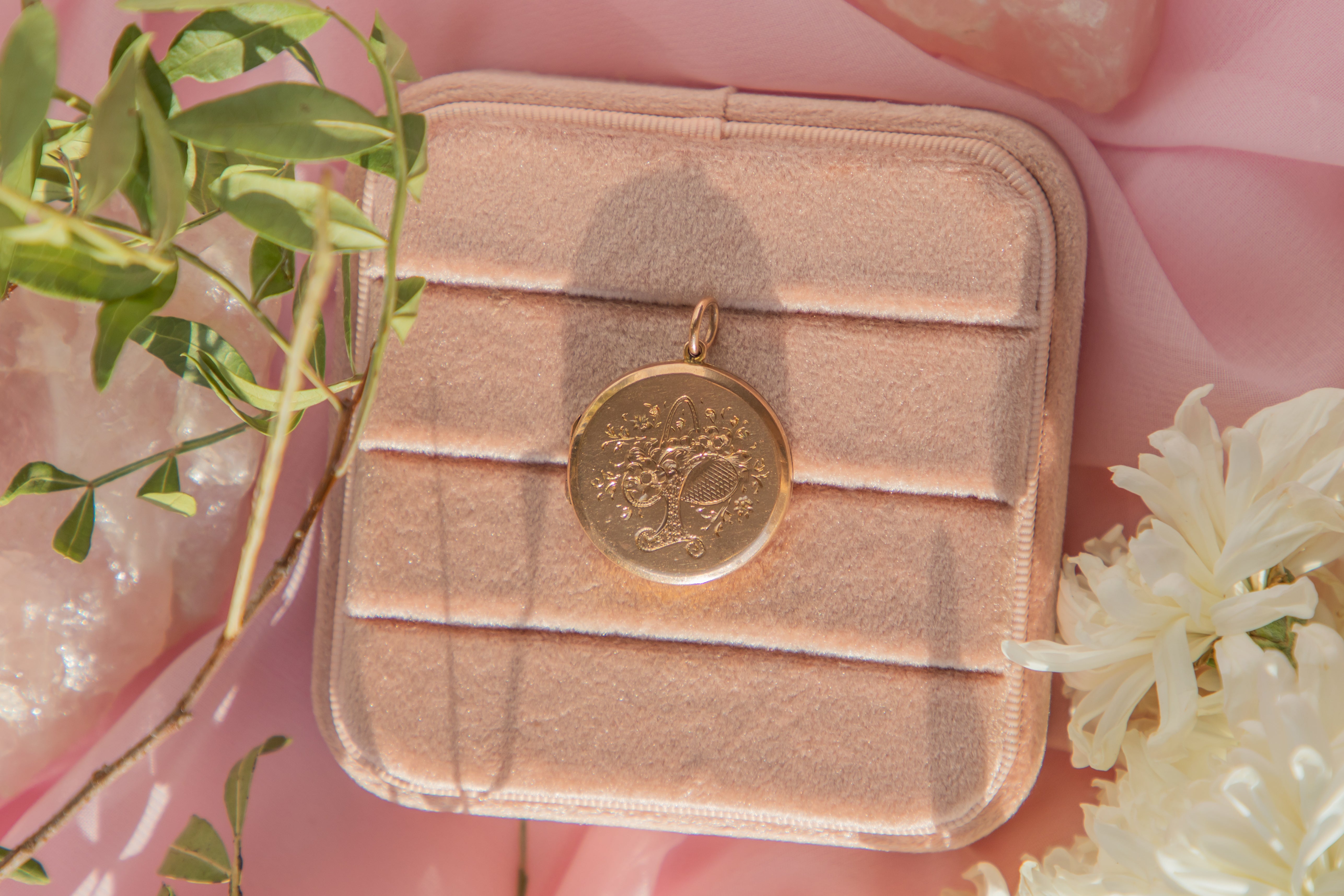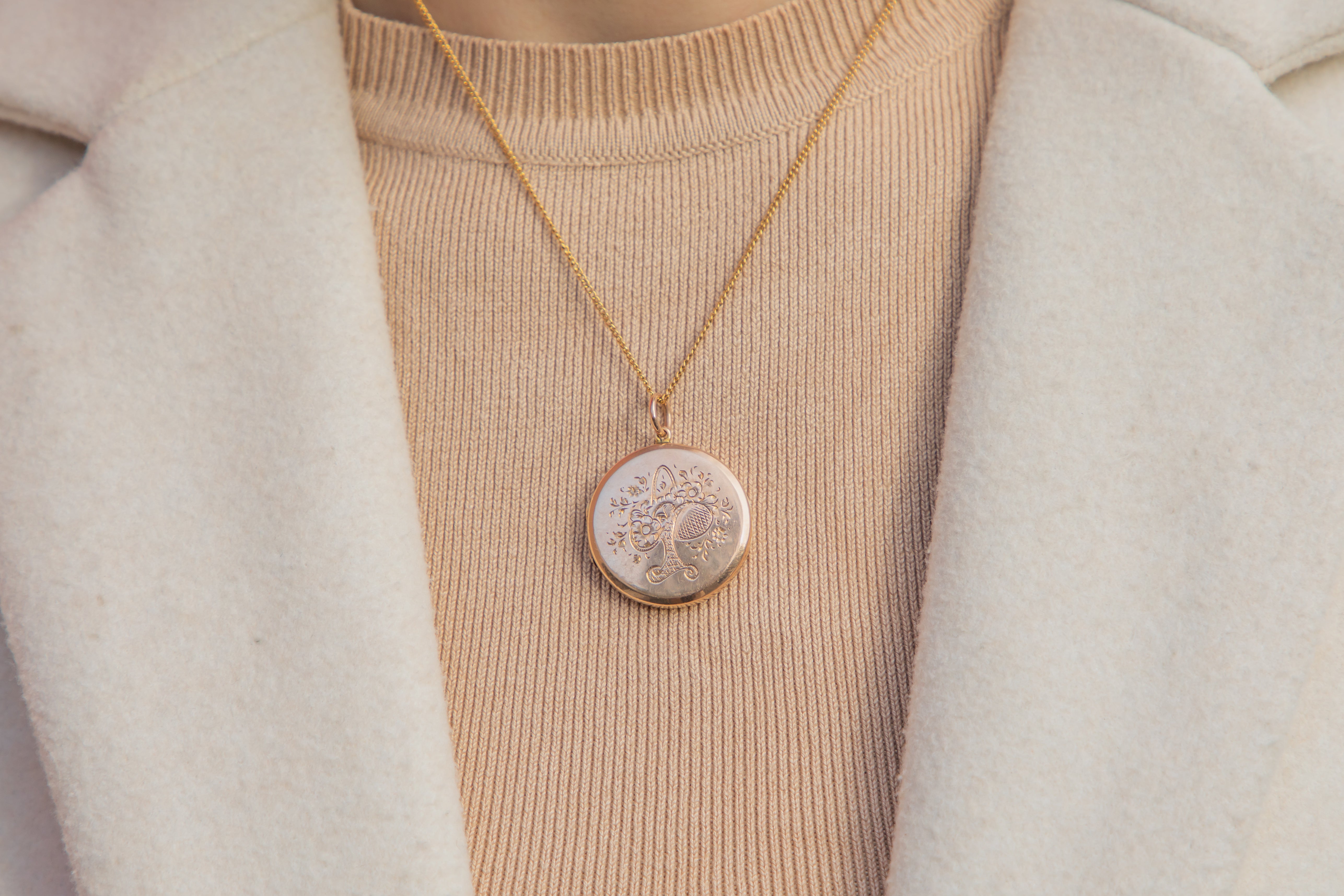Médaillon rond « Bouquet de fleurs » en or 9 carats victorien