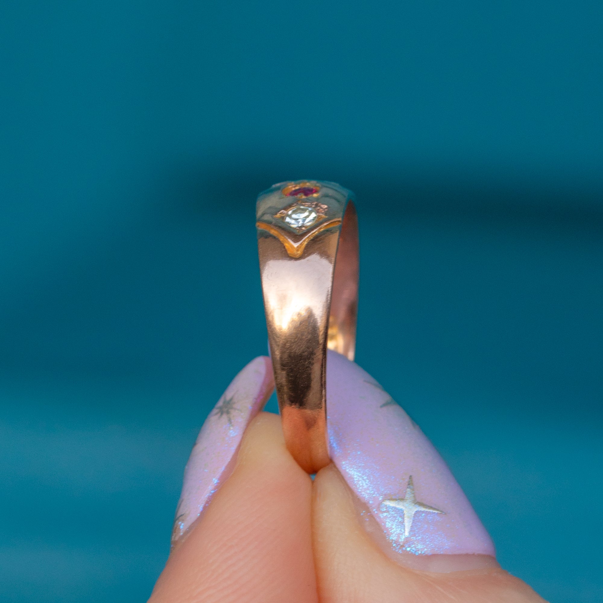 Victorian 9ct Gold Ruby Diamond Gypsy Ring, c.1896