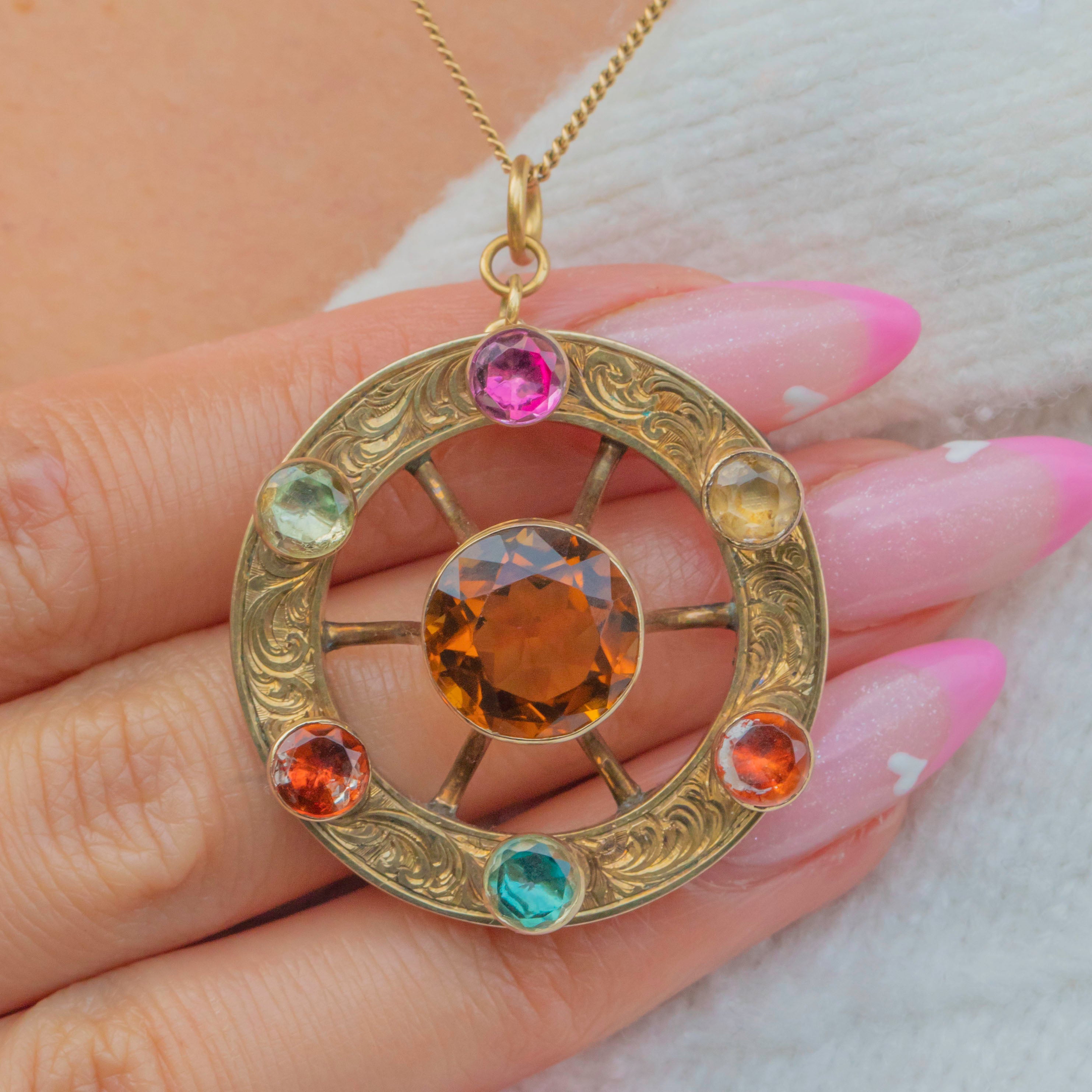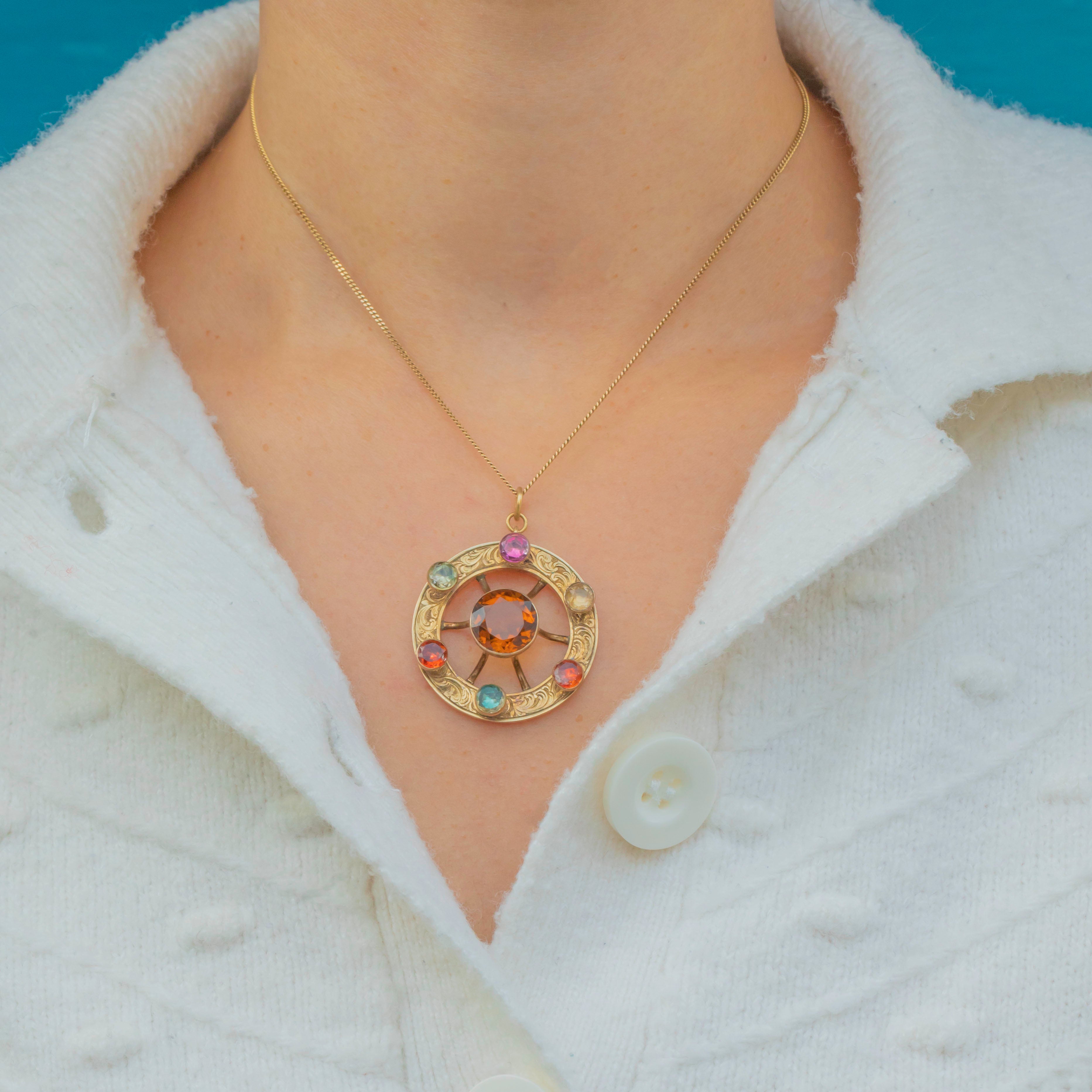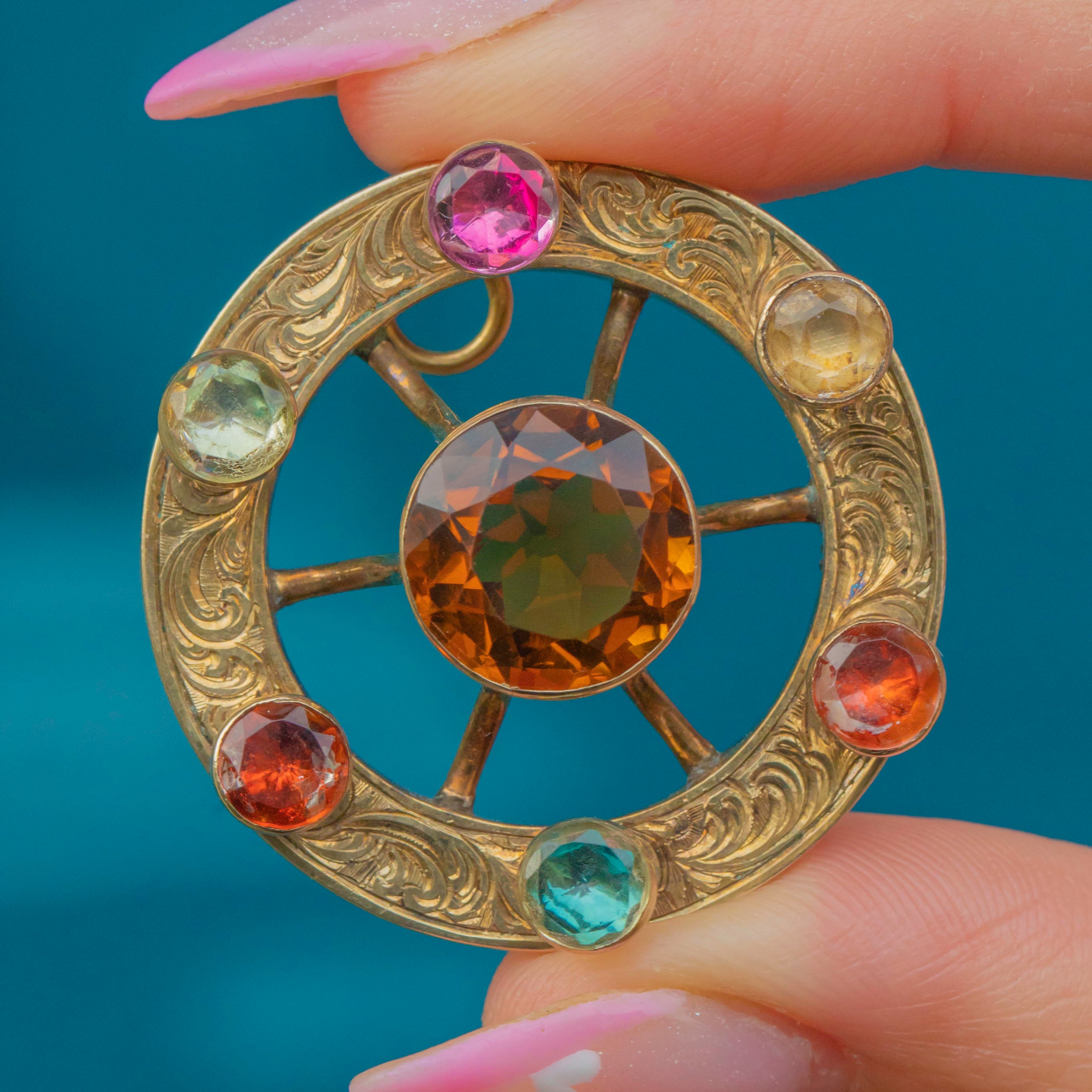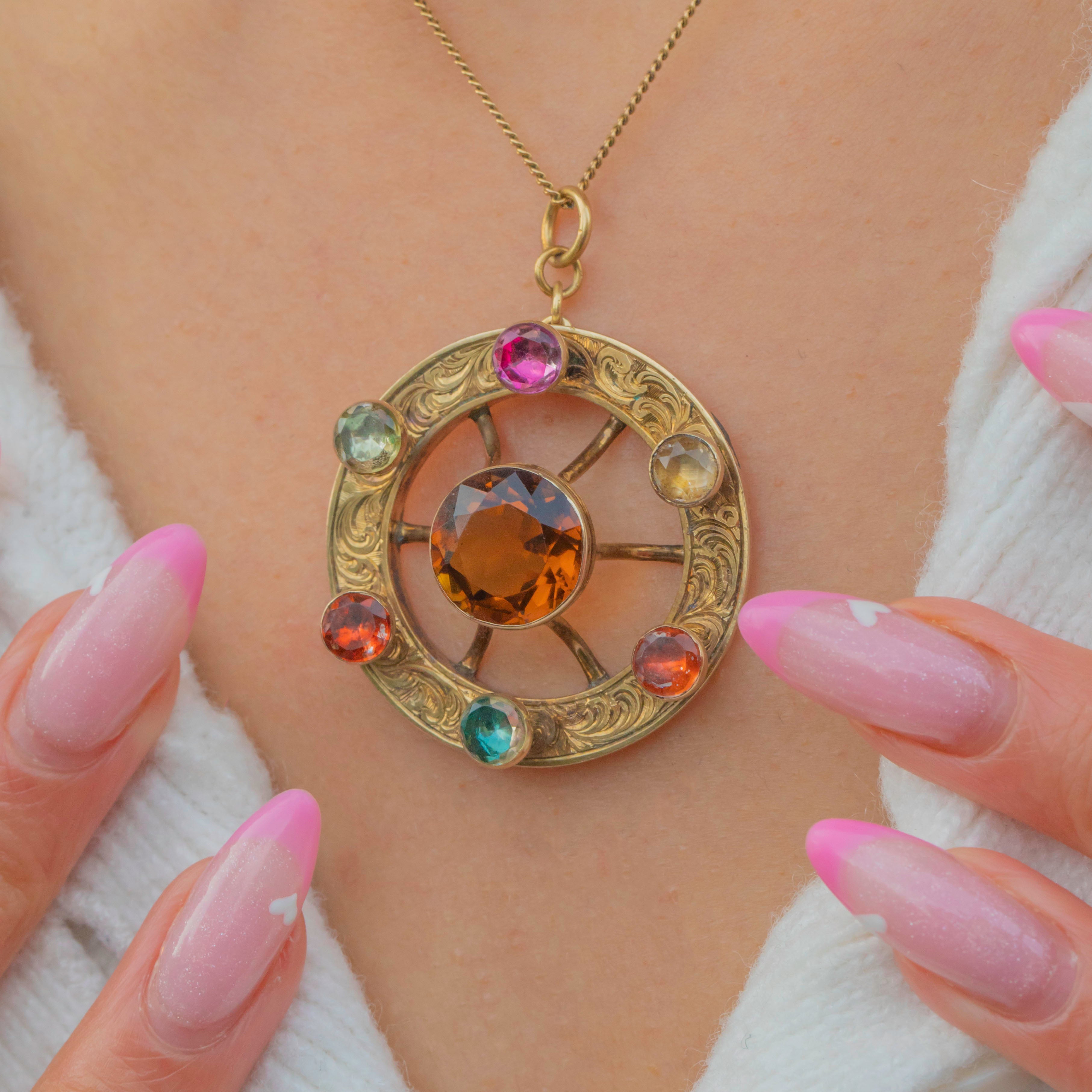 Pendentif victorien en or 9 carats avec citrine écossaise et pâte