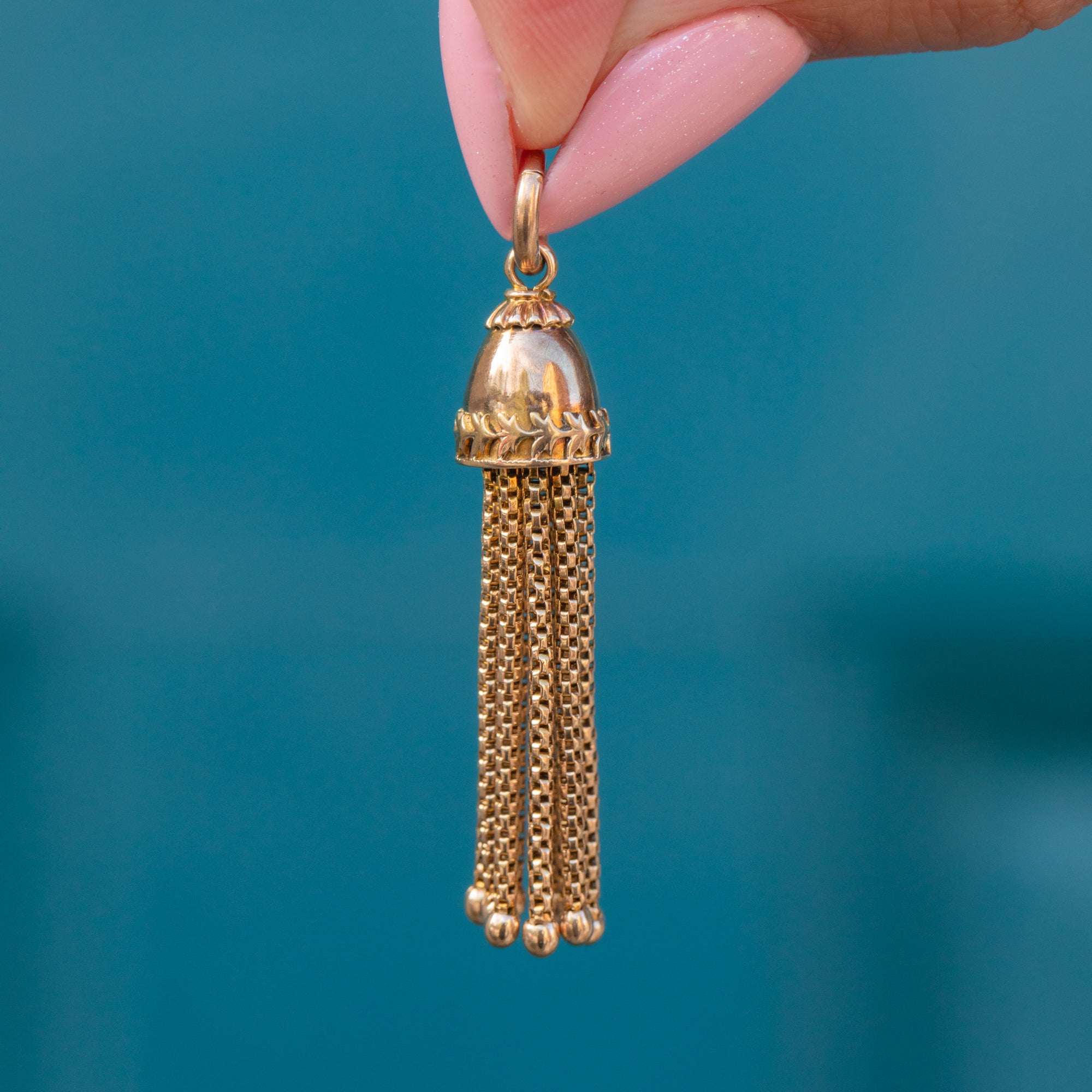 Sweet tassel charms like this will never go out of style, and will dance and shimmy with every step you take! This Victorian Gold tassel is perfect for everyday wear and can be added to a fine chain, split ring or charm bracelet with ease.