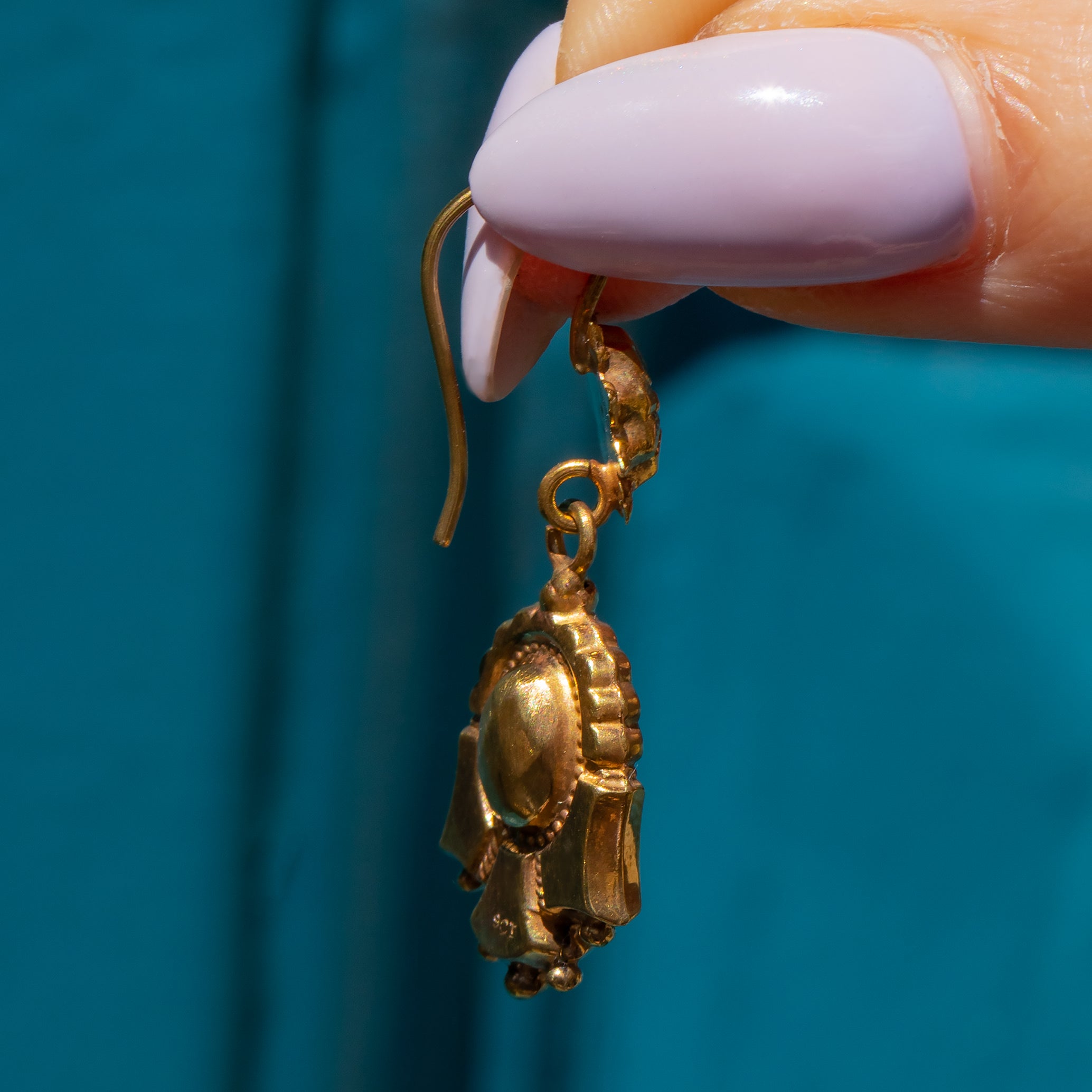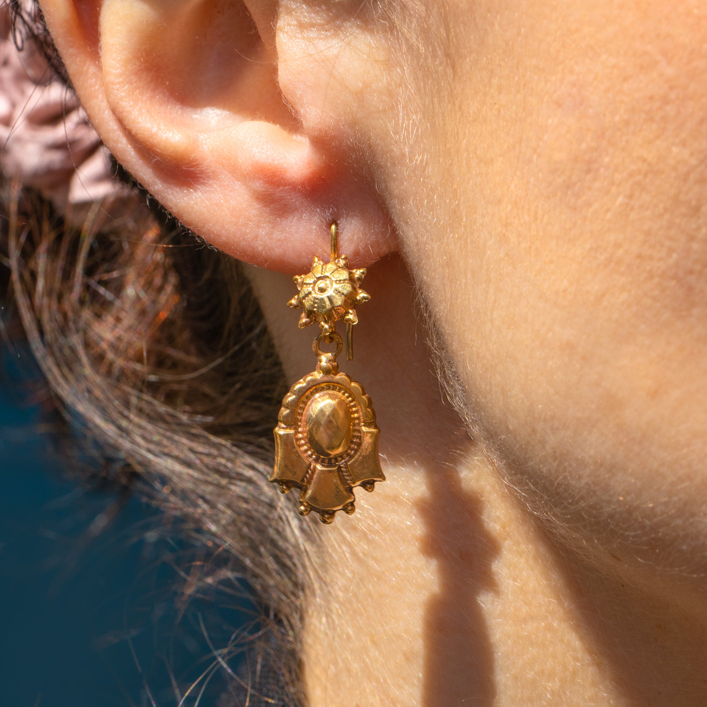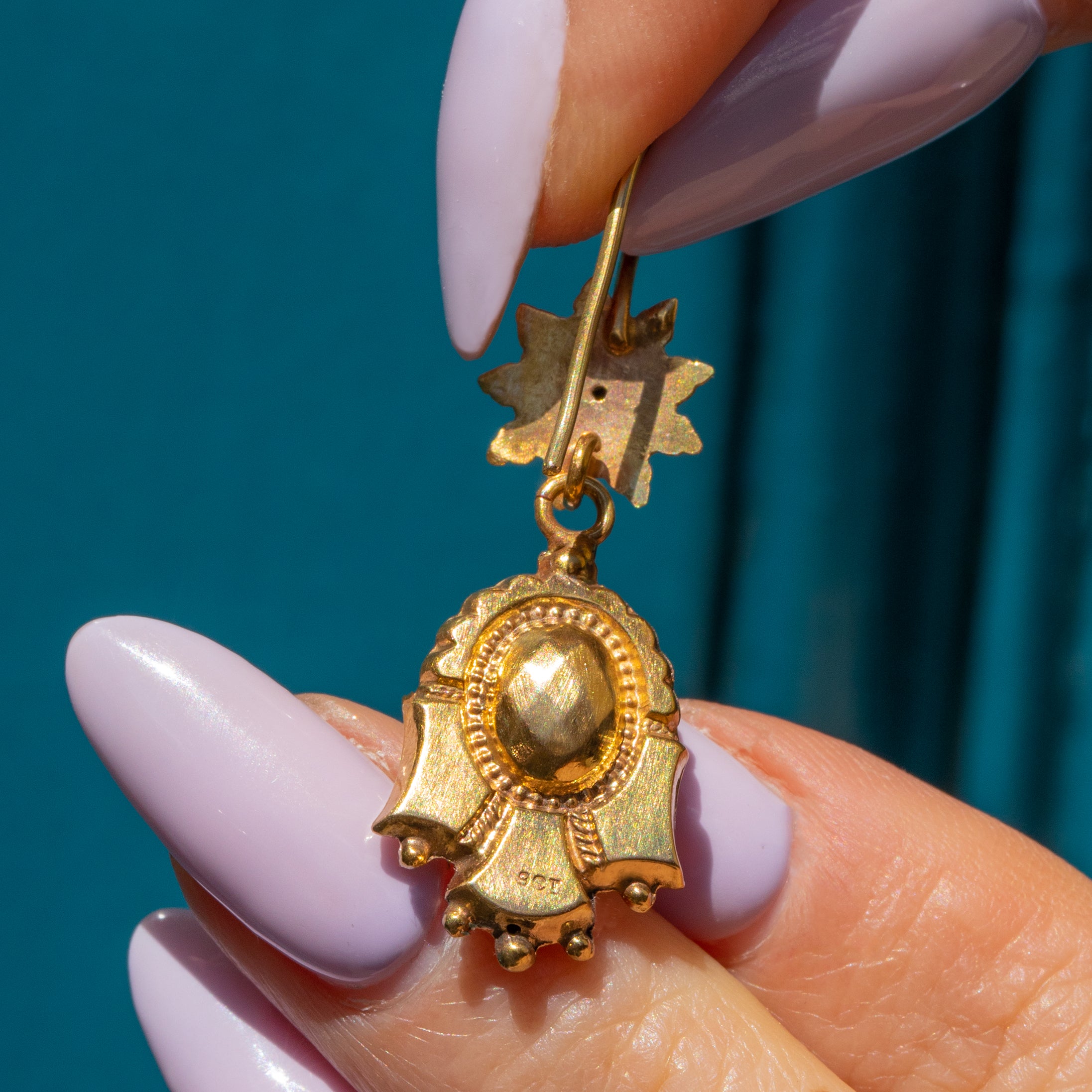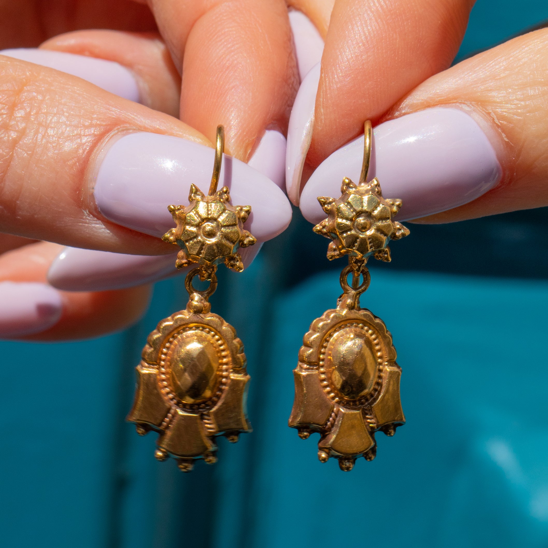 These Victorian 9ct Gold textured drop earrings are a true delight! With drops composed of brightly textured 9ct Gold attached to buttery 9ct Gold hooks, these antique earrings are a glossy treat to grace your lobes with.