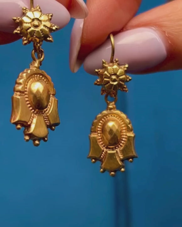 Victorian 9ct Gold Textured Drop Earrings