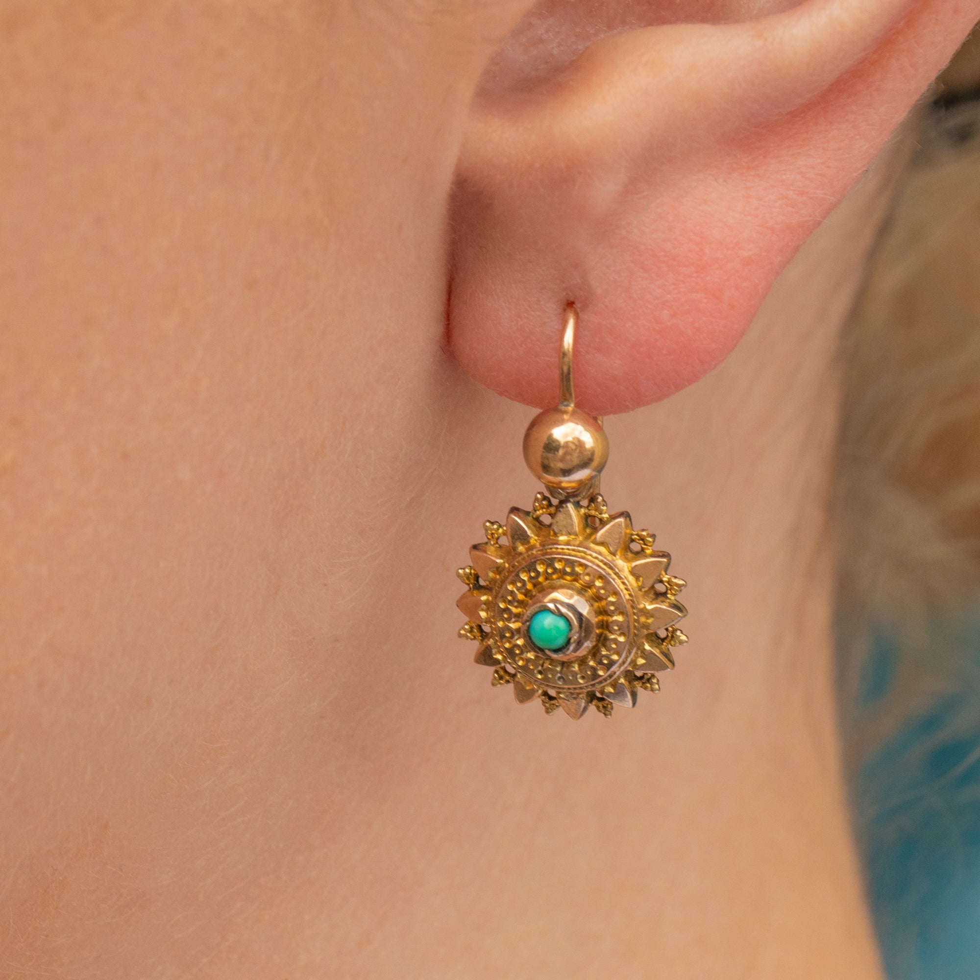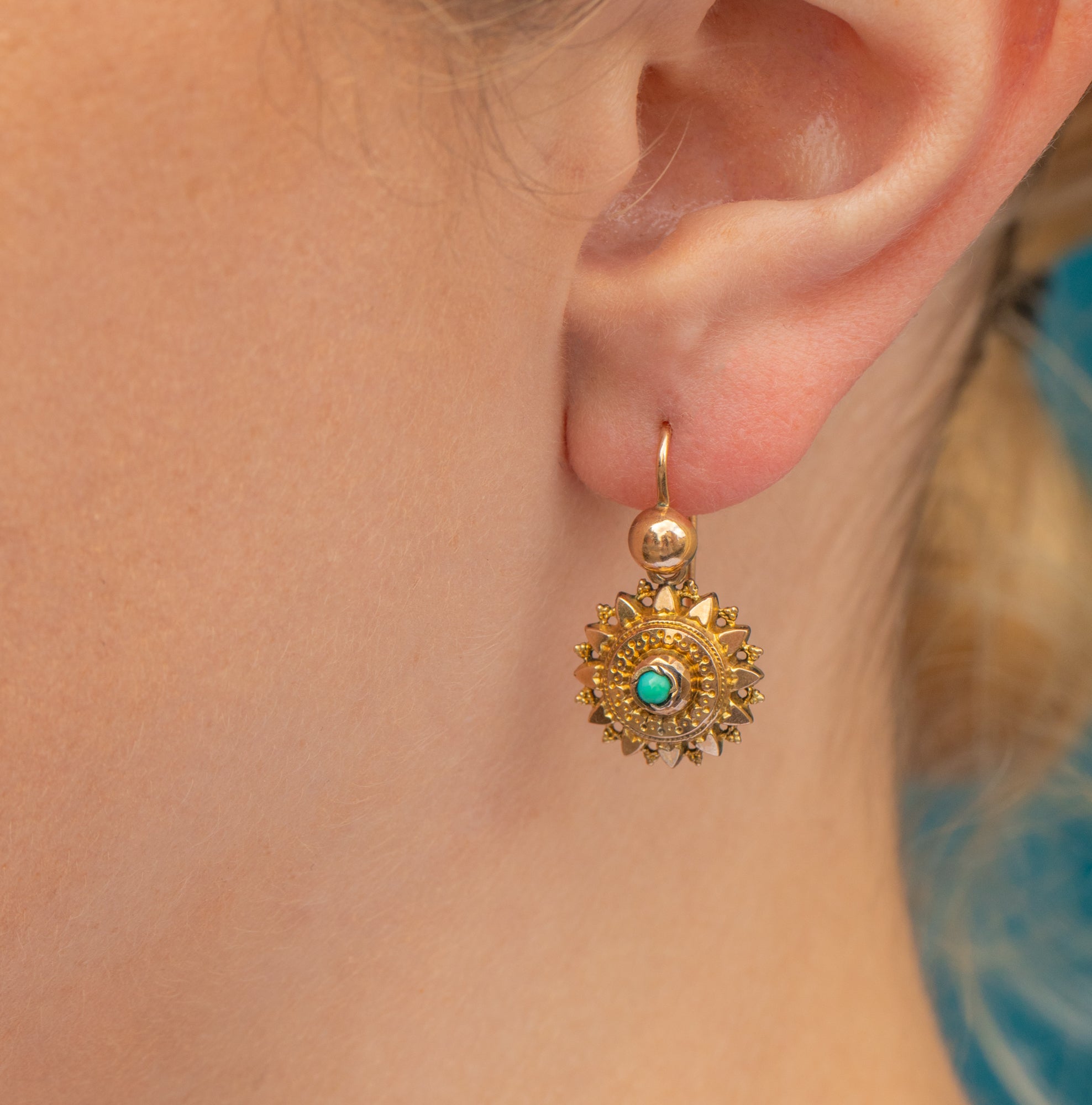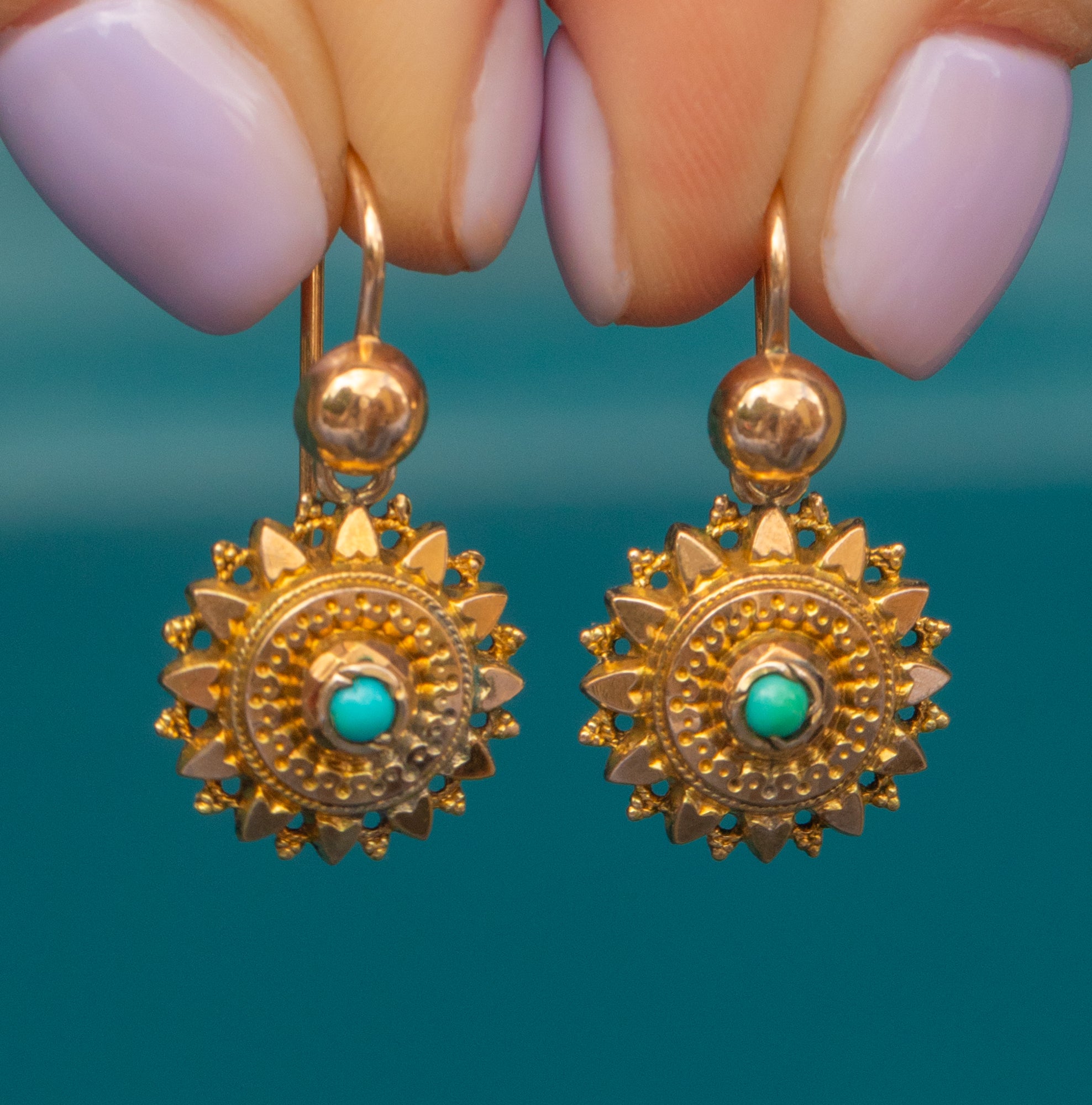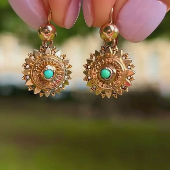 Immerse yourself in the beauty of the Victorian era with this pair of Victorian 9ct Gold Turquoise Star earrings!