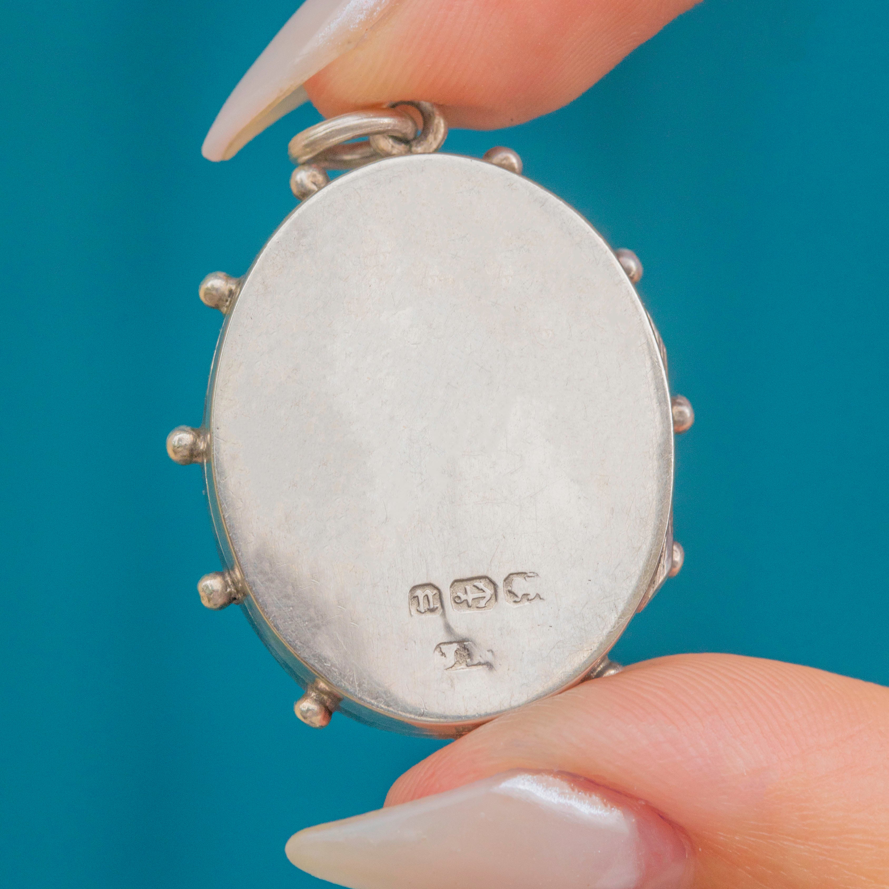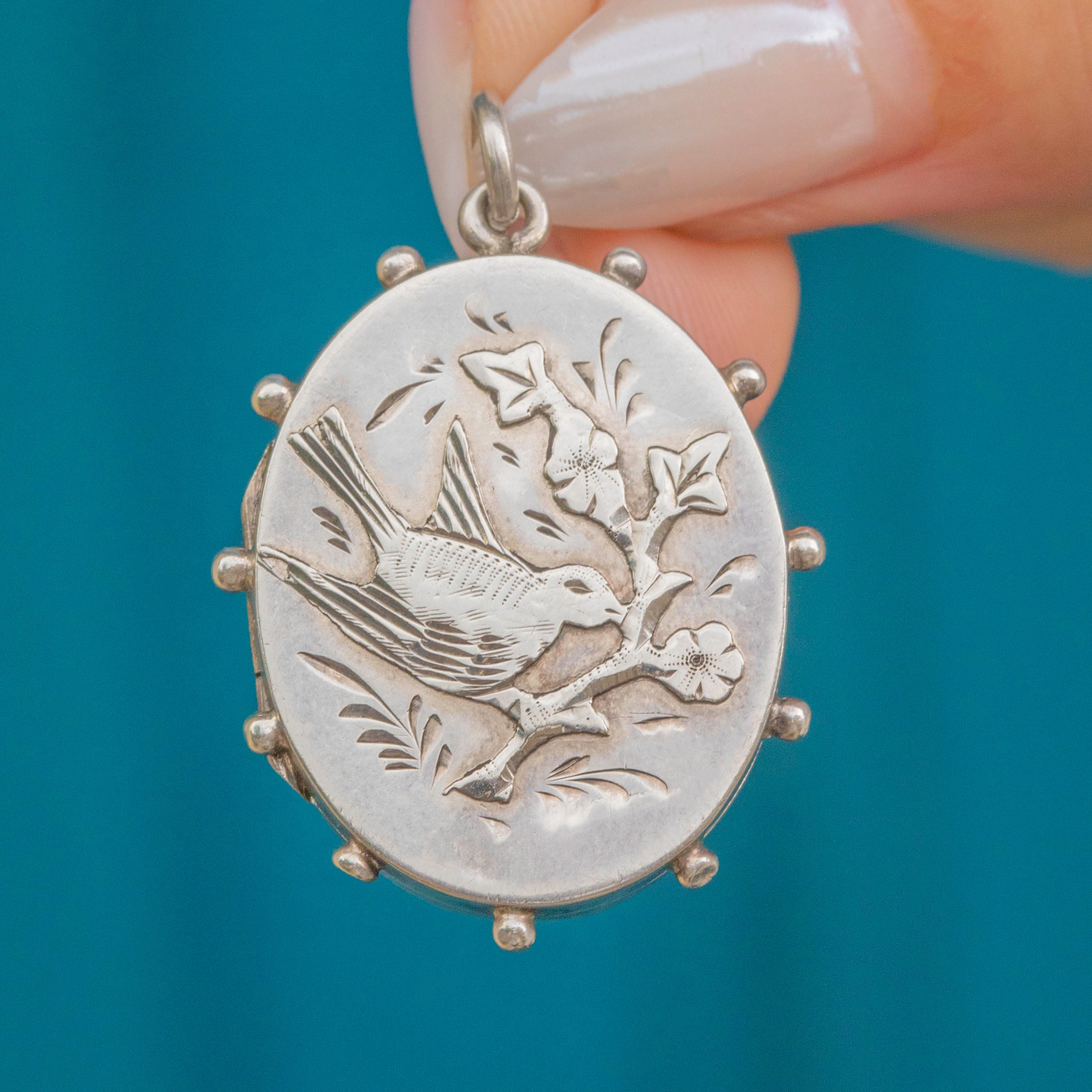 Victorian Aesthetic Silver Bird Locket with Beaded Edge, 1887