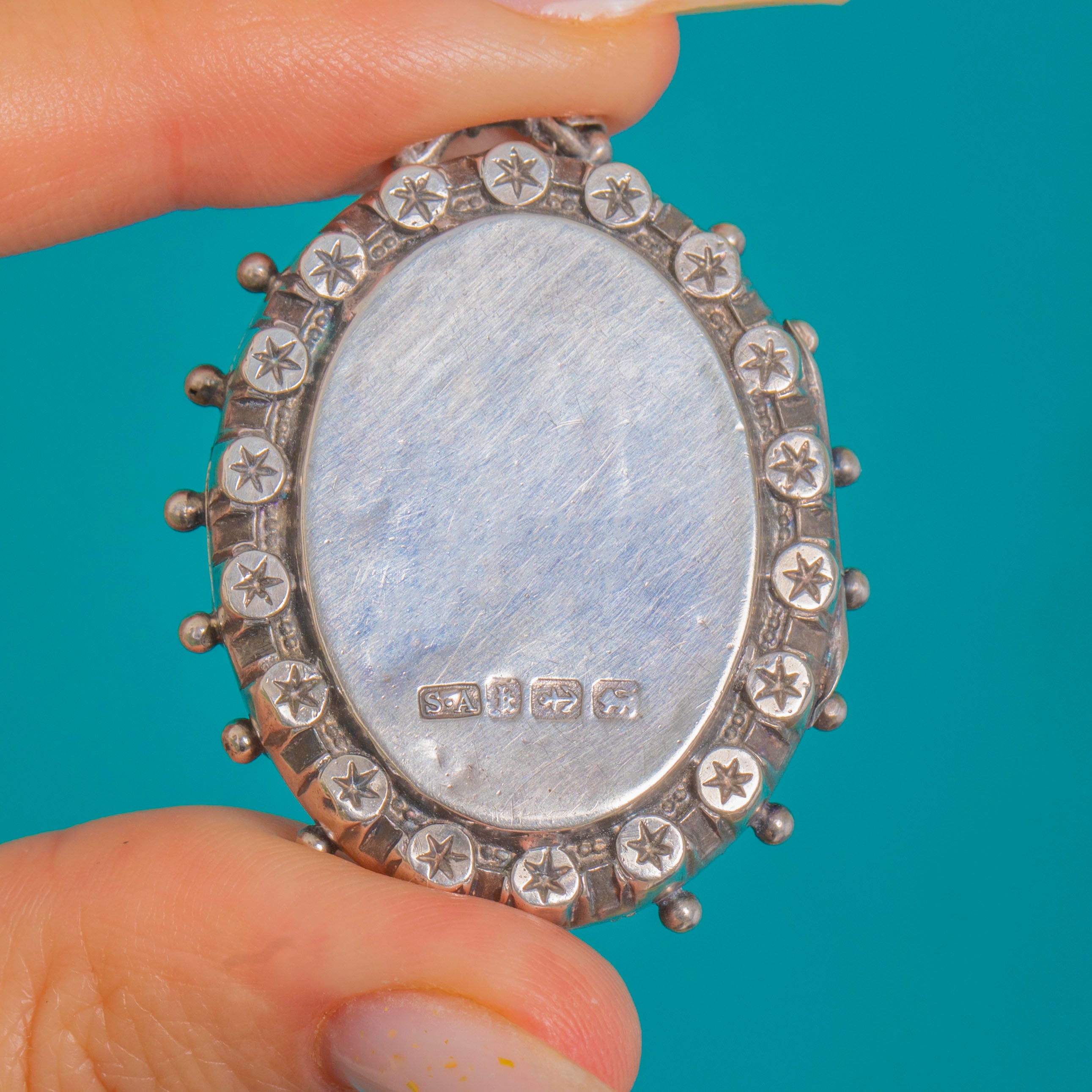 Victorian Aesthetic Silver Locket Stars & Beaded Edge, c.1884 Item added