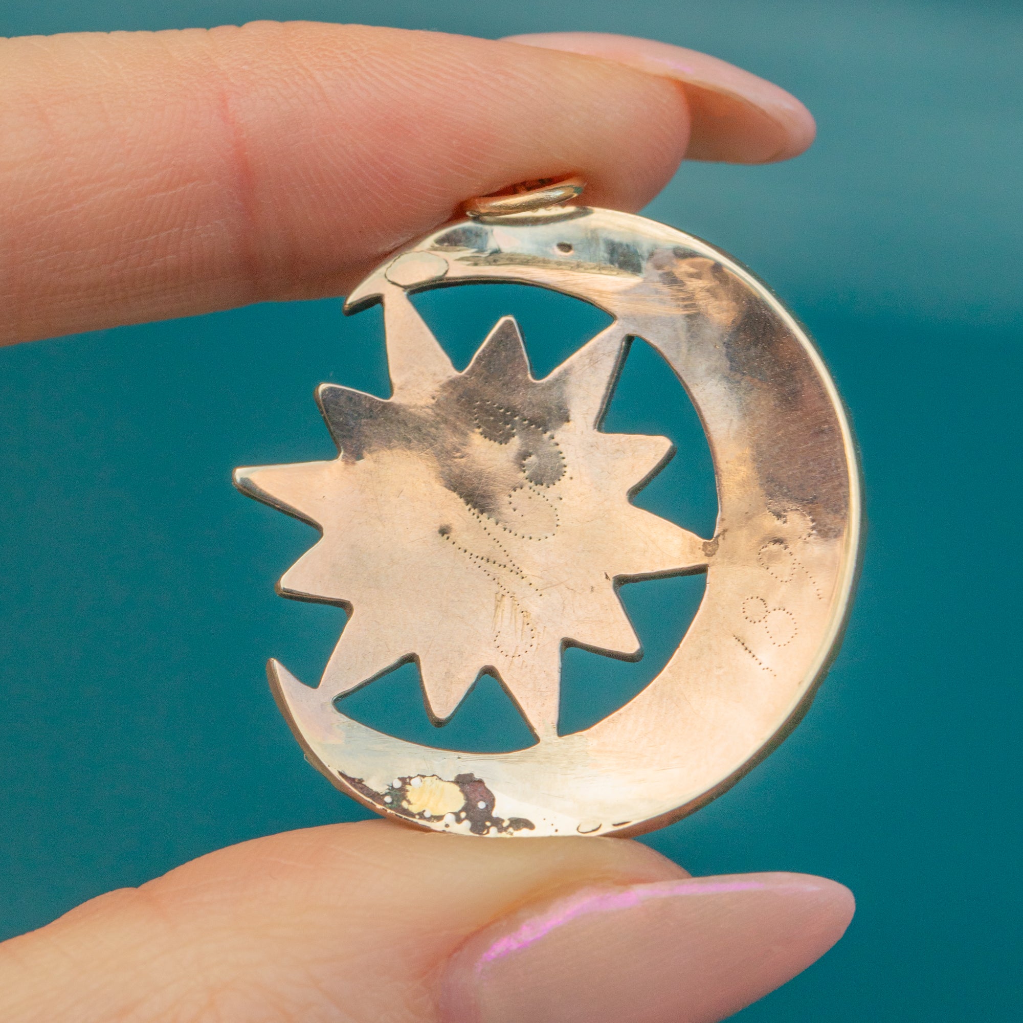 Victorian Bohemian Garnet Crescent Moon & Star Pendant