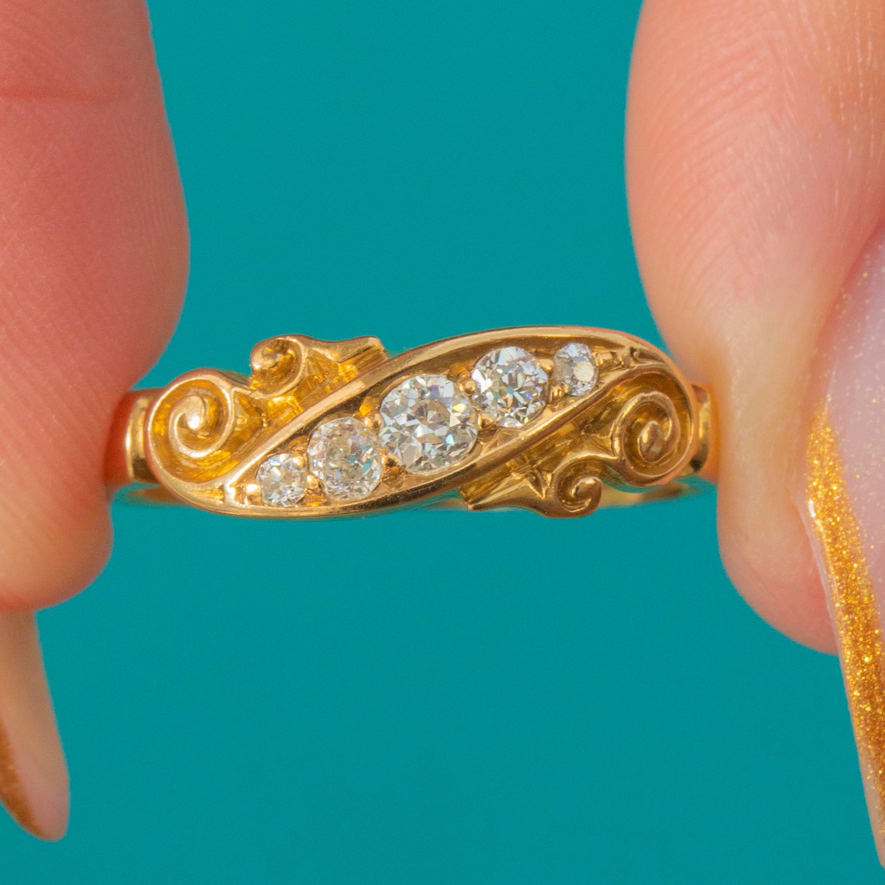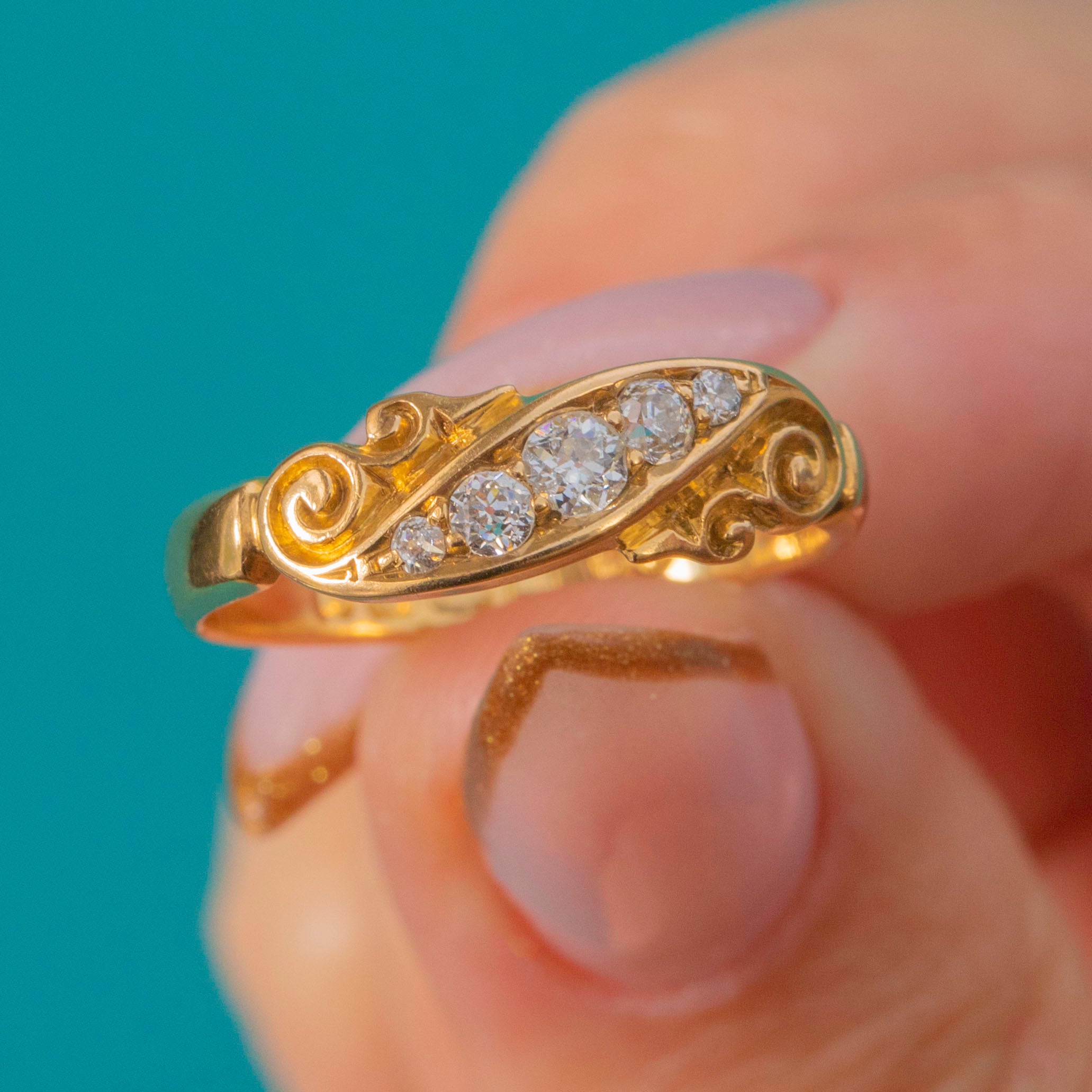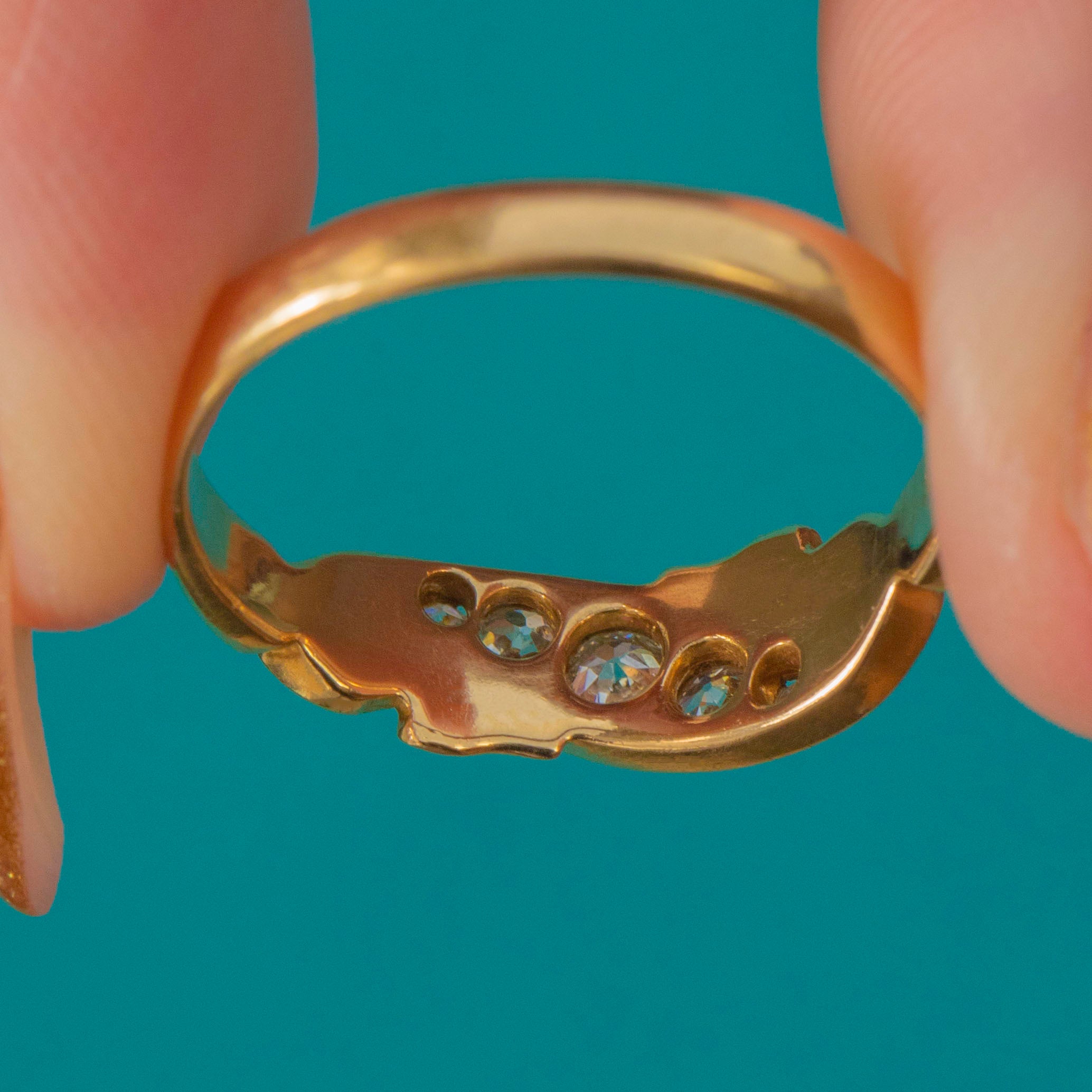 Bague victorienne cinq pierres en or 18 carats avec diamants taillés 0,25 ct vers 1900