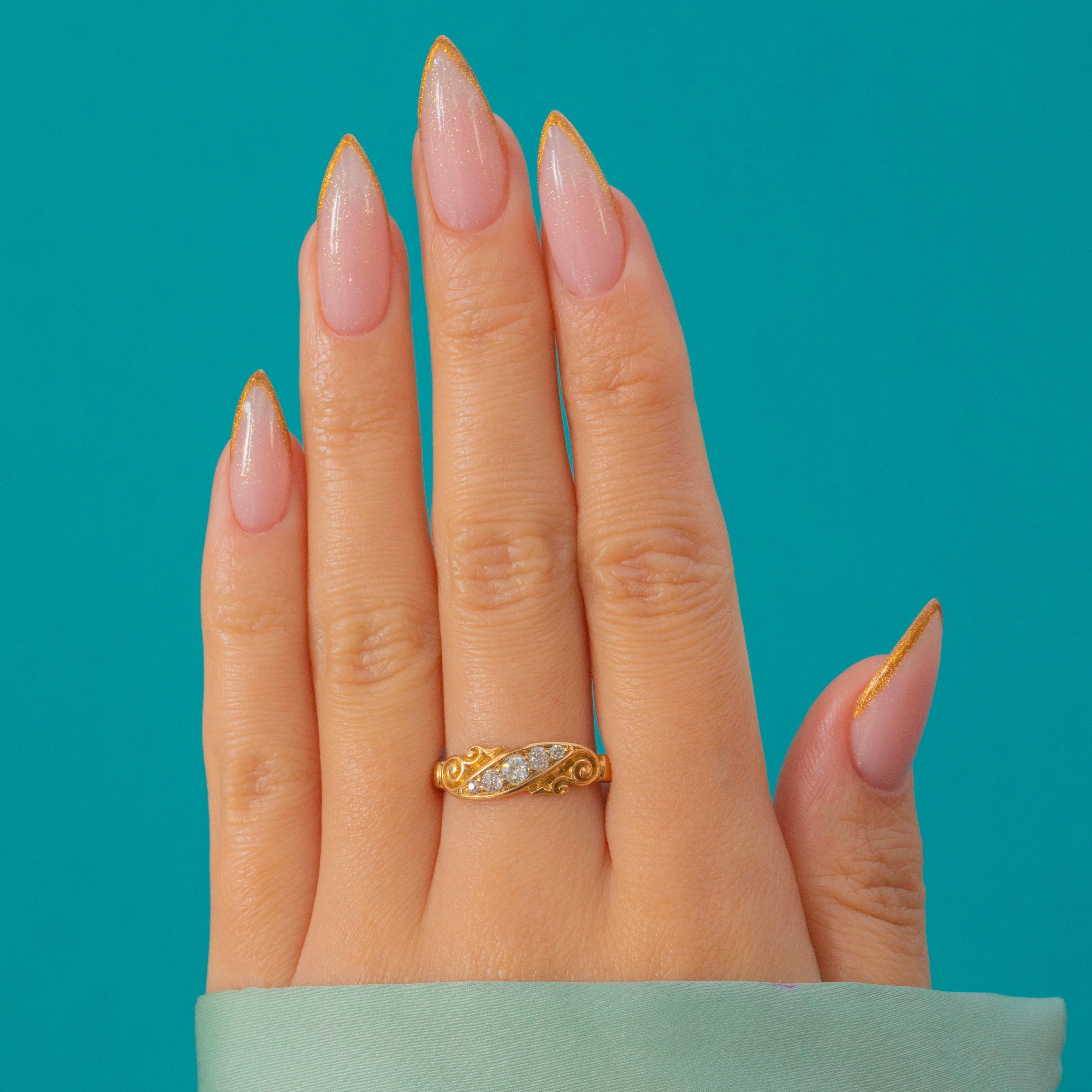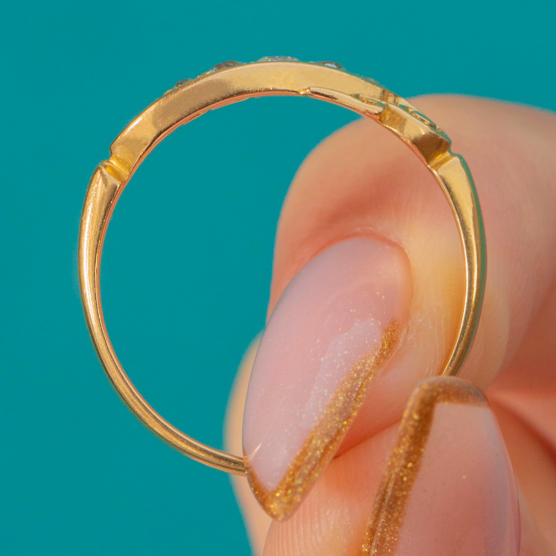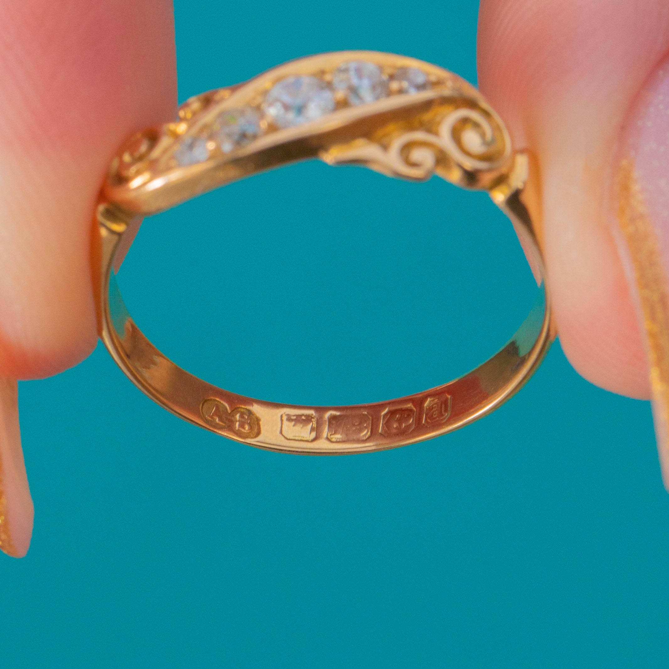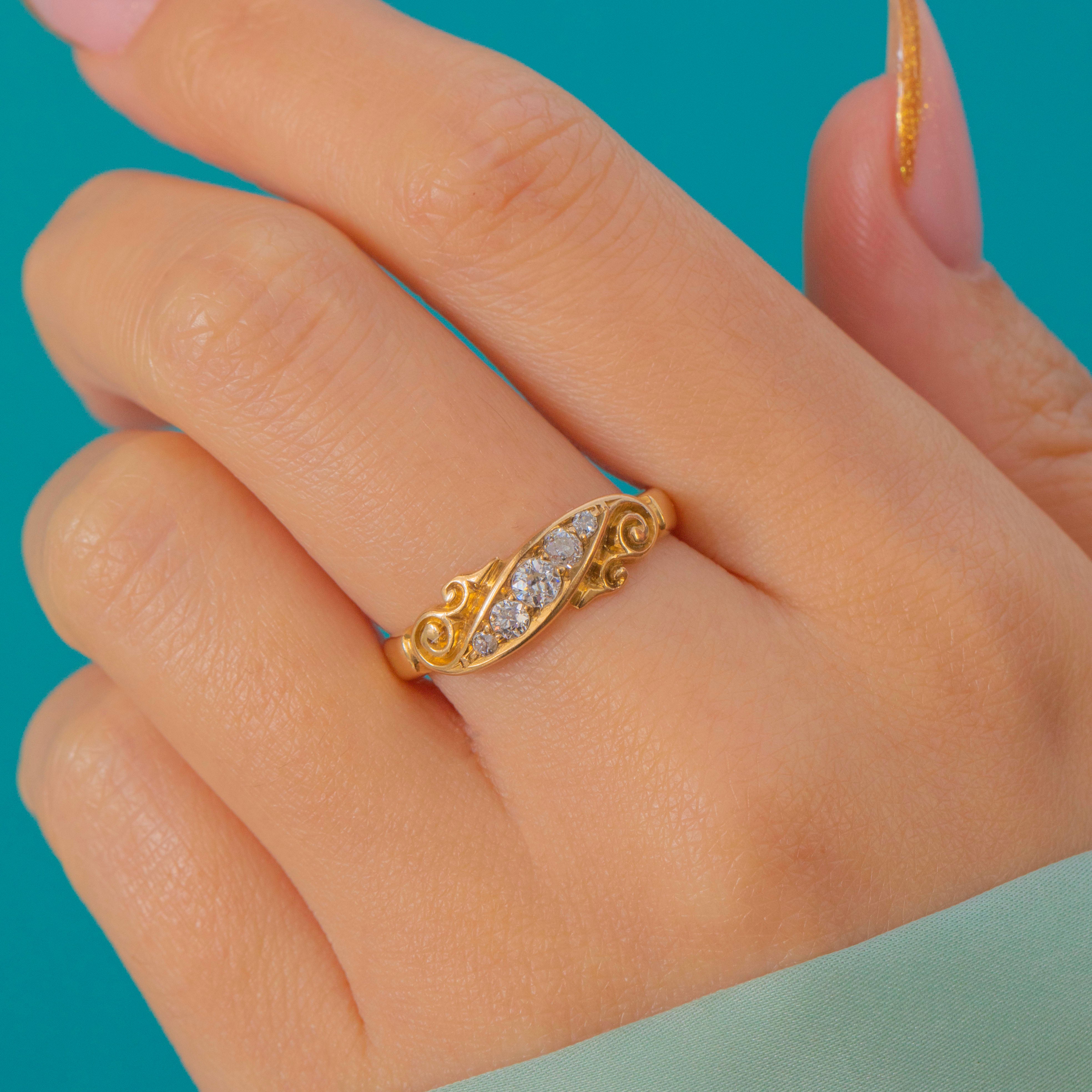 Bague victorienne cinq pierres en or 18 carats avec diamants taillés 0,25 ct vers 1900
