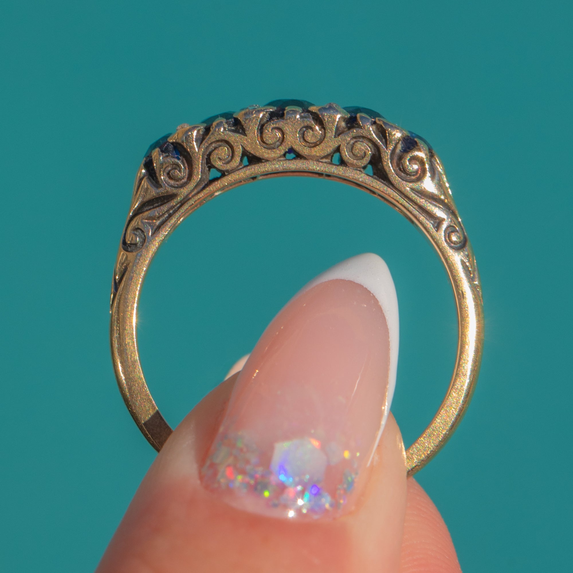 Victorian Carved 18ct Gold Sapphire Five Stone Ring