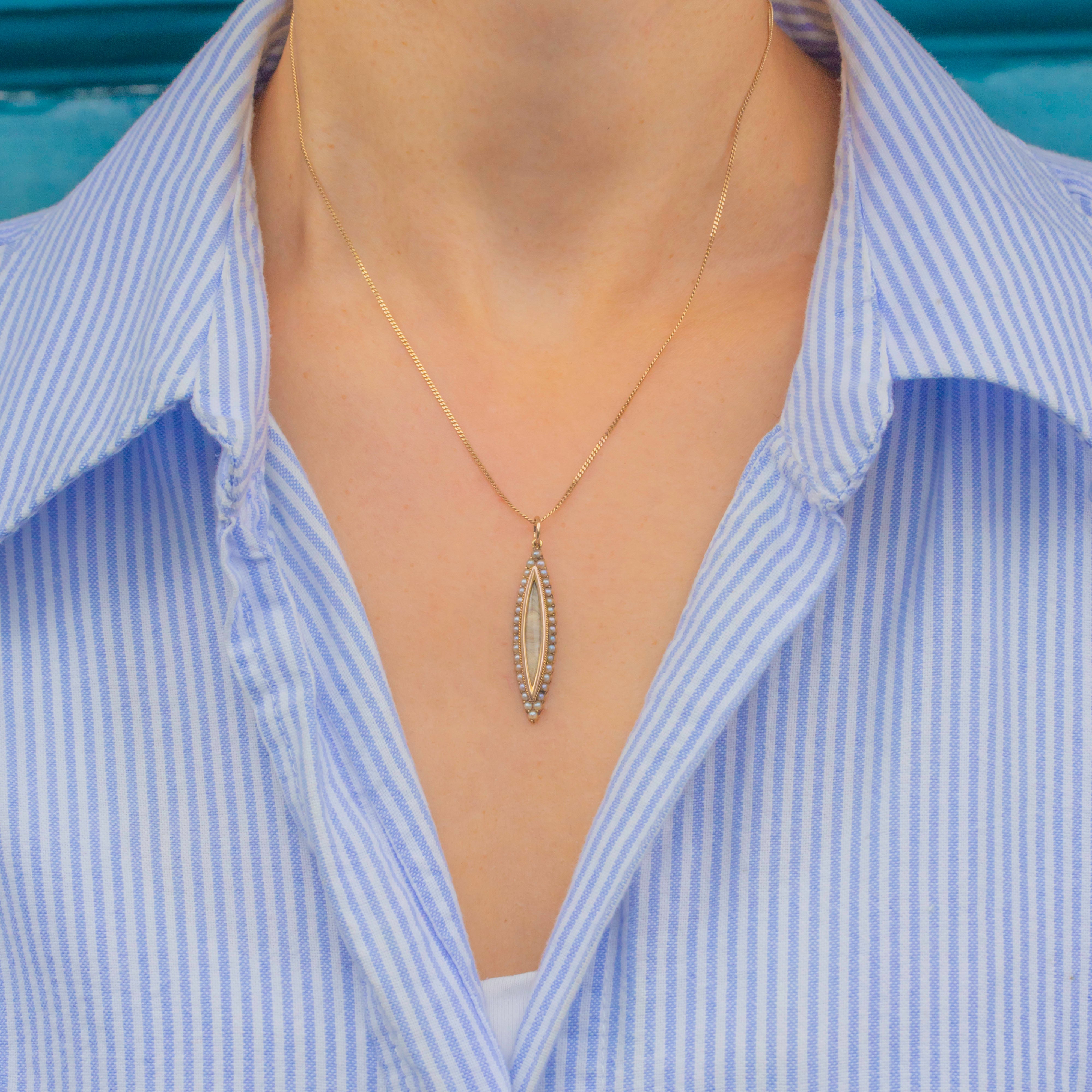 MEASUREMENTS: Pendant is 33mm long x 8.1mm wide (excluding jump ring).