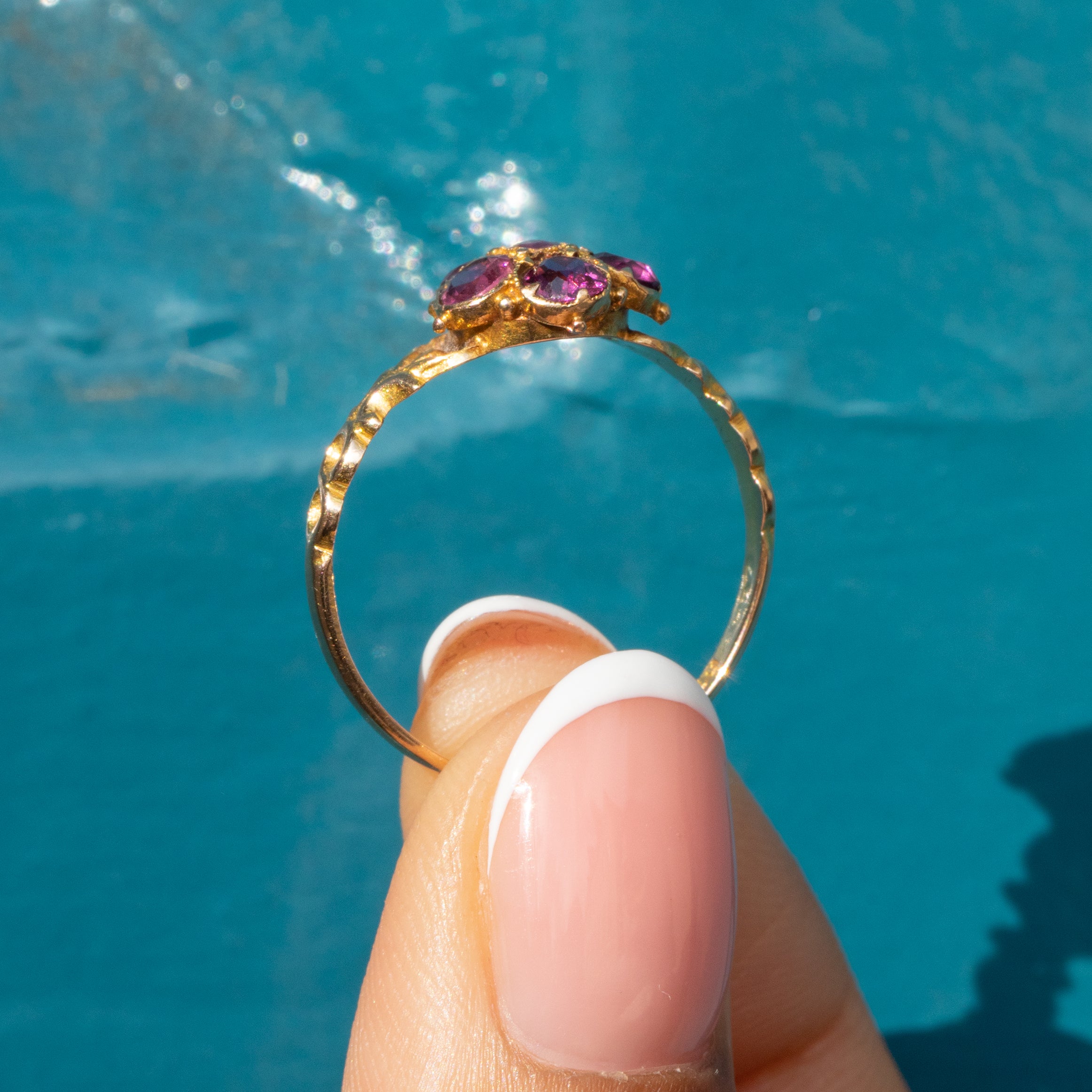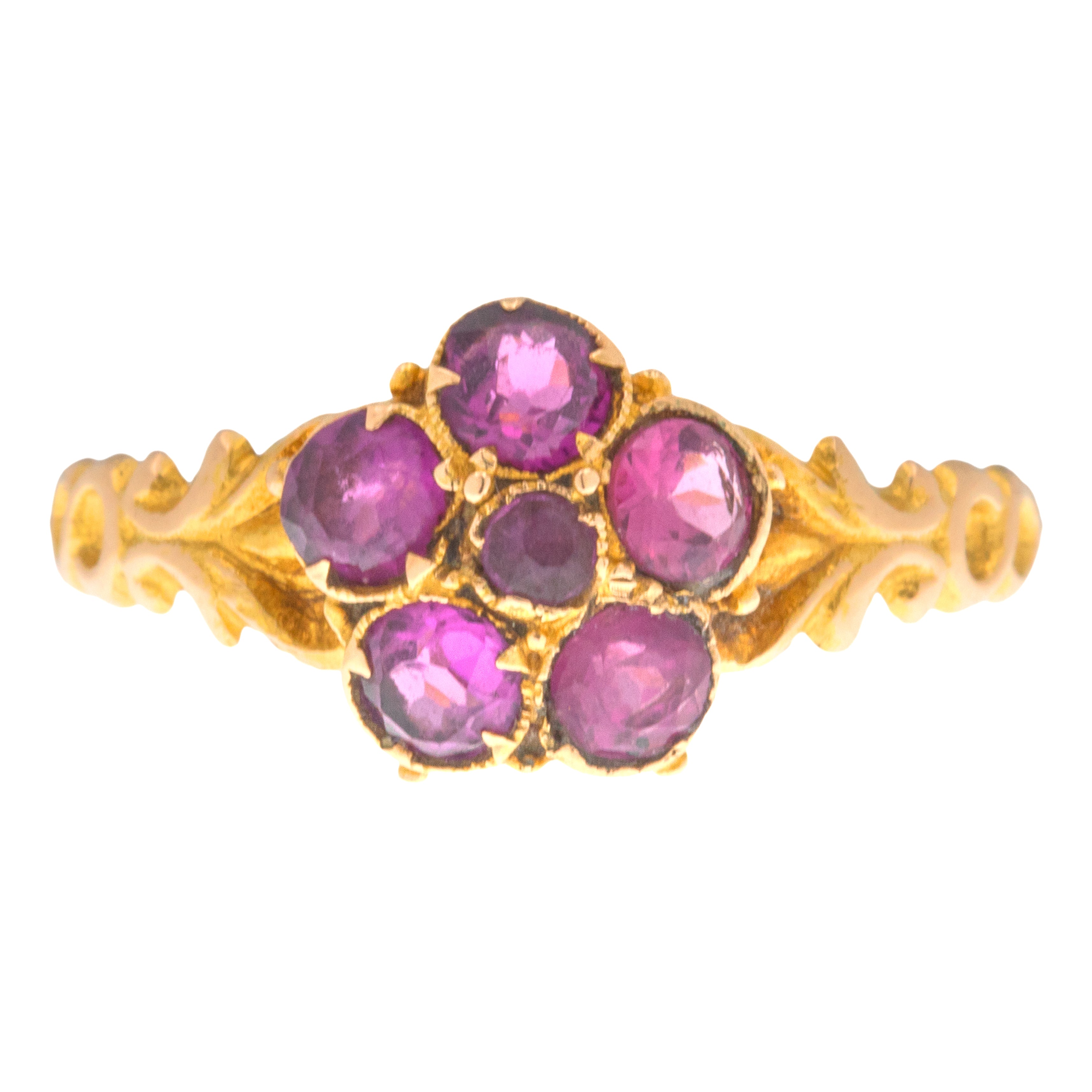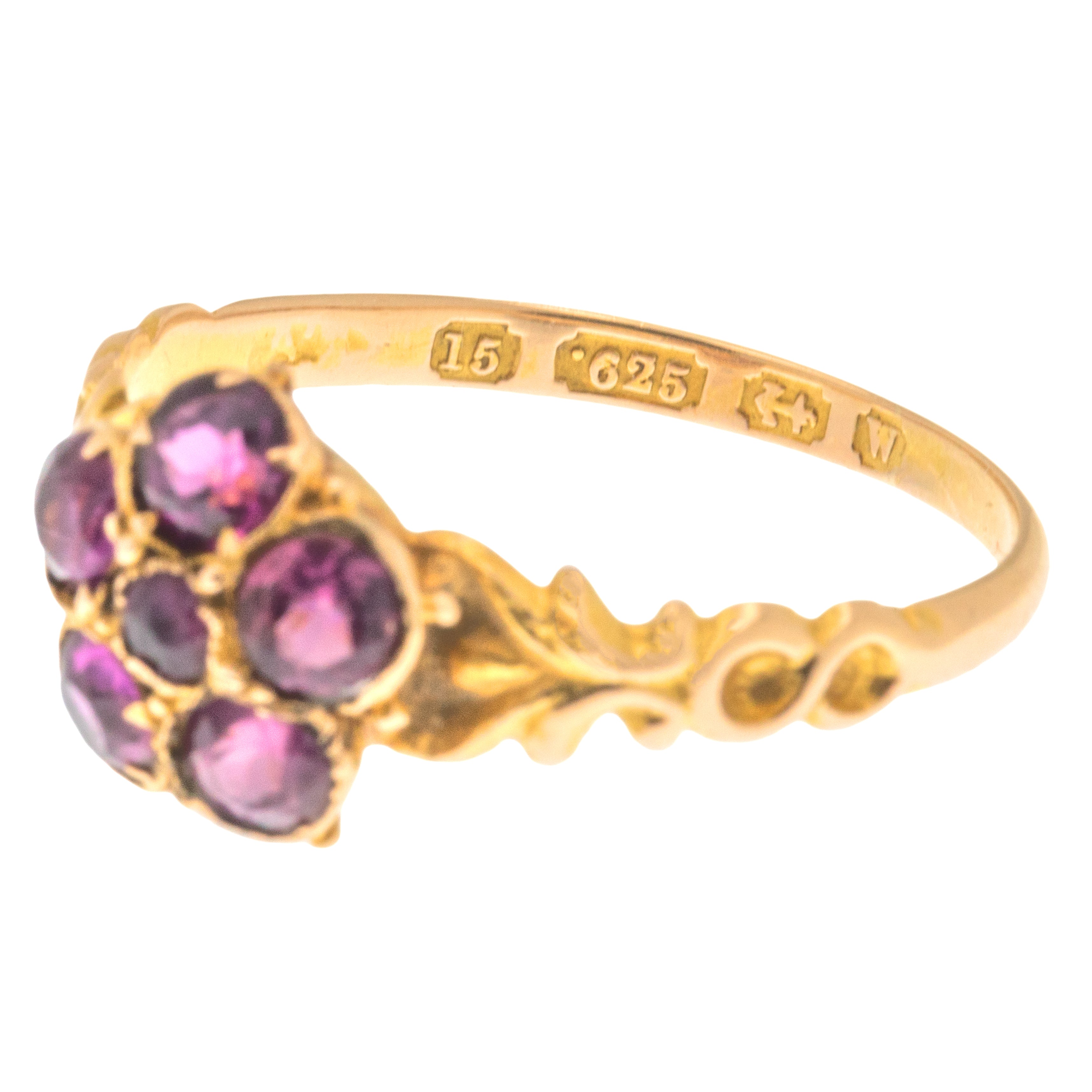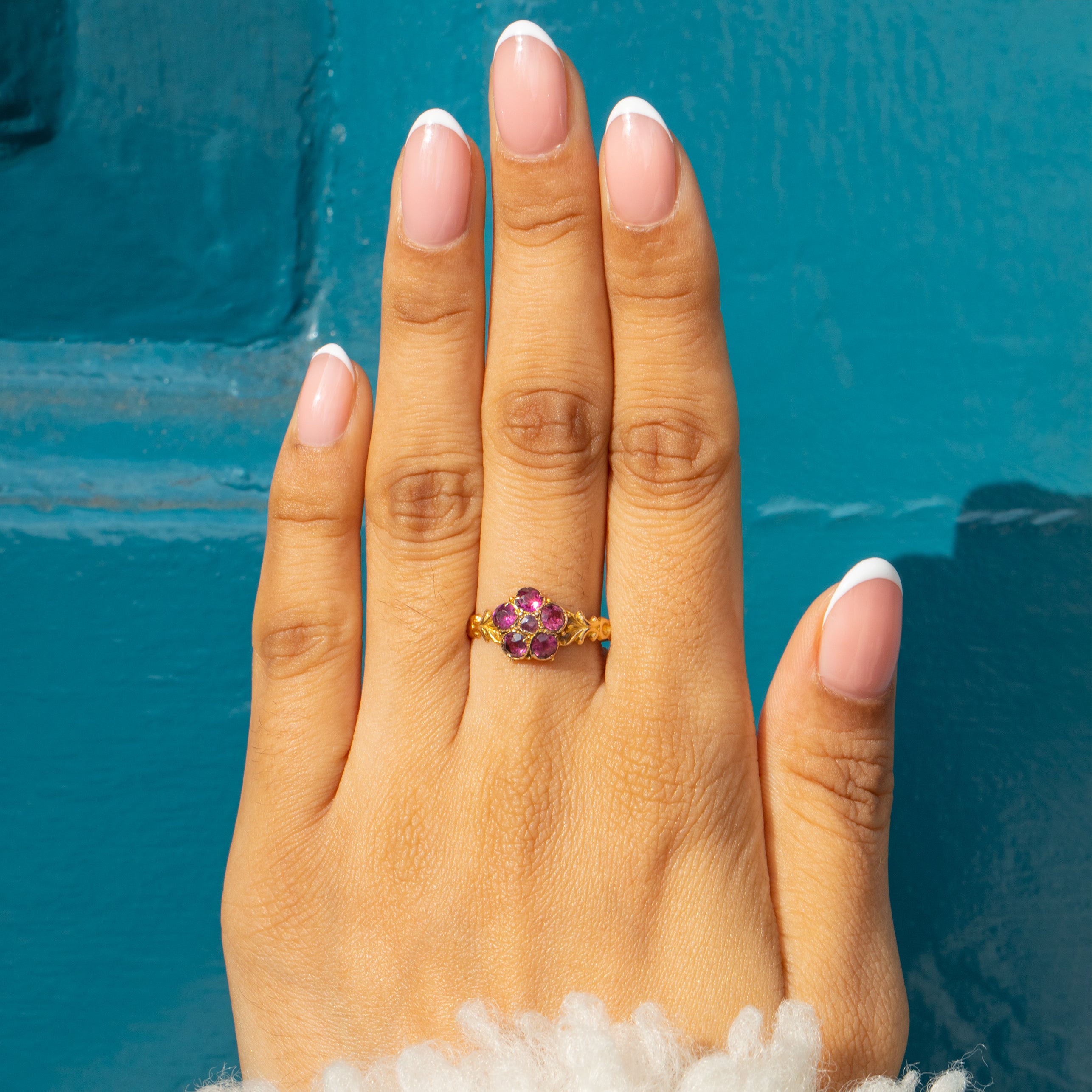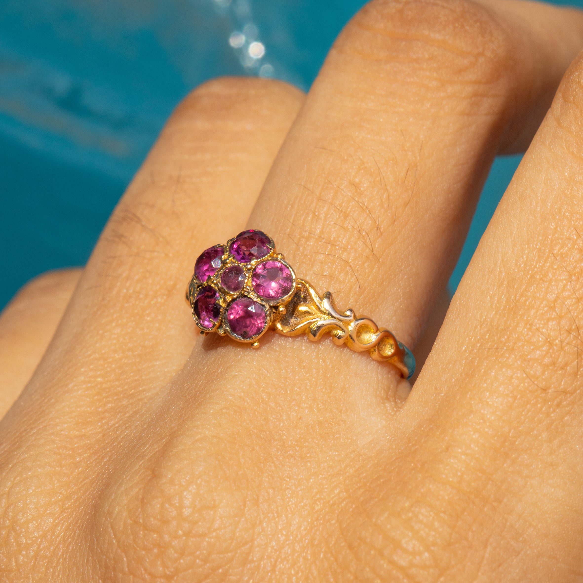Bague en grappe de fleurs en grenat en or 15 carats victorien, 5,09 ct.