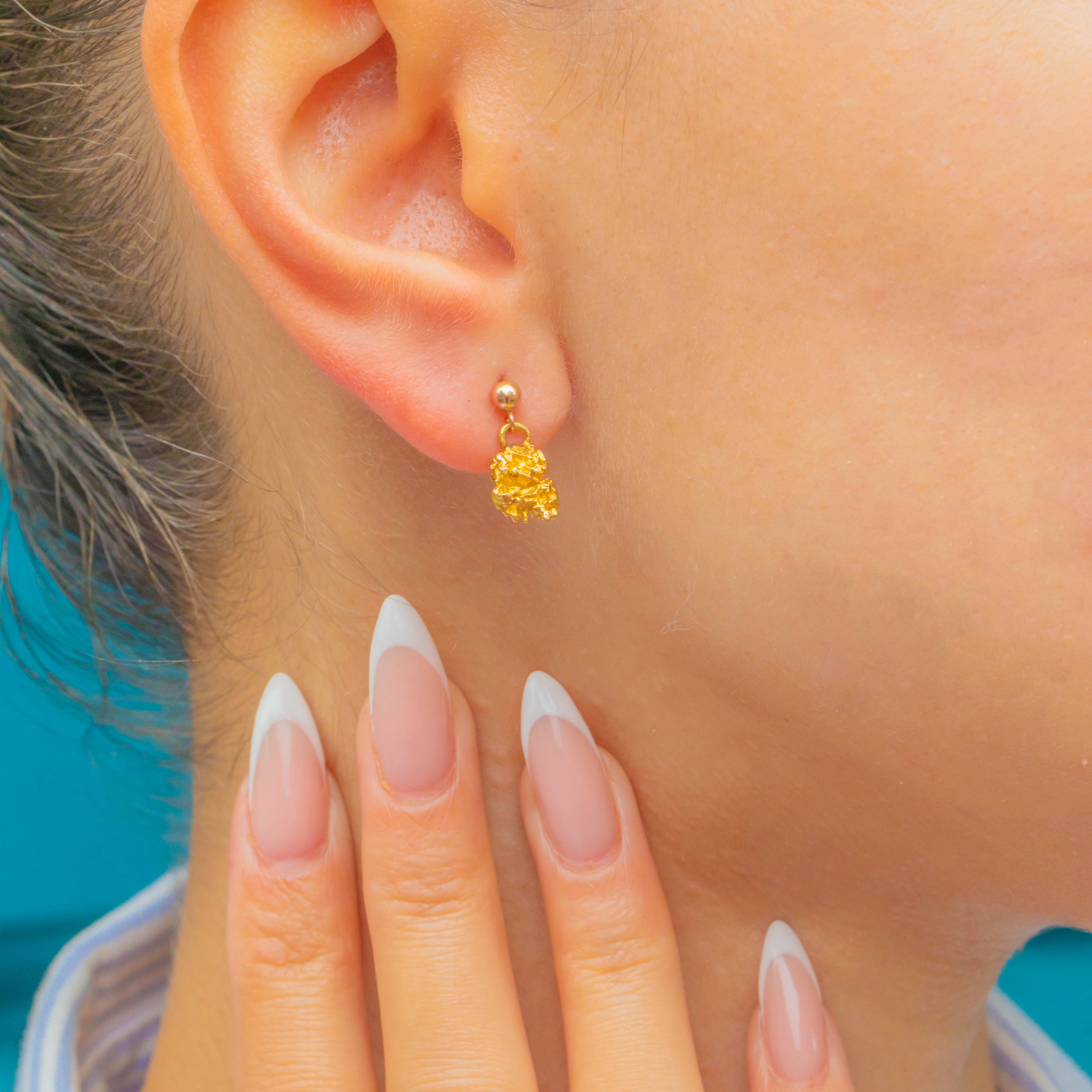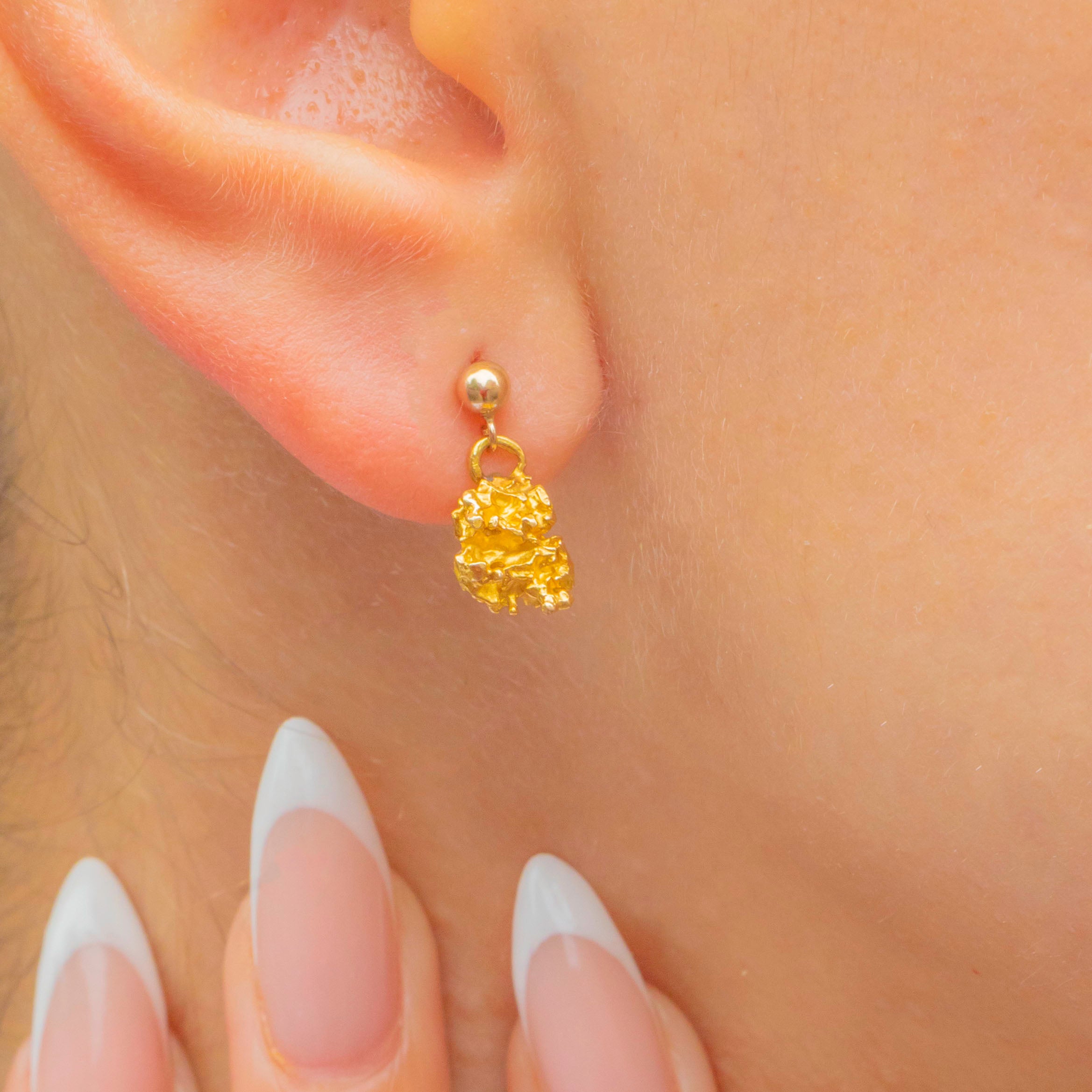 EXCELLENT: The Gold nuggets are in superb condition with no damage or wear to the surfaces. The settings and studs are secure and well-made, with minimal signs of age. These earrings have clearly been well cared for and are ready to wear and enjoy.
