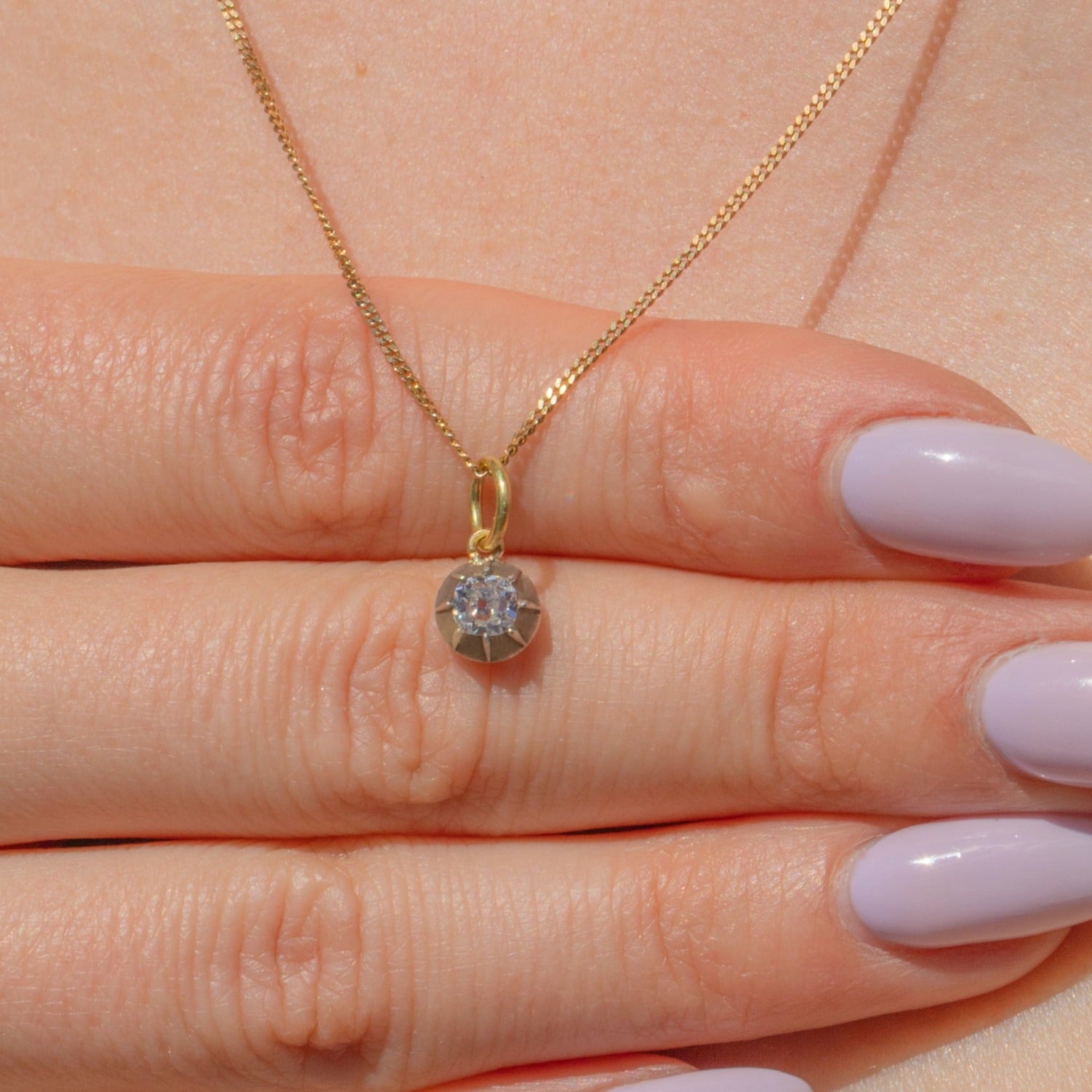 EXCELLENT. This Victorian Old-mine Cut Diamond charm is in excellent condition, with no chips or fleabites to note. She is securely held within her collet setting and is guaranteed to last a lifetime. The Diamond is radiant as ever, which is incredible considering her age. Need we say more?!