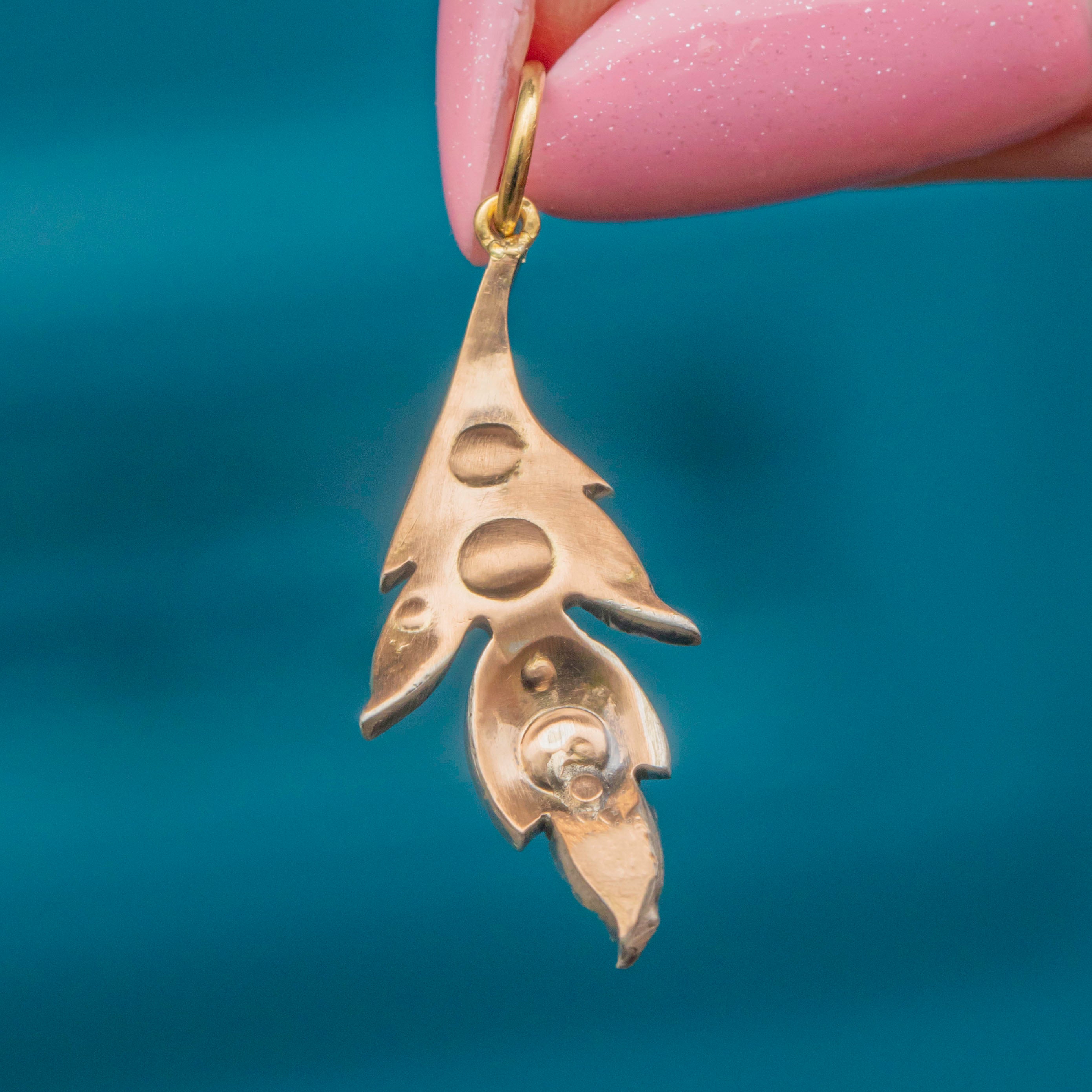 Although dainty, this leaf is packed with 0.60ct of rose-cut Diamonds. We are in awe of how they dance and glint beneath the light, sure to dazzle anyone lucky enough to lay eyes on this pretty charm. Symbolising growth, this antique leaf pendant would make a wonderful gift choice!
