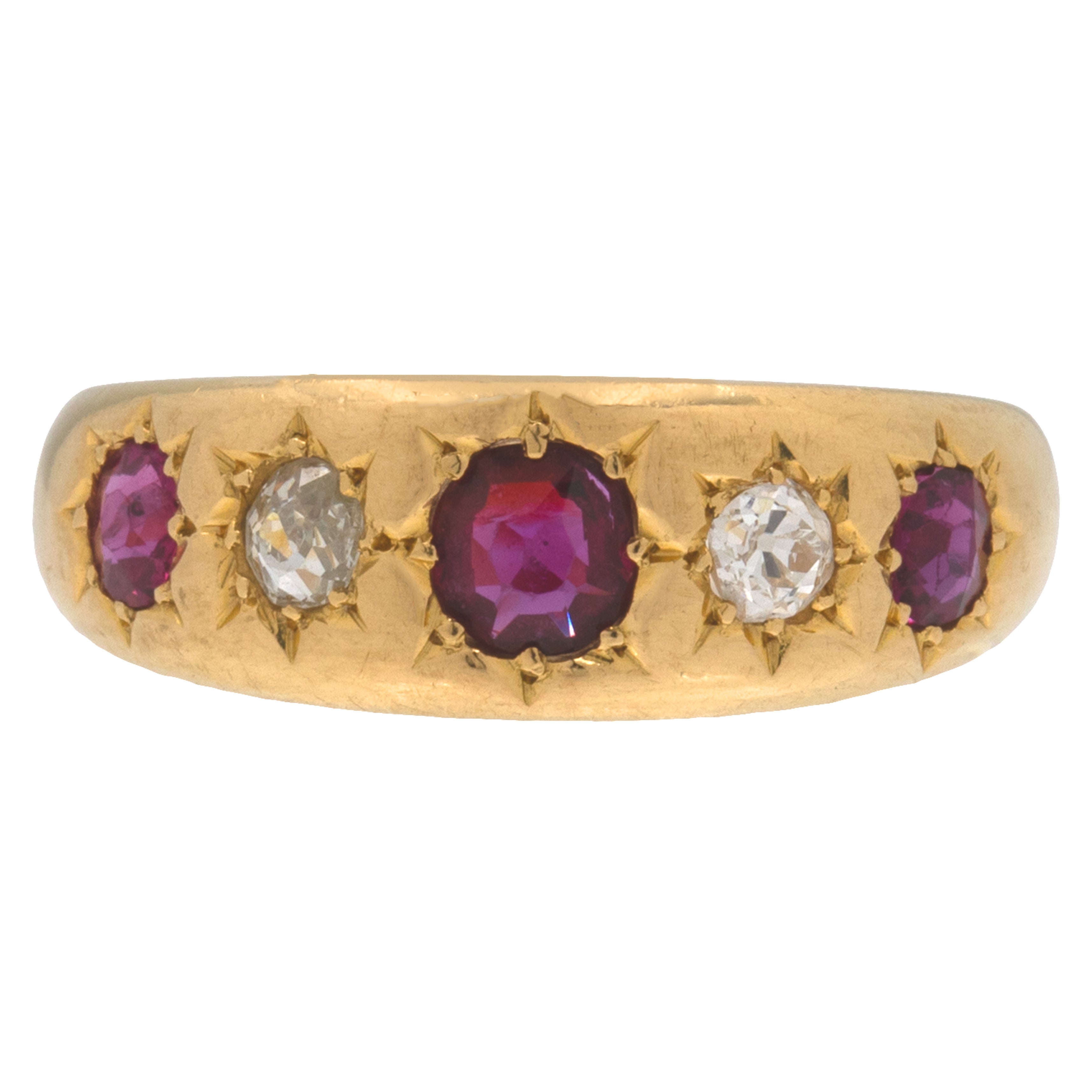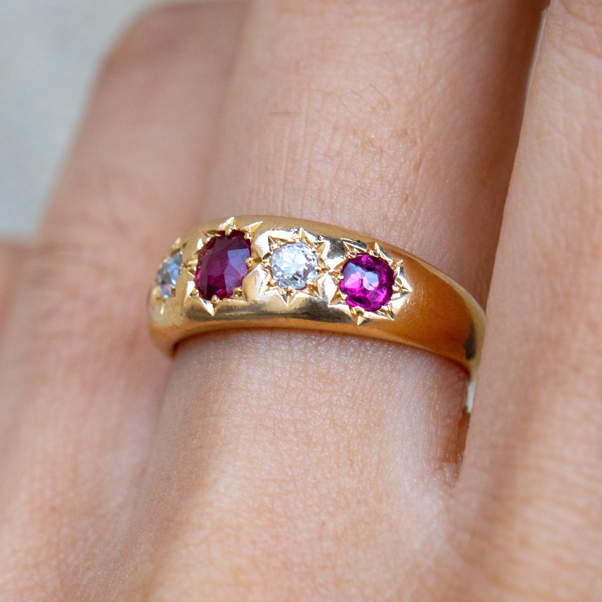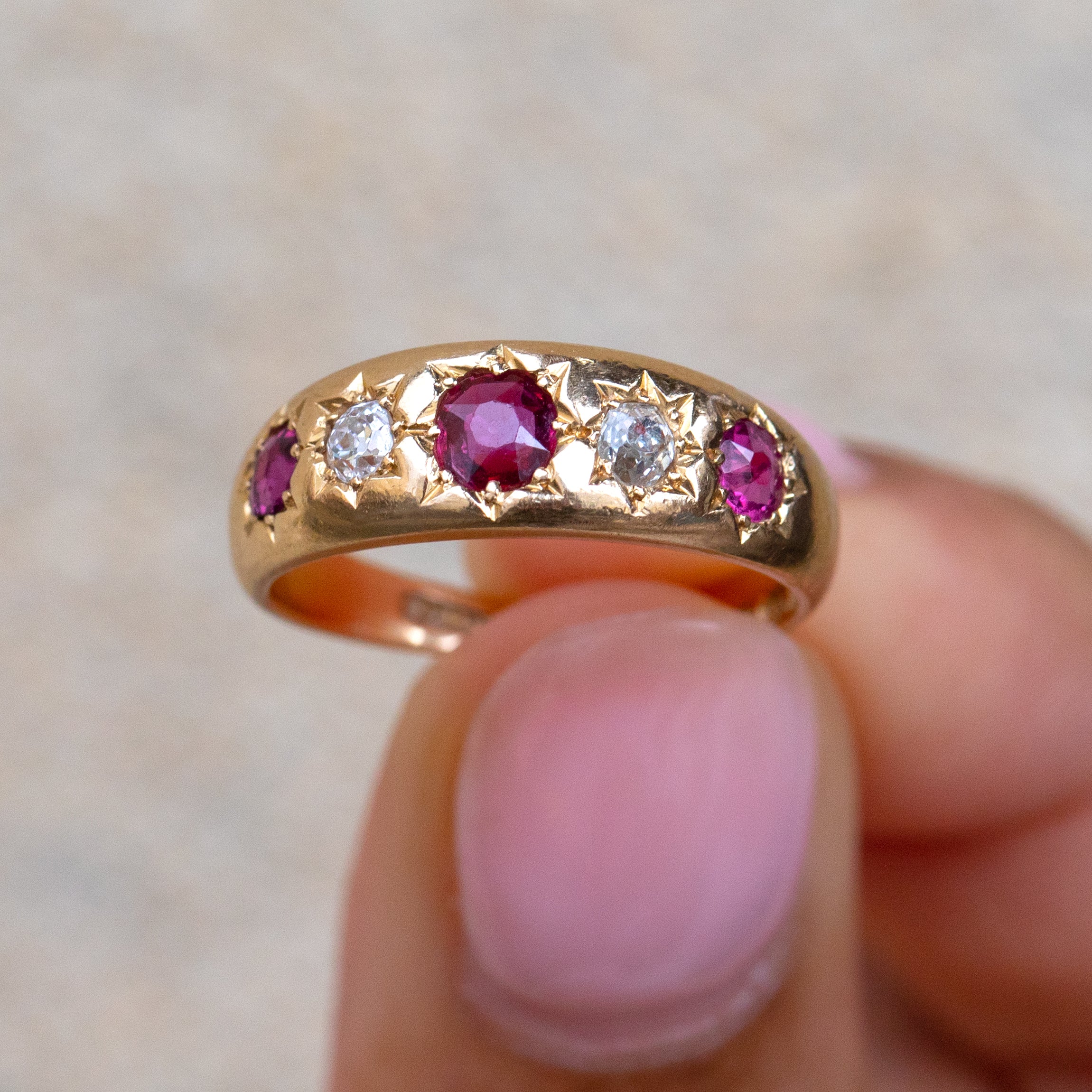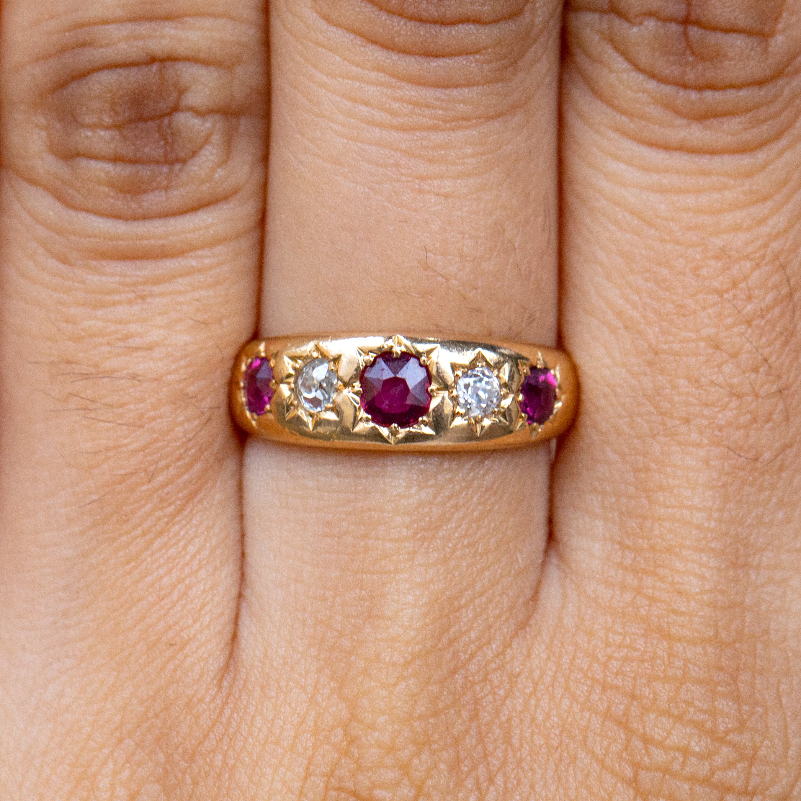 Bague gitane victorienne cinq pierres en or 18 carats avec rubis et diamants, rubis 0,38 ct
