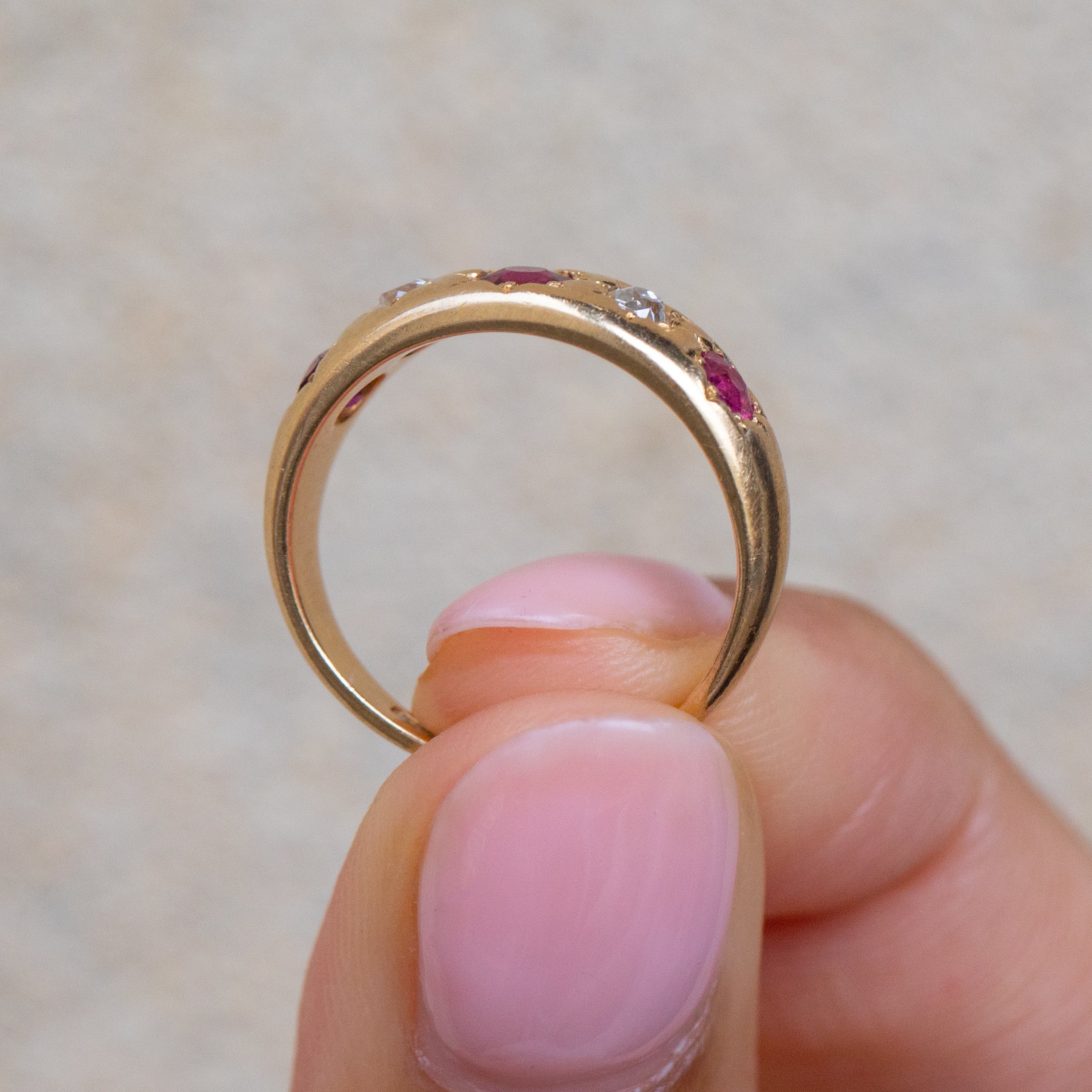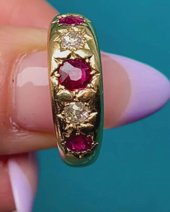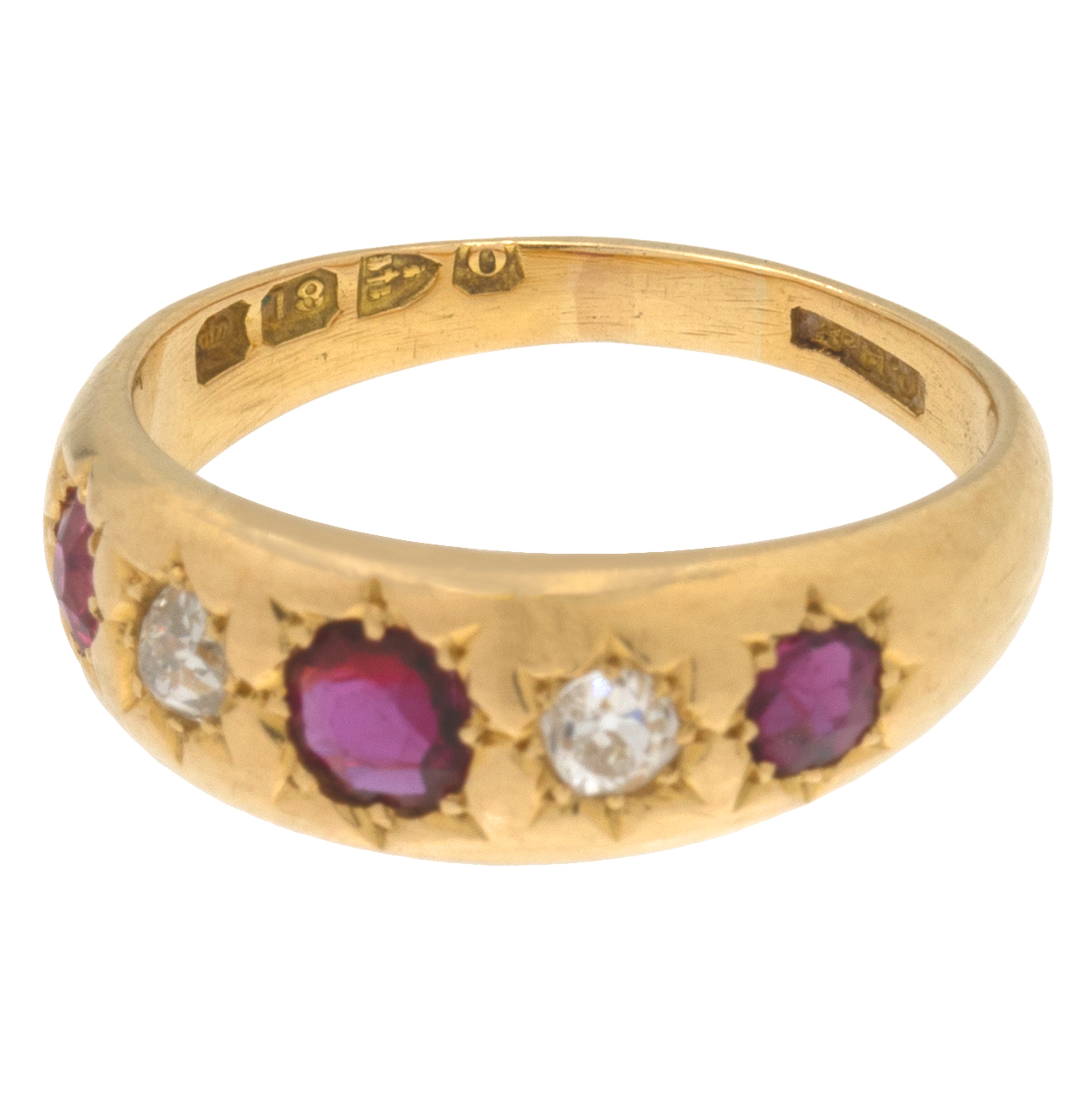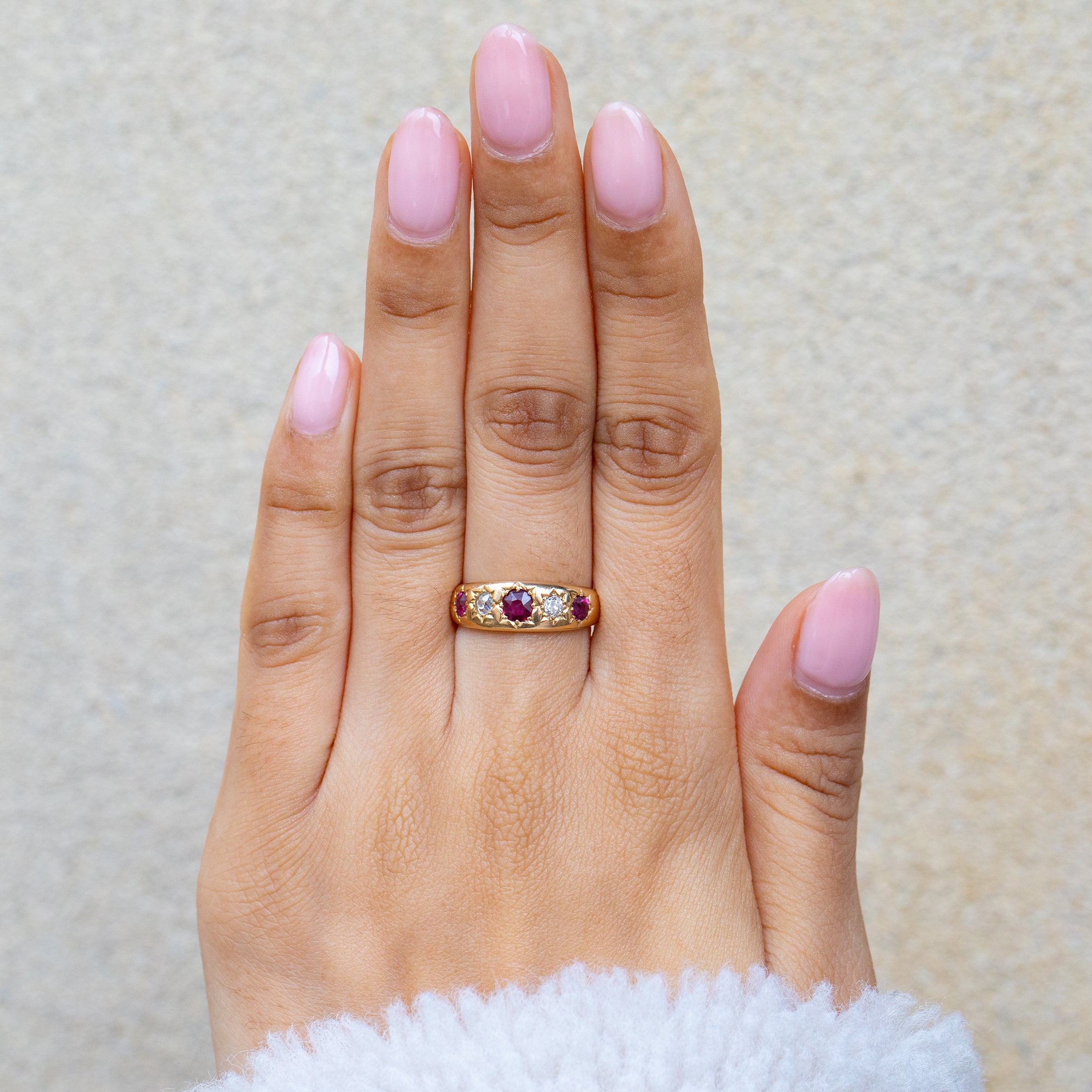 Bague gitane victorienne cinq pierres en or 18 carats avec rubis et diamants, rubis 0,38 ct
