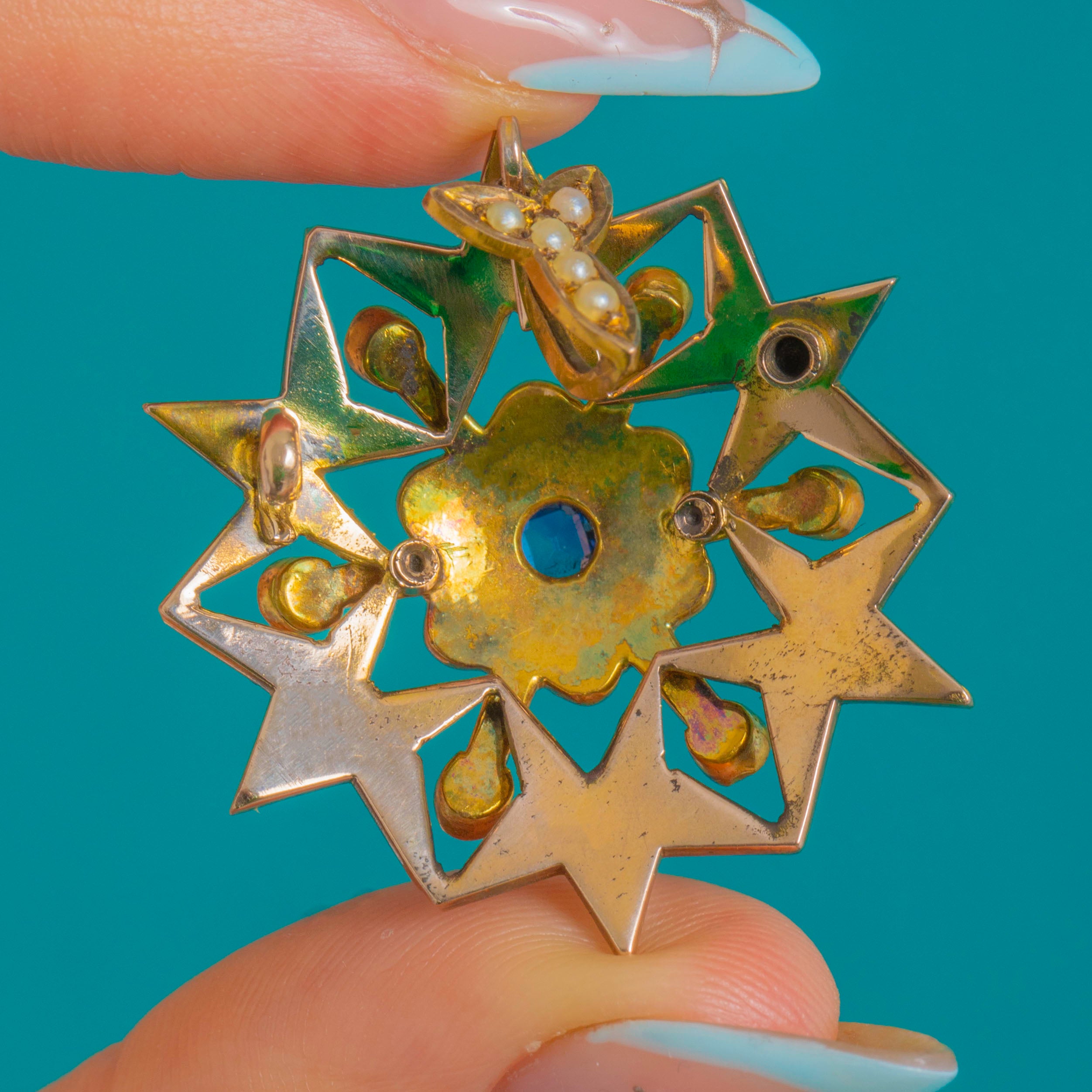 Victorian Sapphire Pearl Starburst Pendant Item added