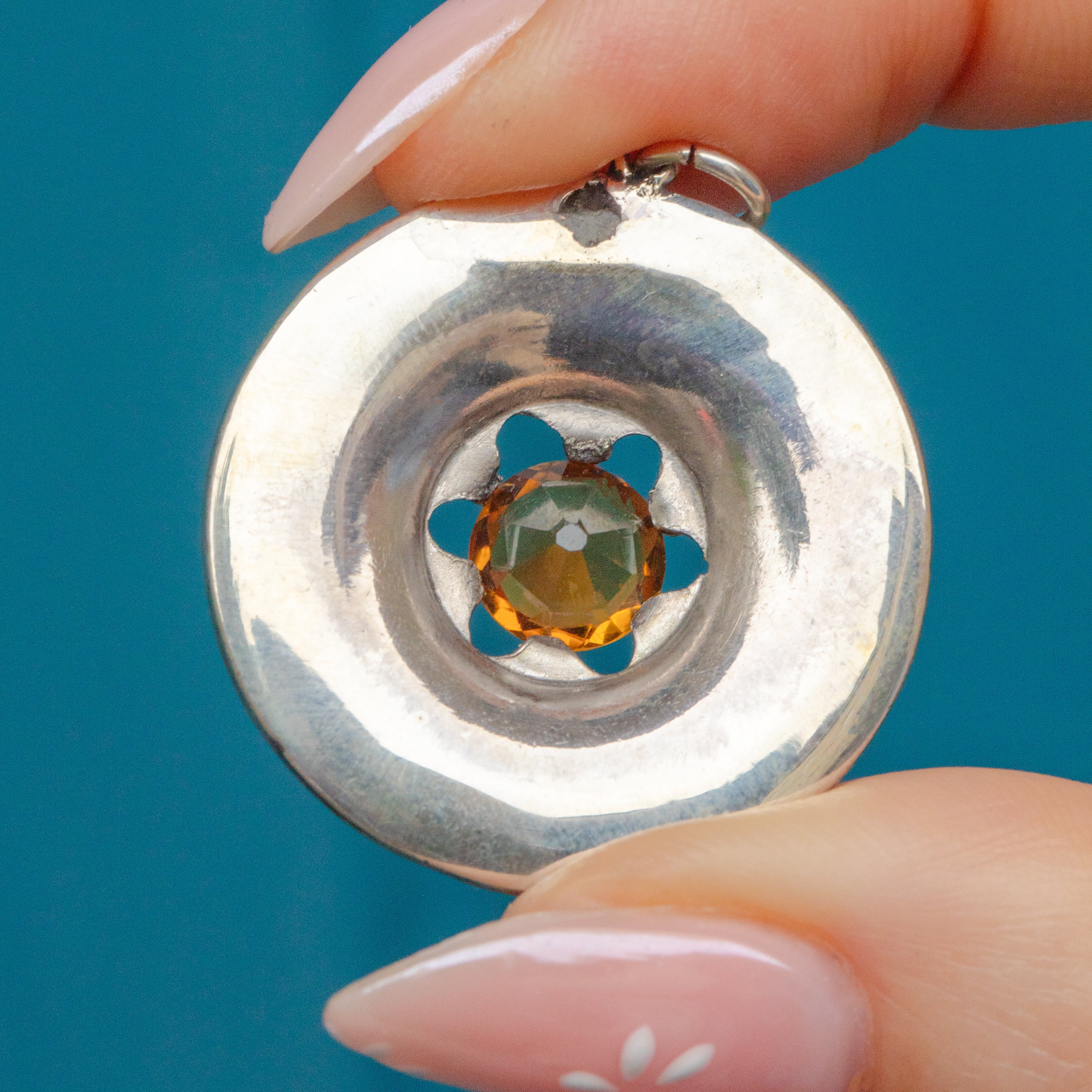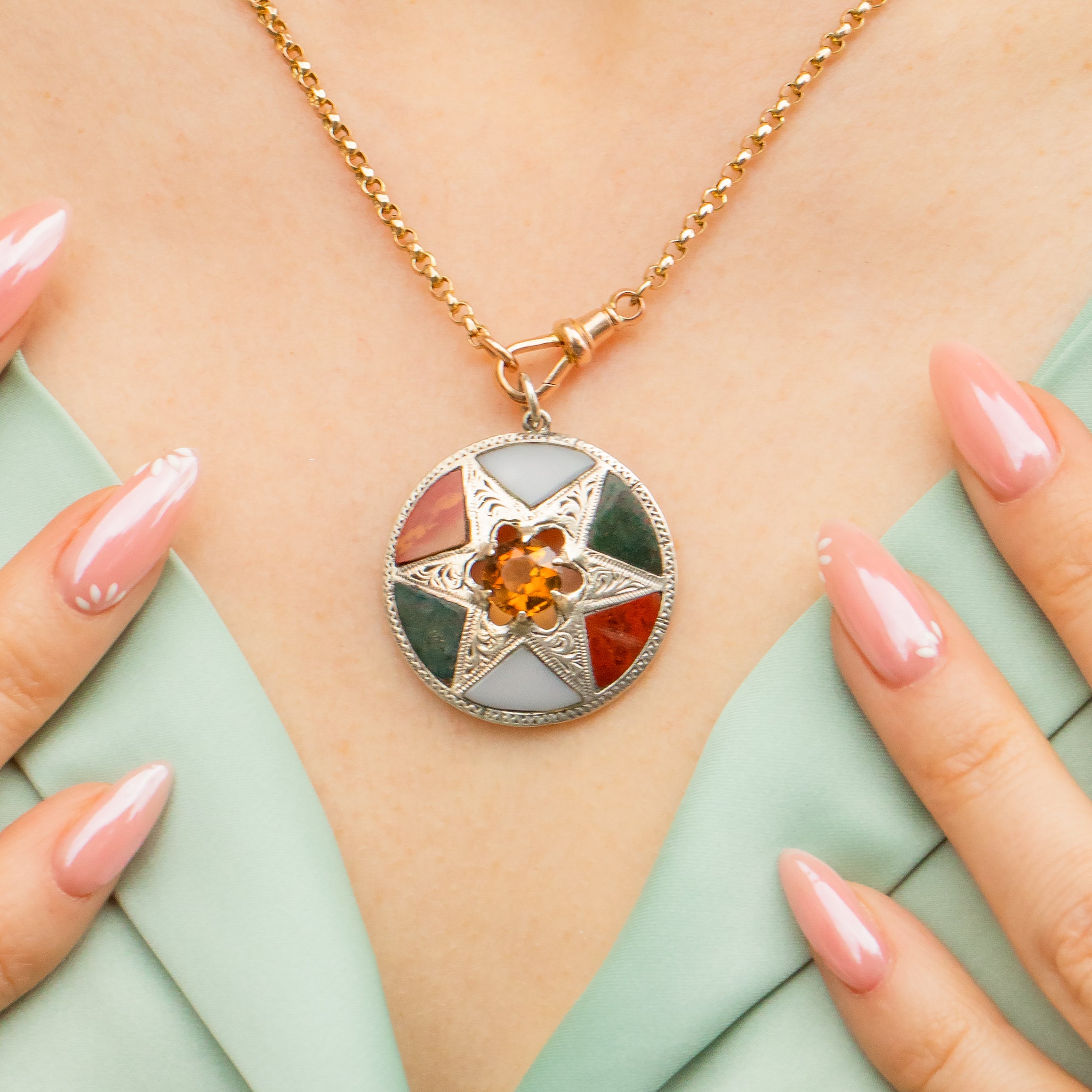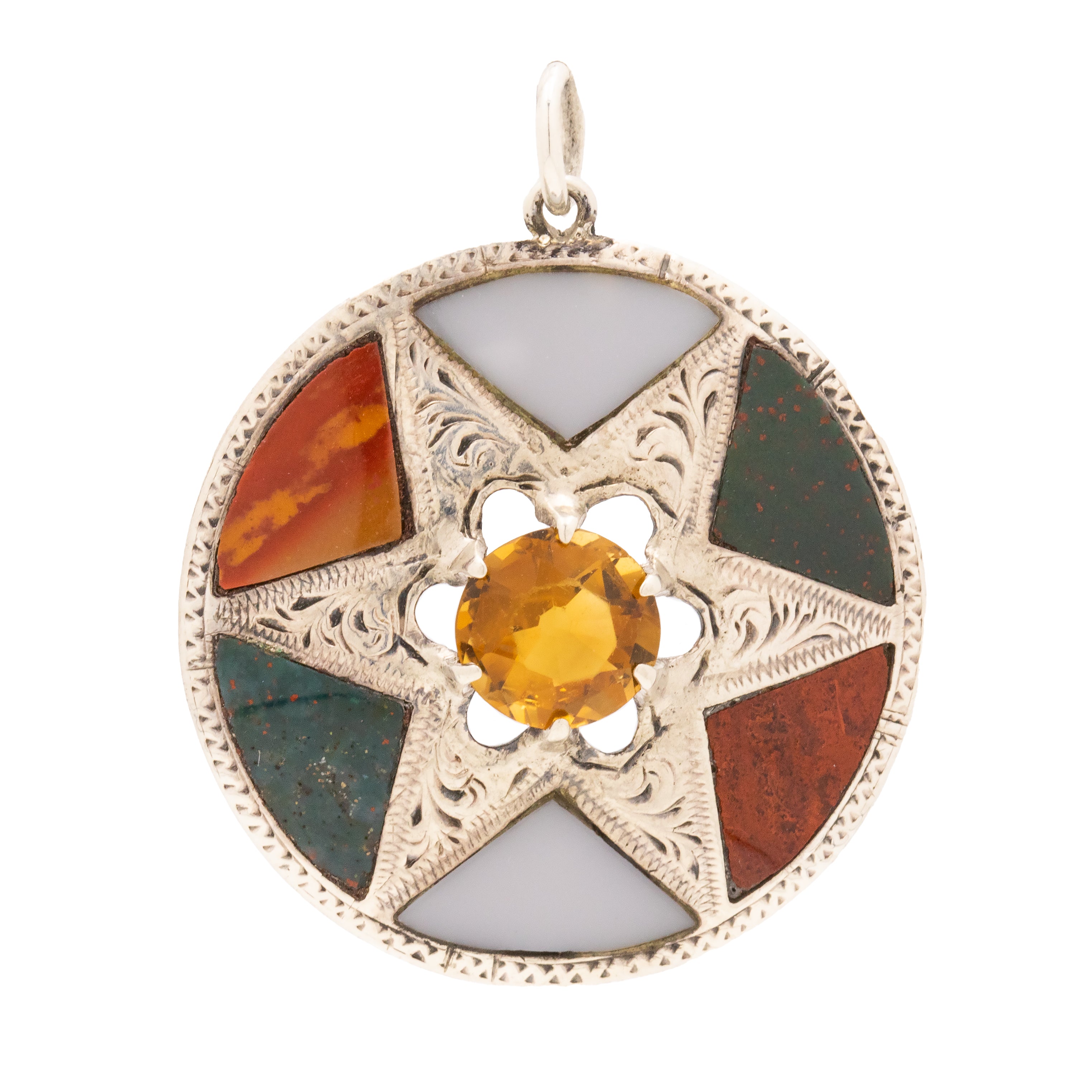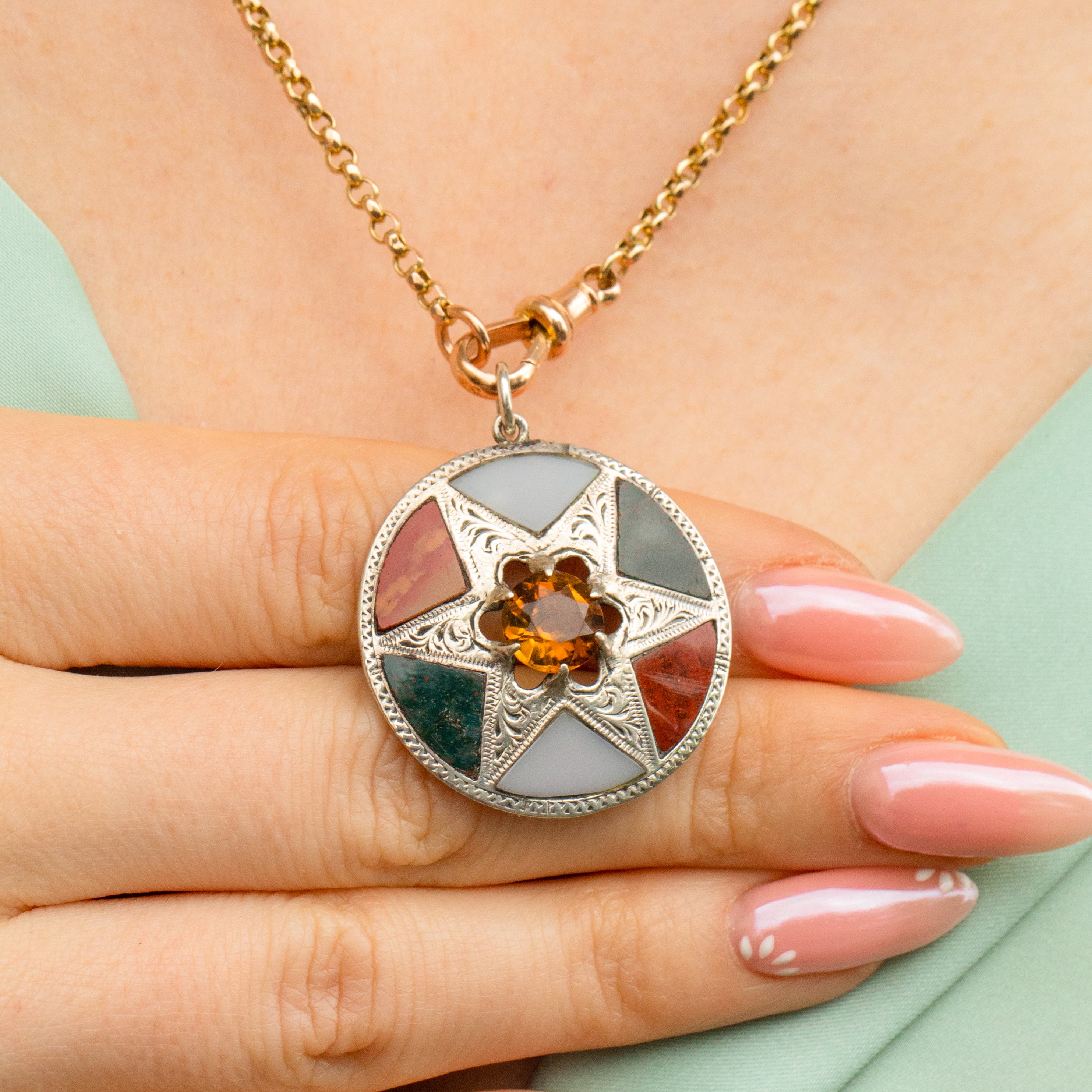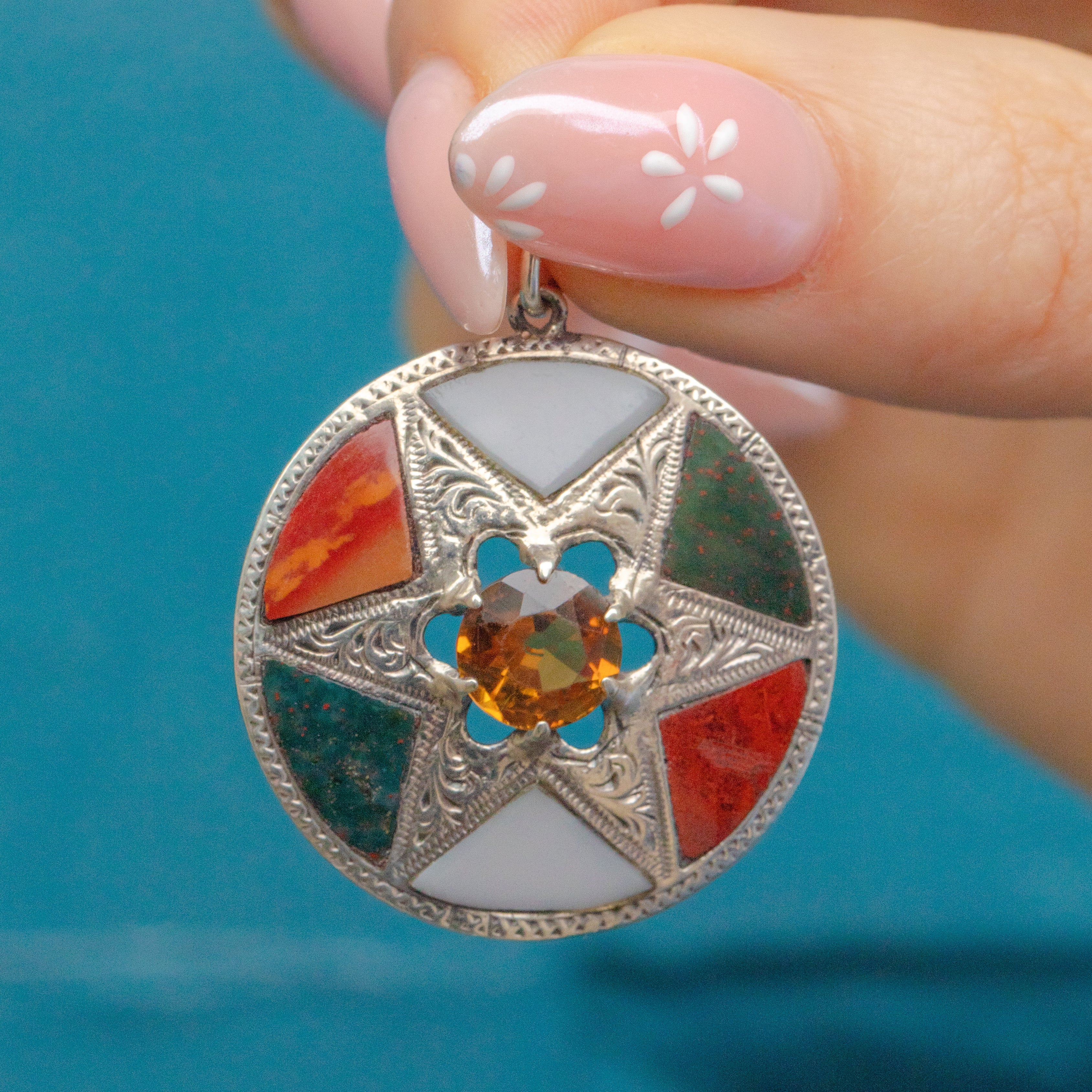Pendentif rond victorien écossais en agate et citrine, 1.00ct