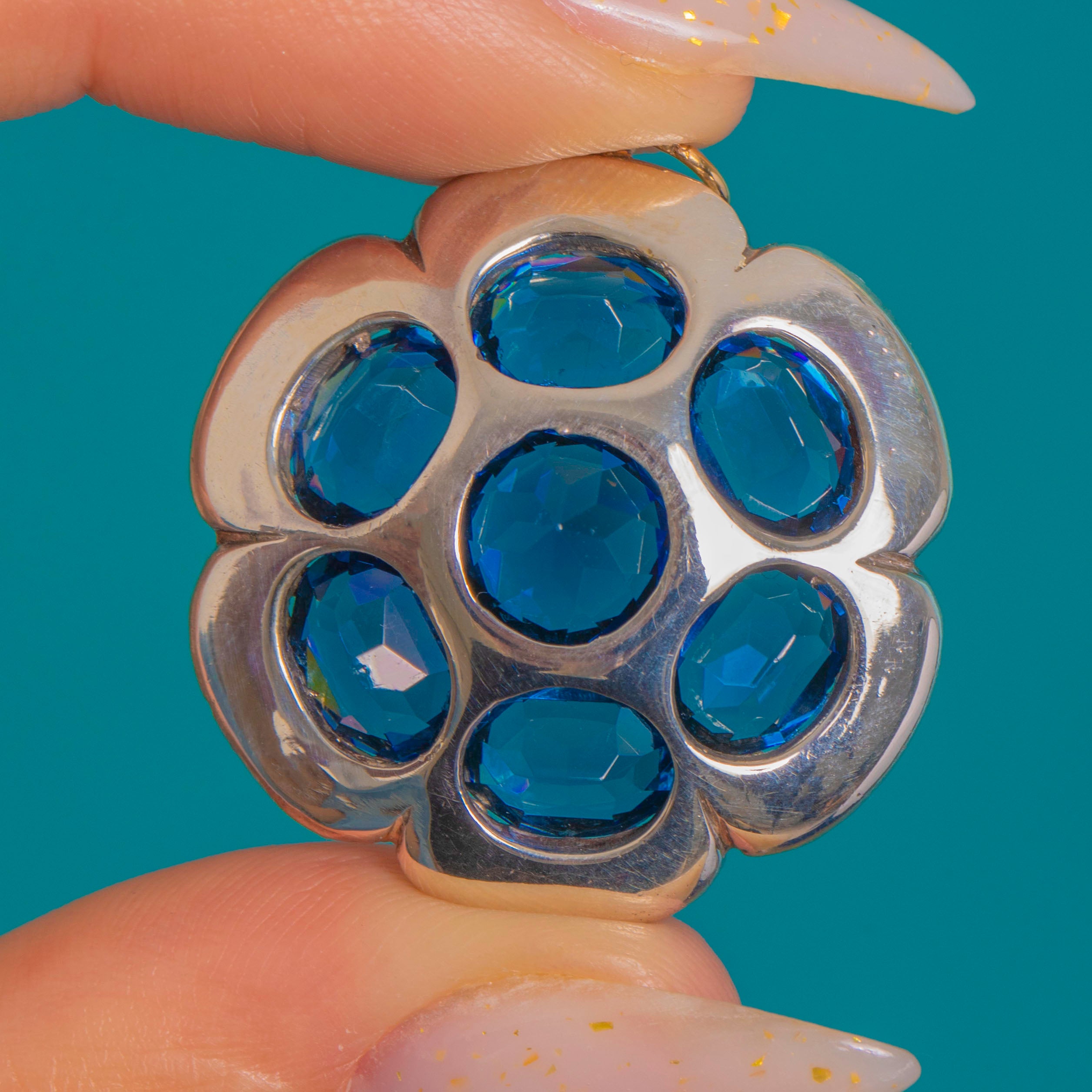 Victorian Silver & 9ct Gold Blue and White Paste Flower Pendant