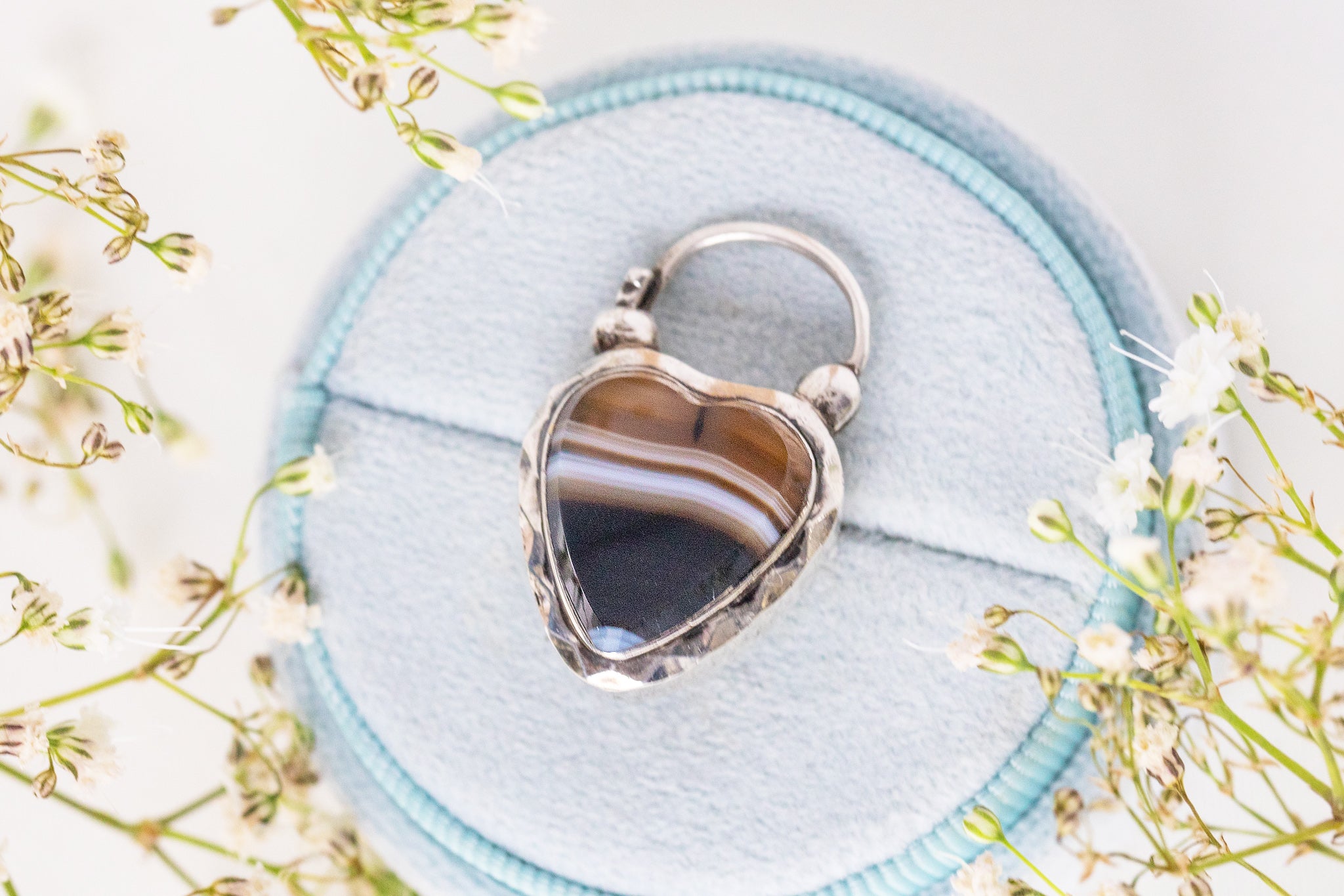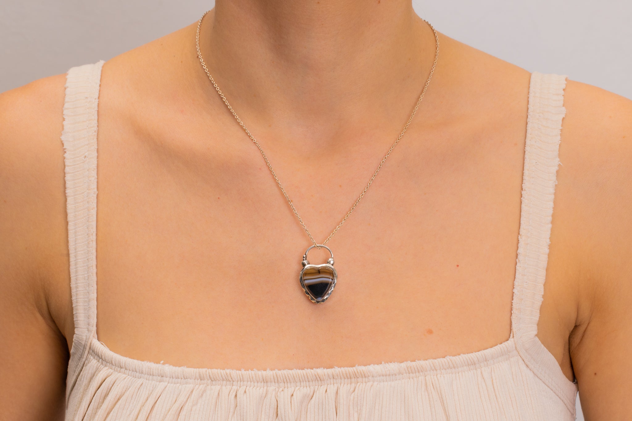 Cadenas en forme de cœur en agate argentée victorienne