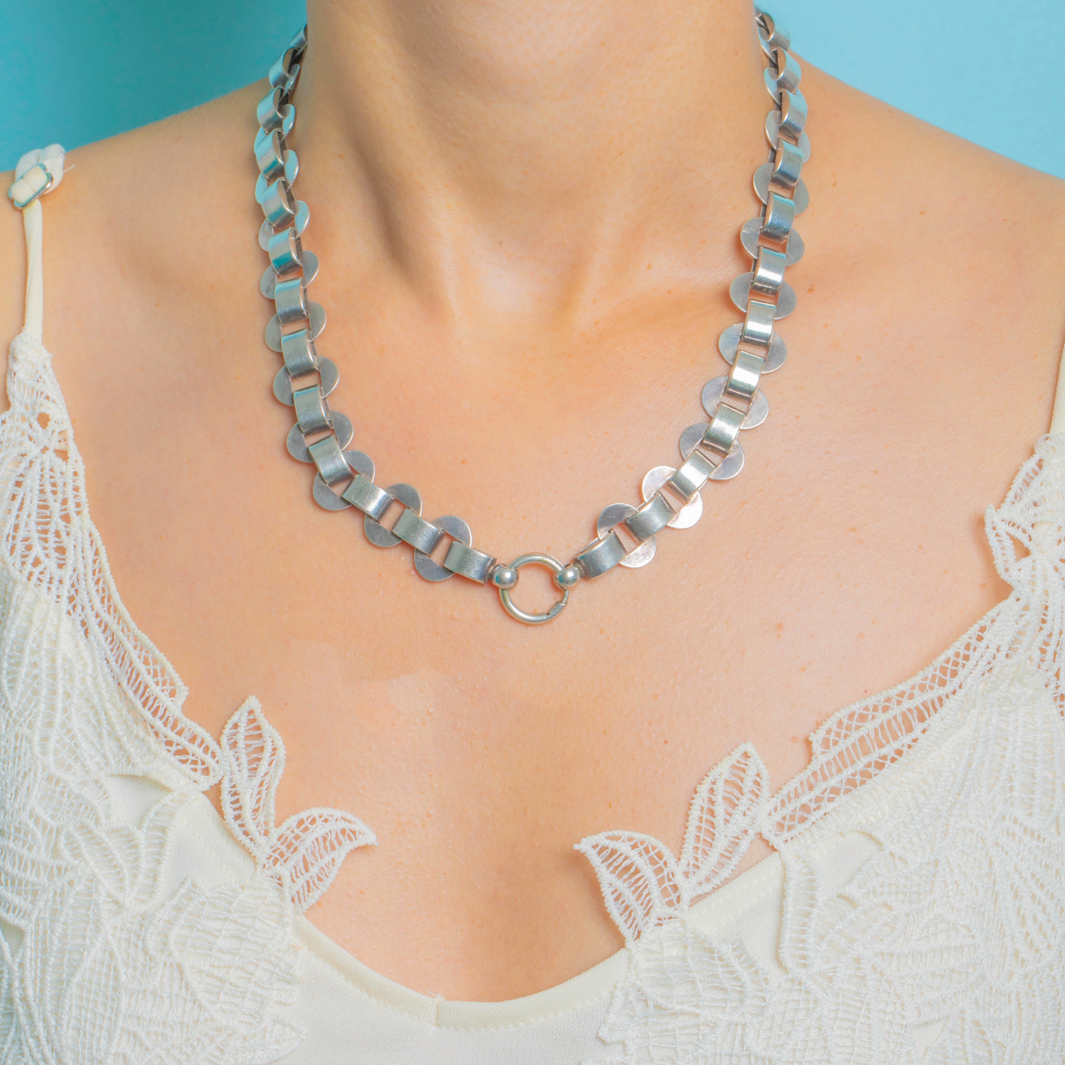EXCELLENT: The Silver is bright and well-preserved with crisp definition to the links. The clasp works perfectly, and the chain retains a beautiful antique patina with minimal wear for its age.