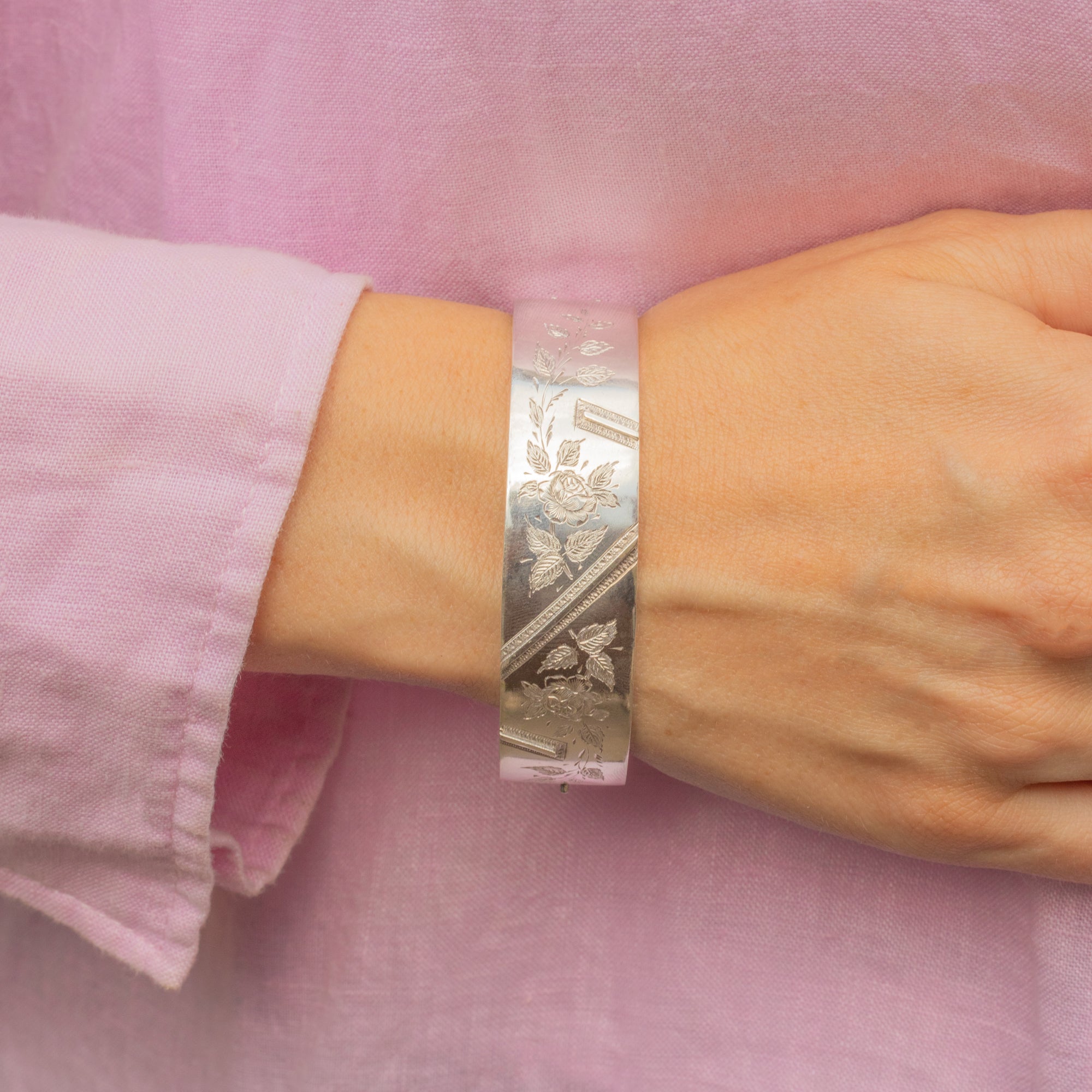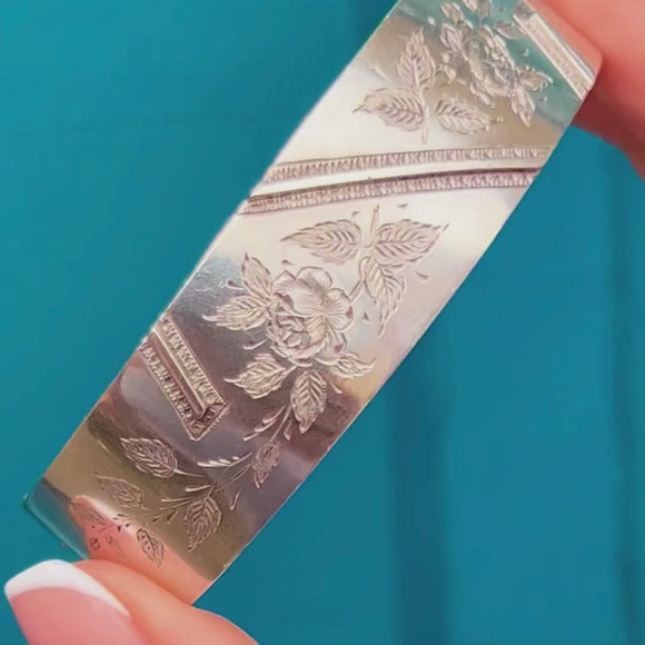 Victorian Aesthetic Silver Engraved Wild Roses Bangle