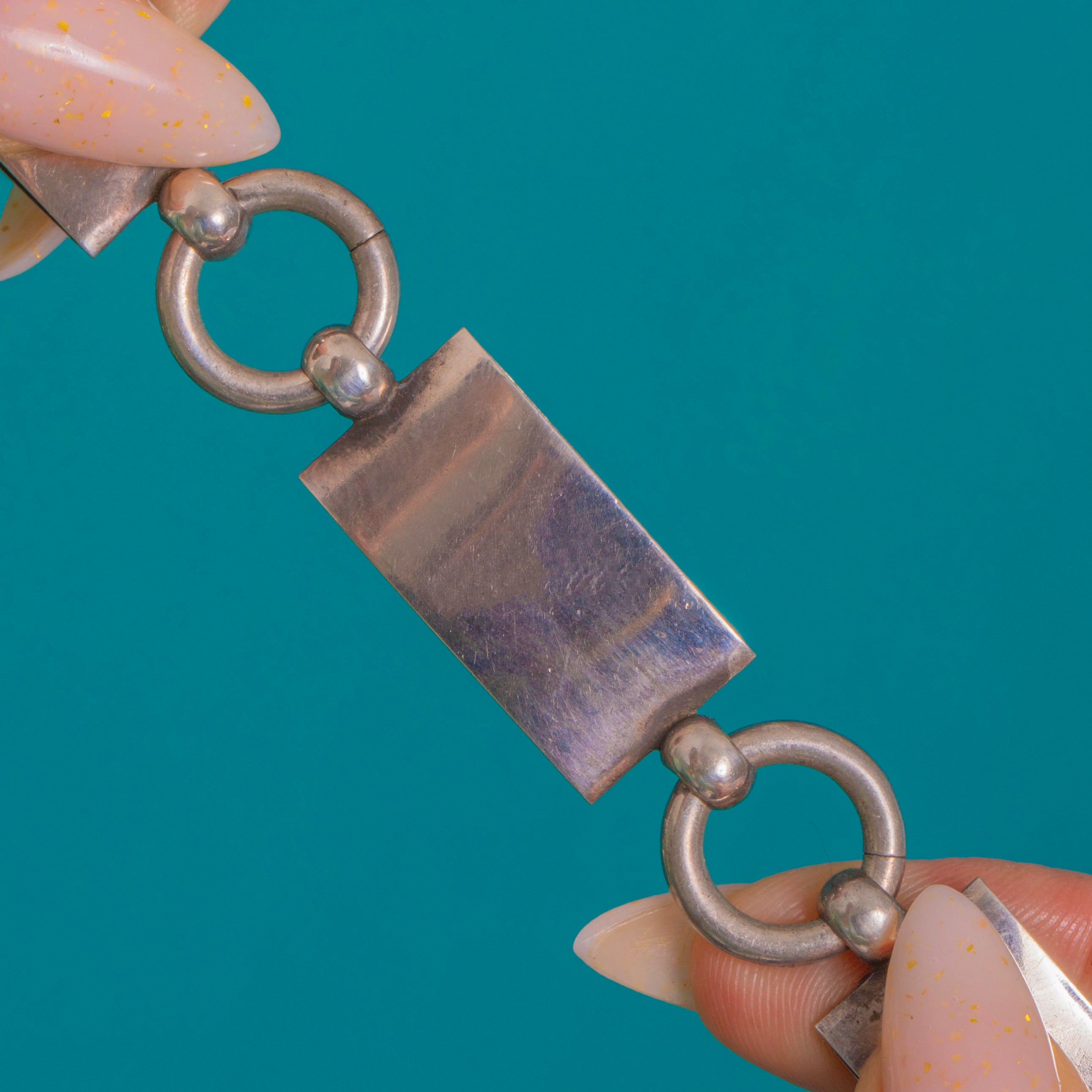 The chain has wonderful articulation and presence, its sculptural geometry enhanced by a rich, even patina. Substantial yet elegant, it wears with confident Victorian flair and a satisfyingly weighty feel at 51g.