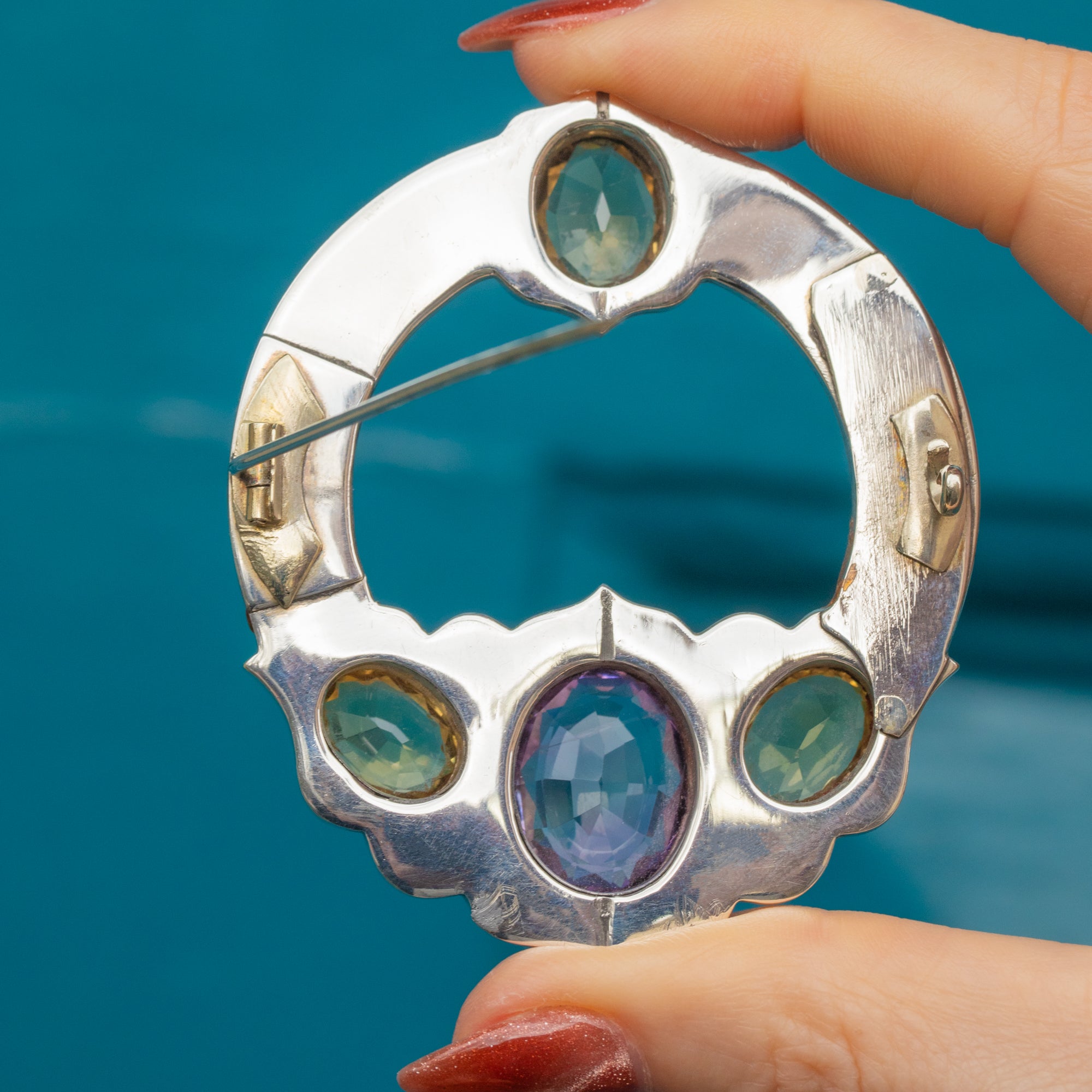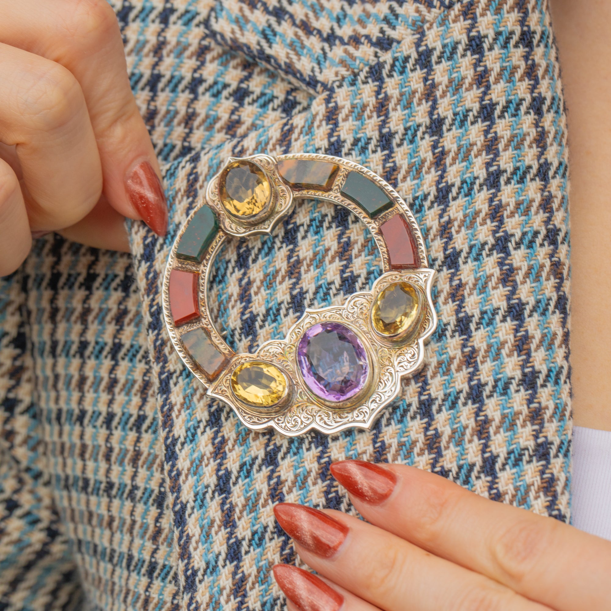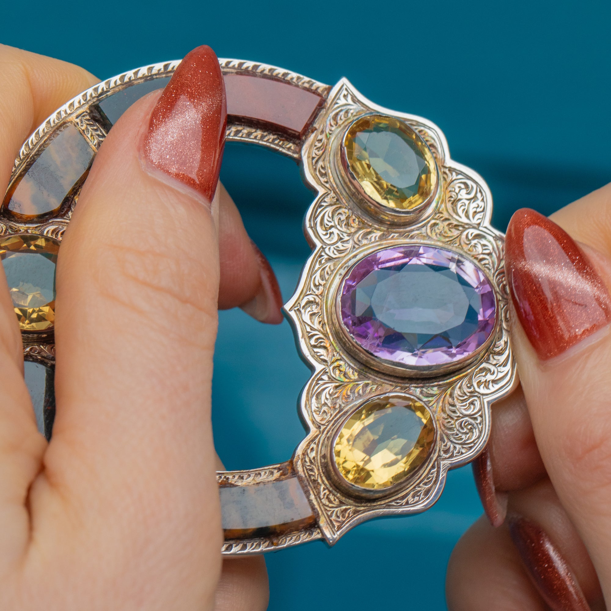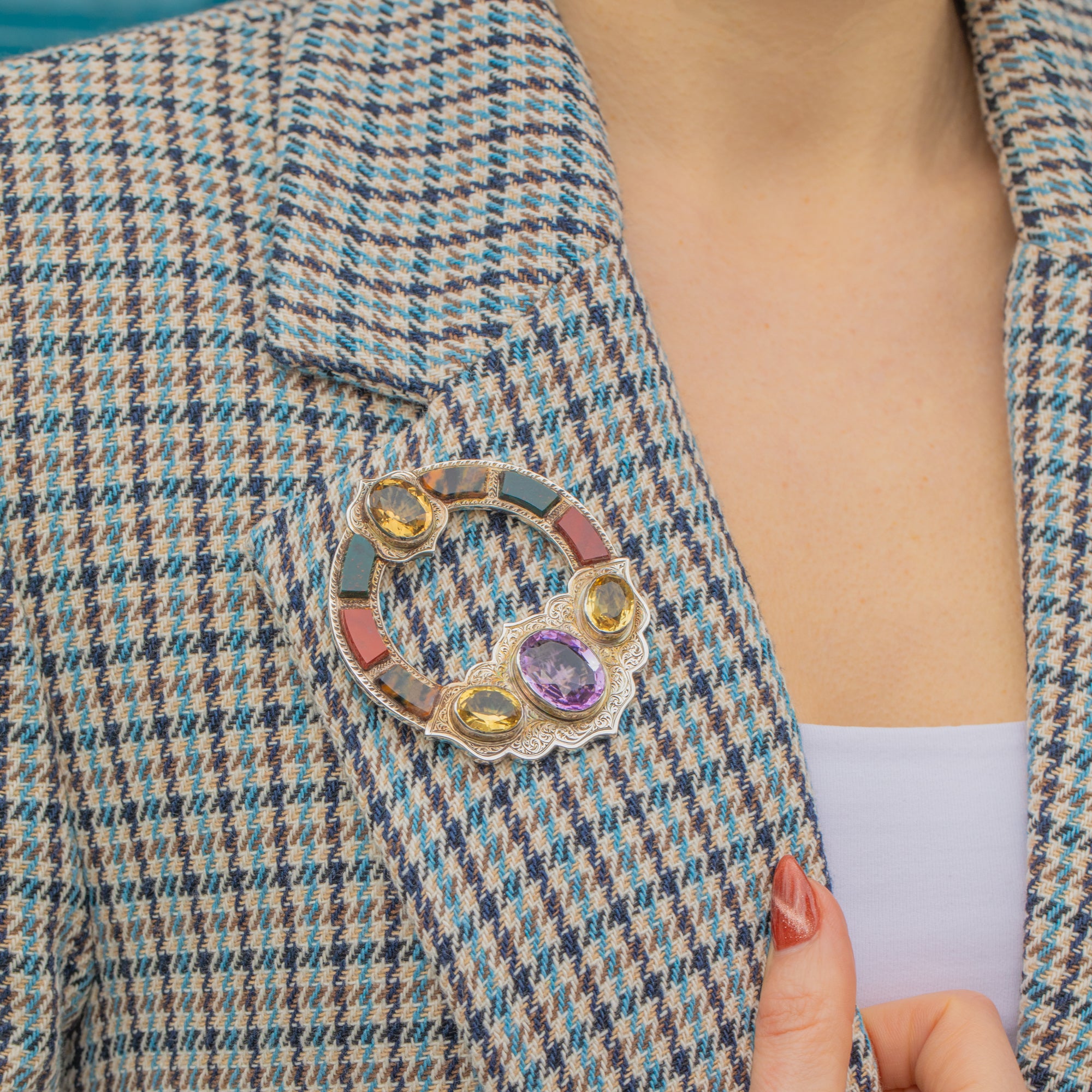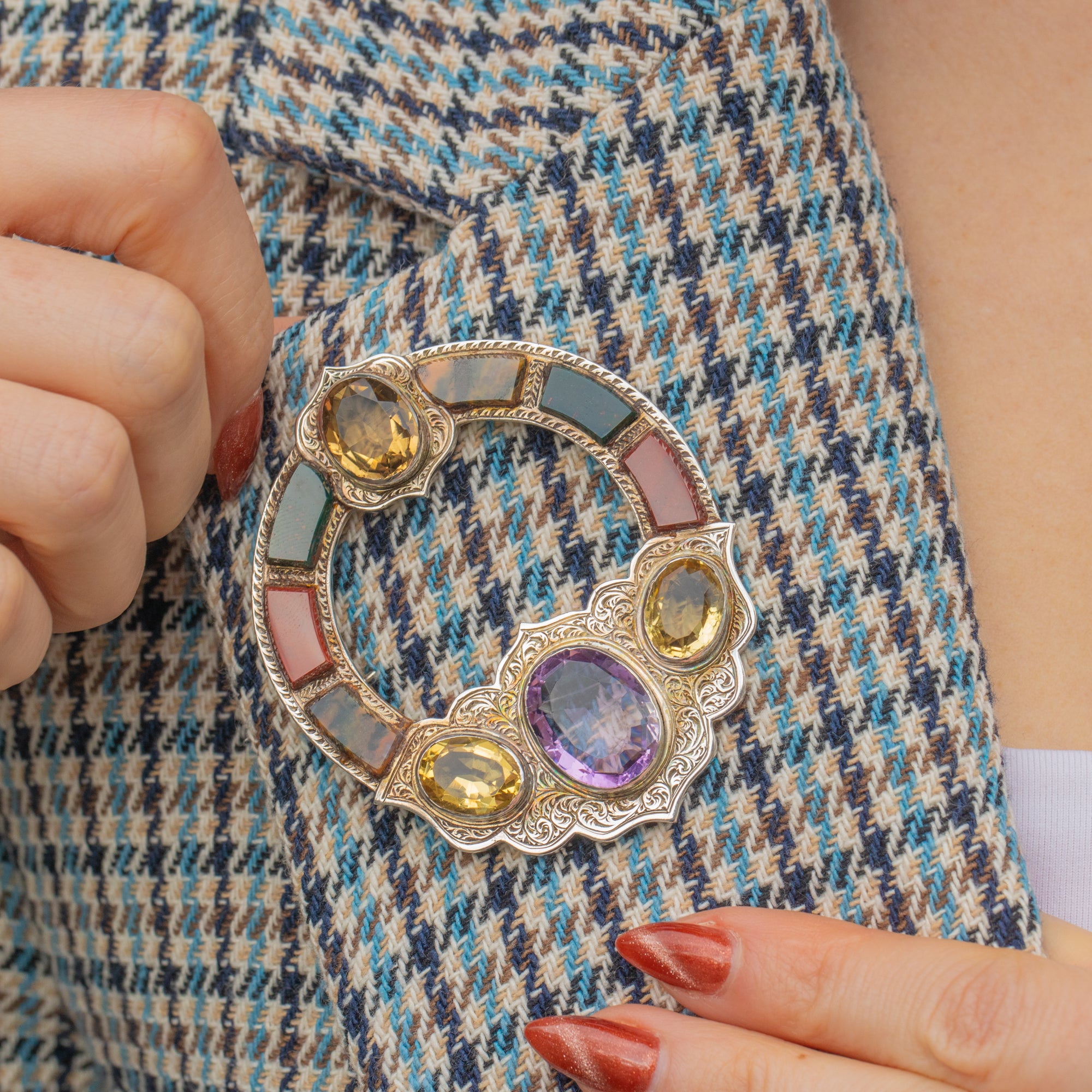 Victorian Silver Scottish Agate Brooch with Amethyst & Citrine