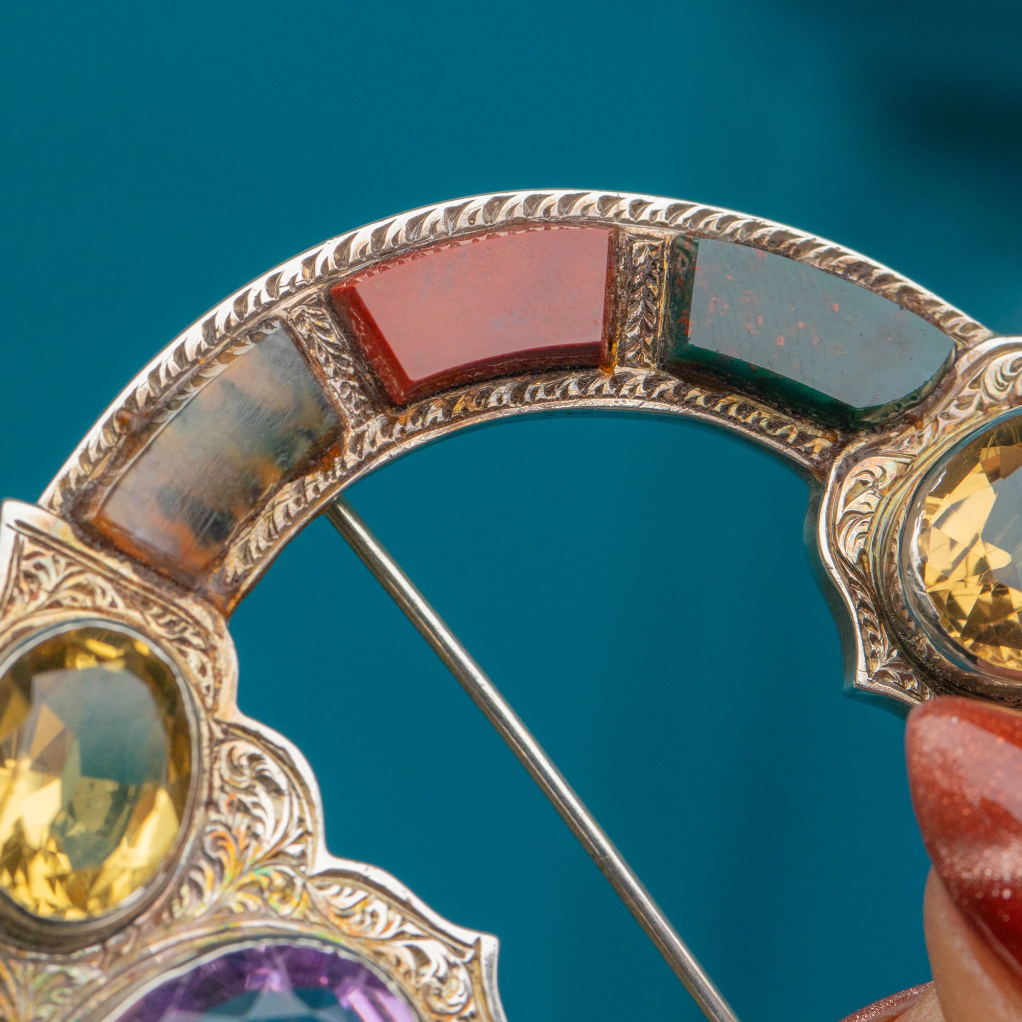 VERY GOOD-EXCELLENT: This Victorian Silver Scottish Agate brooch is in wonderful condition. She is crafted meticulously, with each gemstone securely set. The Amethyst and Citrine stones have some fleabites commensurate with age, however this is difficult to see without a jeweller's loupe. With her pin in perfect working order, you can wear her with the utmost confidence!