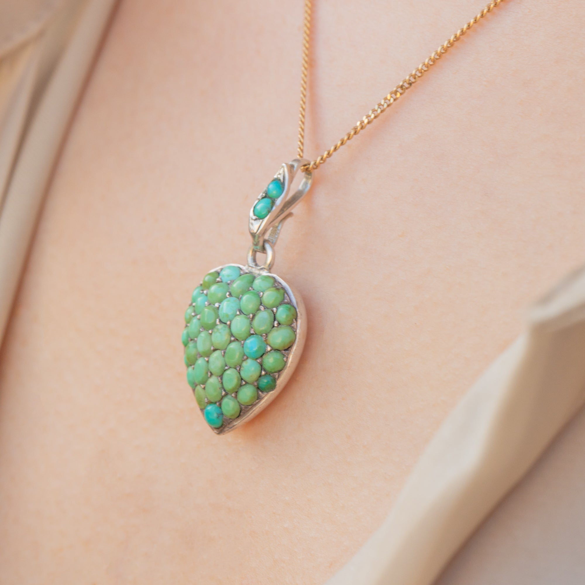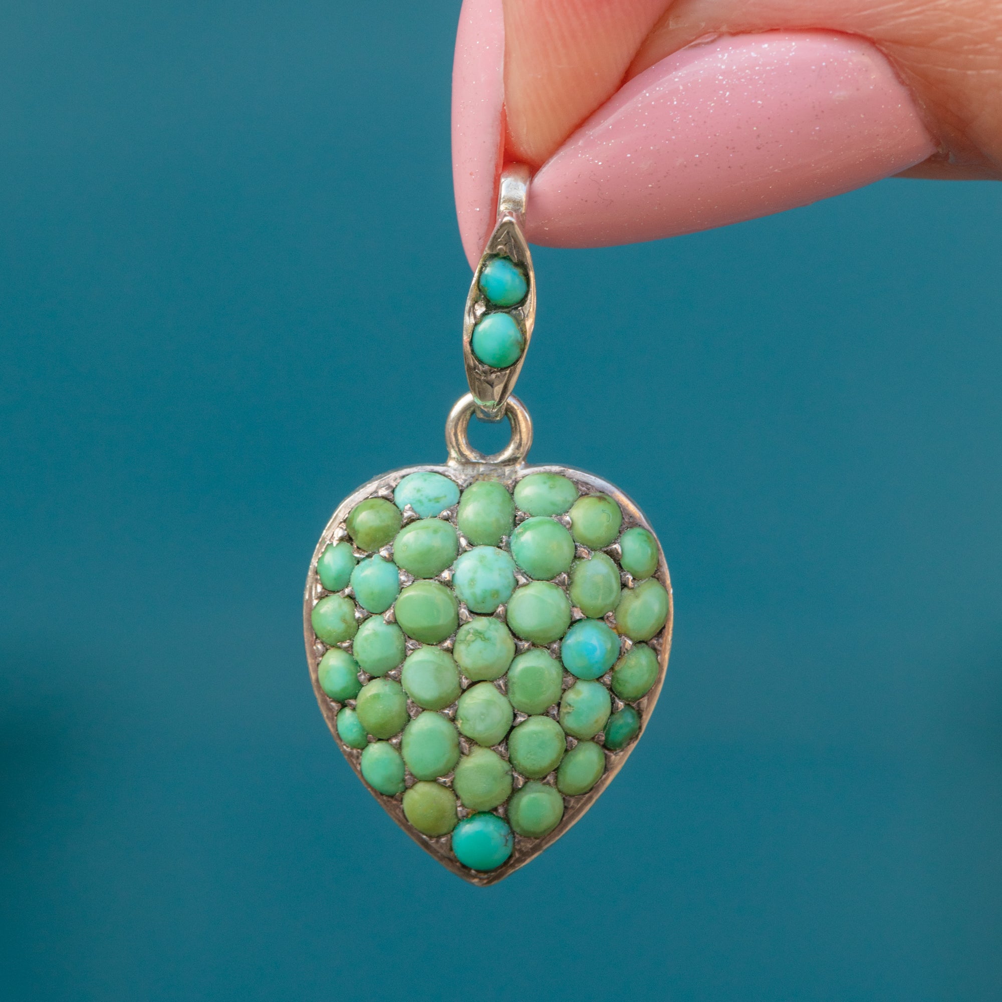 An adorable Victorian Silver Turquoise pavé heart pendant for your repertoire!