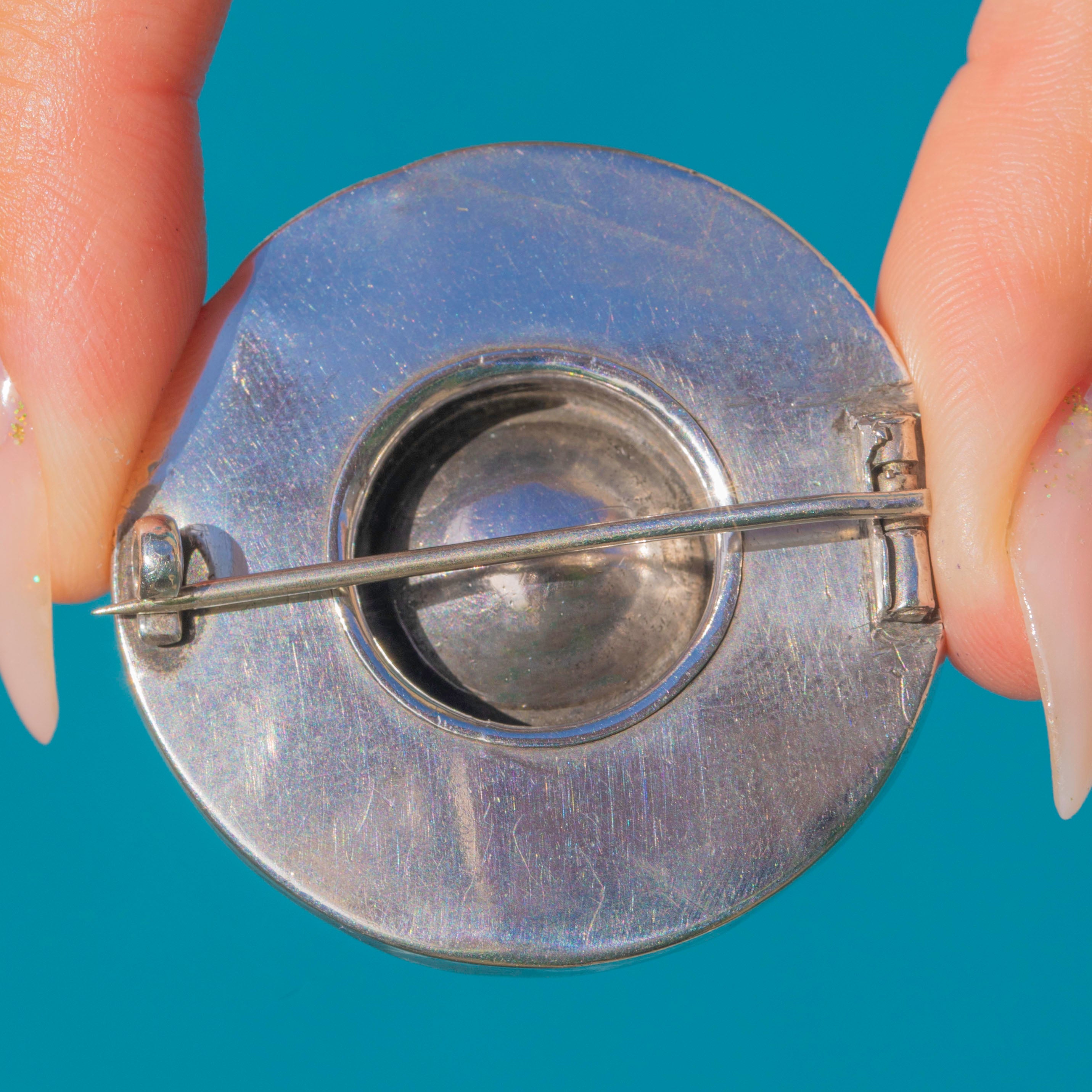 MEASUREMENTS: Brooch is 38mm in diameter.