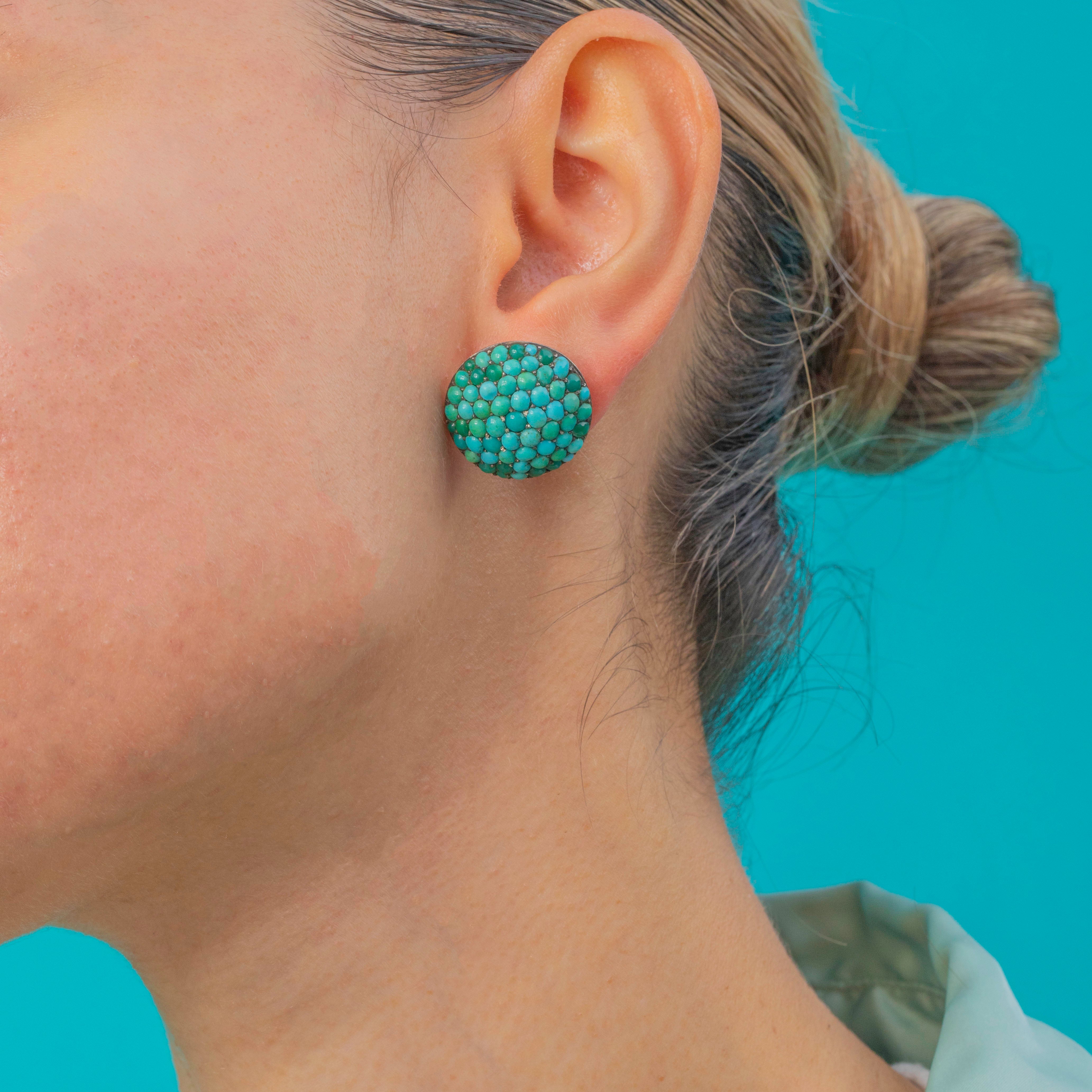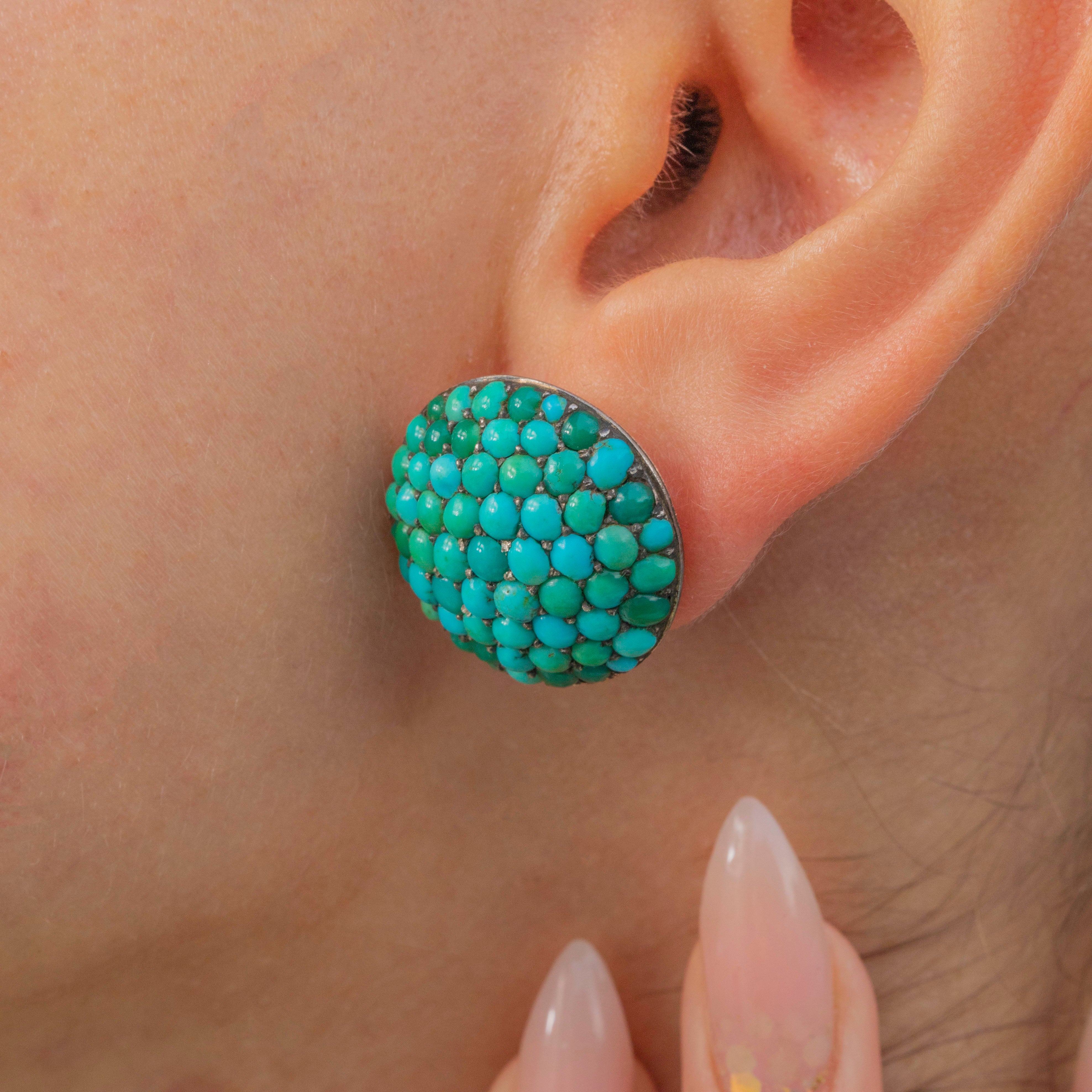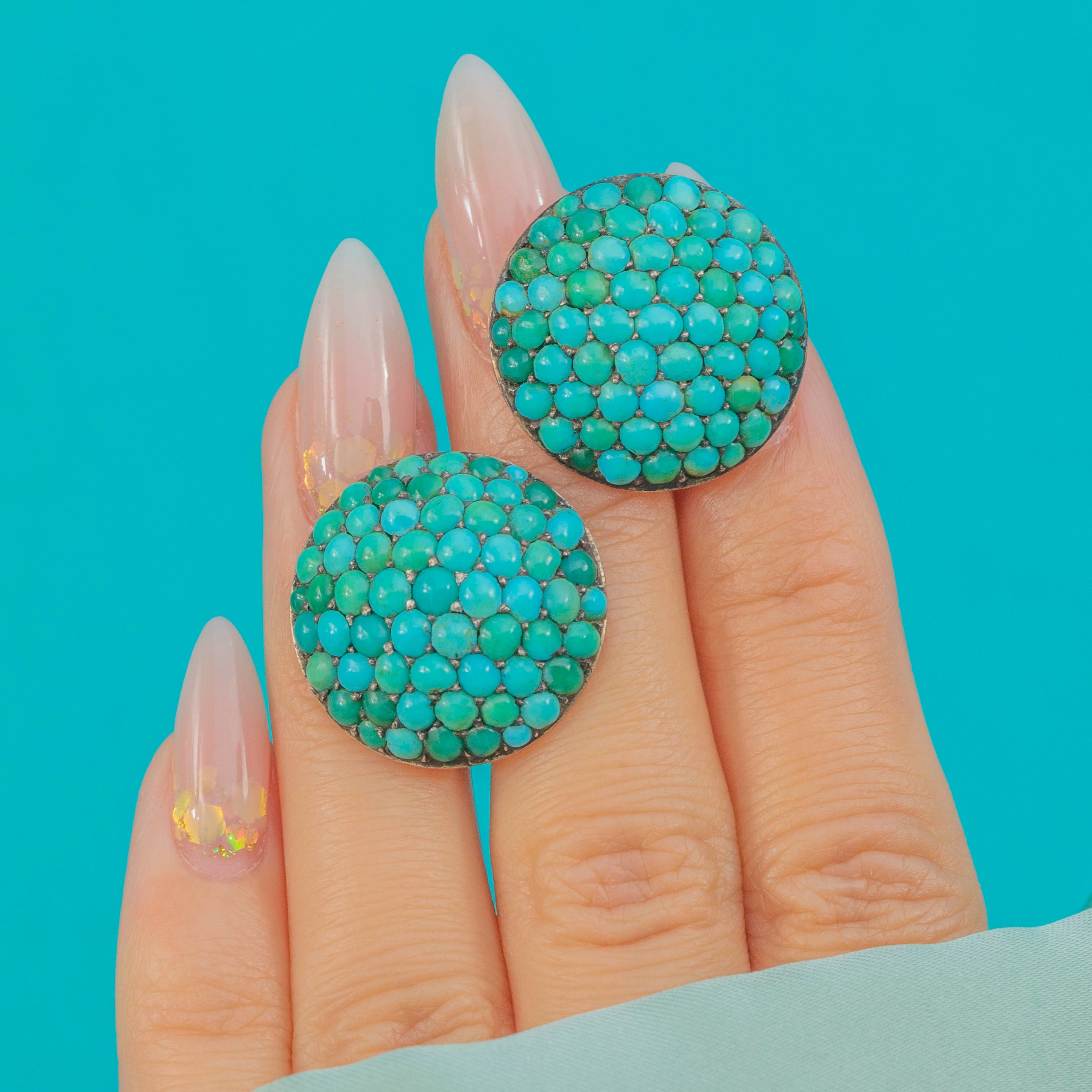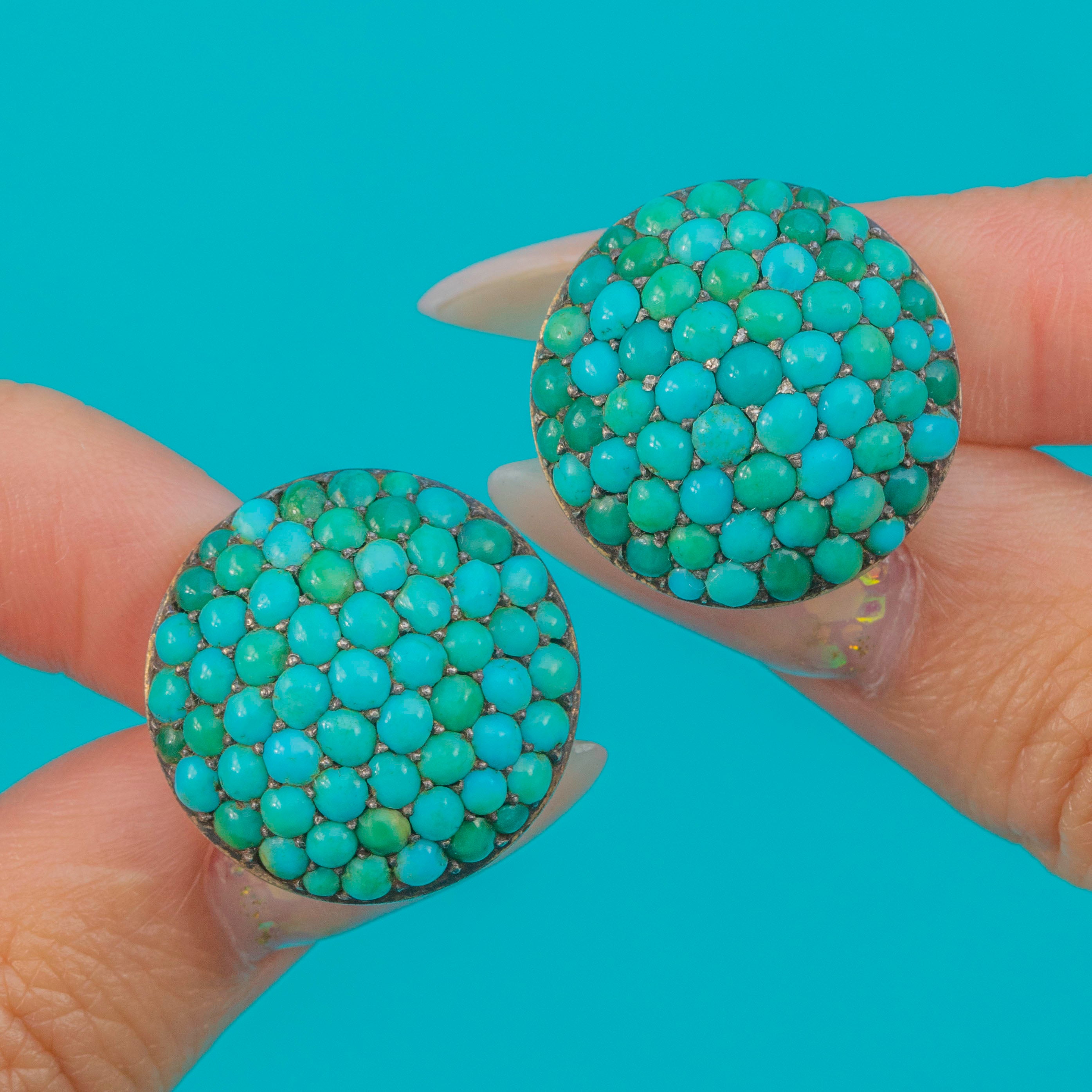 Impressive Victorian Turquoise Bombe Cluster Earrings 9ct Gold