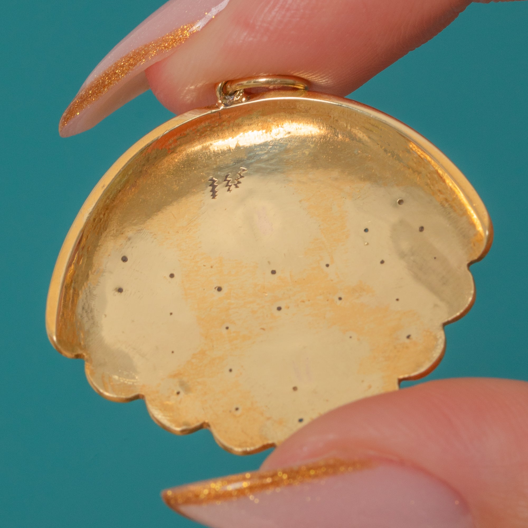 This clamshell pendant is a beautiful symbol of 19th-century elegance, femininity and artistry.
